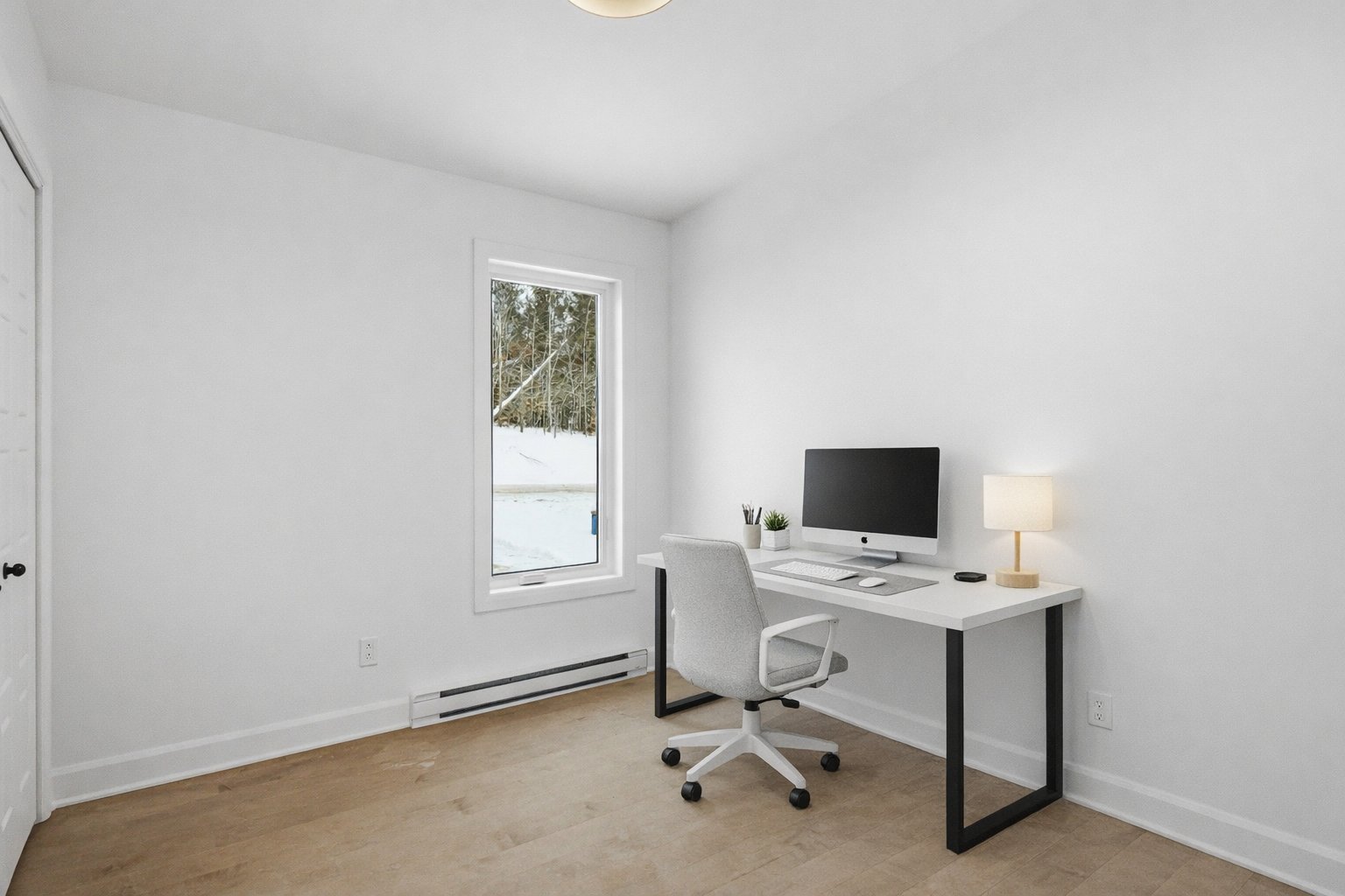 Ce terrain offre la possibilité d'y construire une maison neuve de plain-pied comprenant un salon et une cuisine à aire ouverte, une chambre à coucher avec walk-in et une salle de bains complète. La cuisine se distingue par ses armoires fermées jusqu'au plafond, son îlot, ses comptoirs de quartz et un garde-manger. La salle de bains propose un bain autoportant et une douche , pour un confort moderne au quotidien.