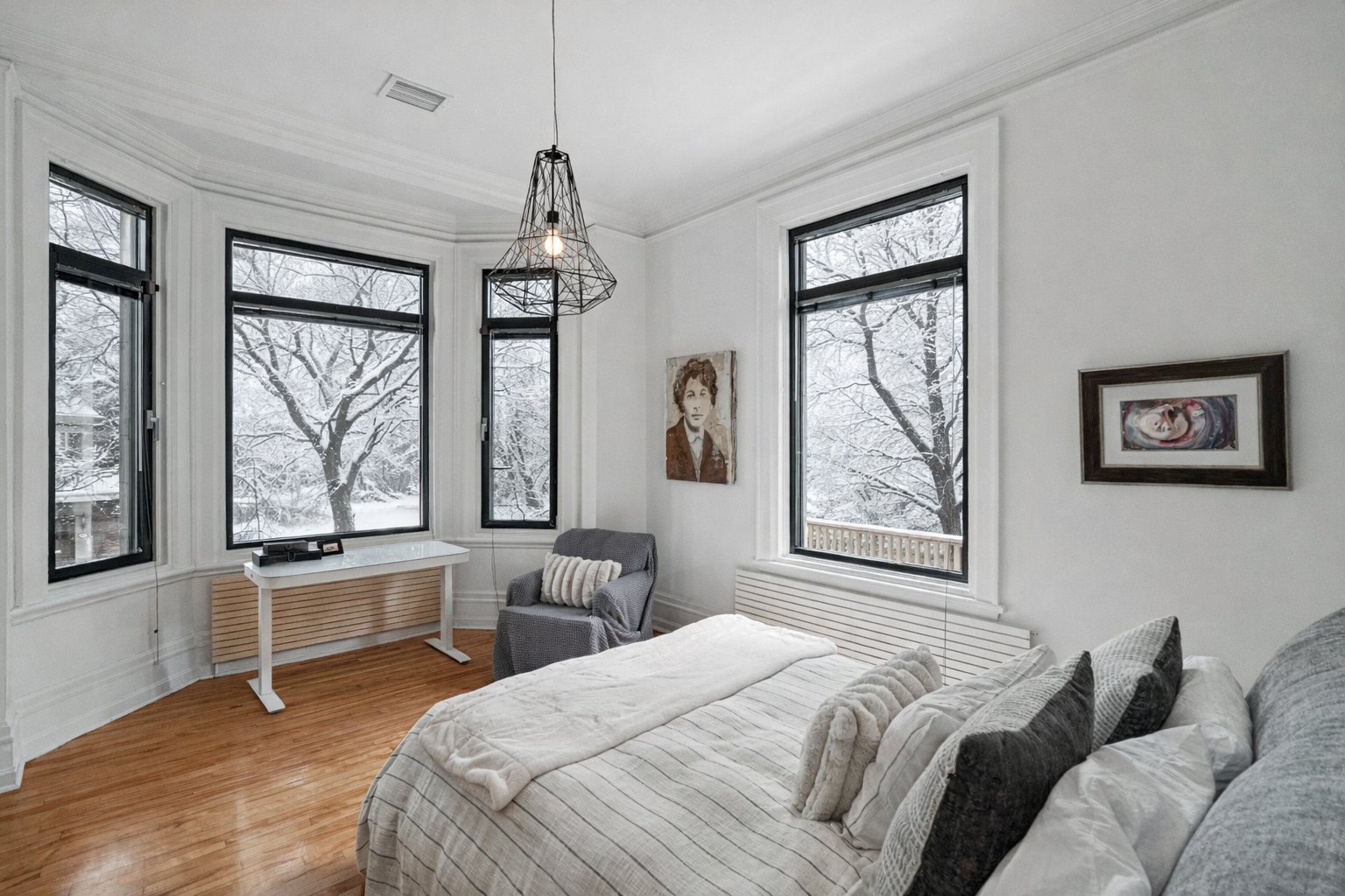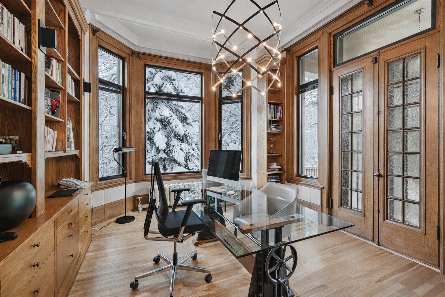 + Lumineux bureau avec étagères de bois encastrées, magnifique fenestration & accès à la galerie avant donnant sur le Parc Outremont