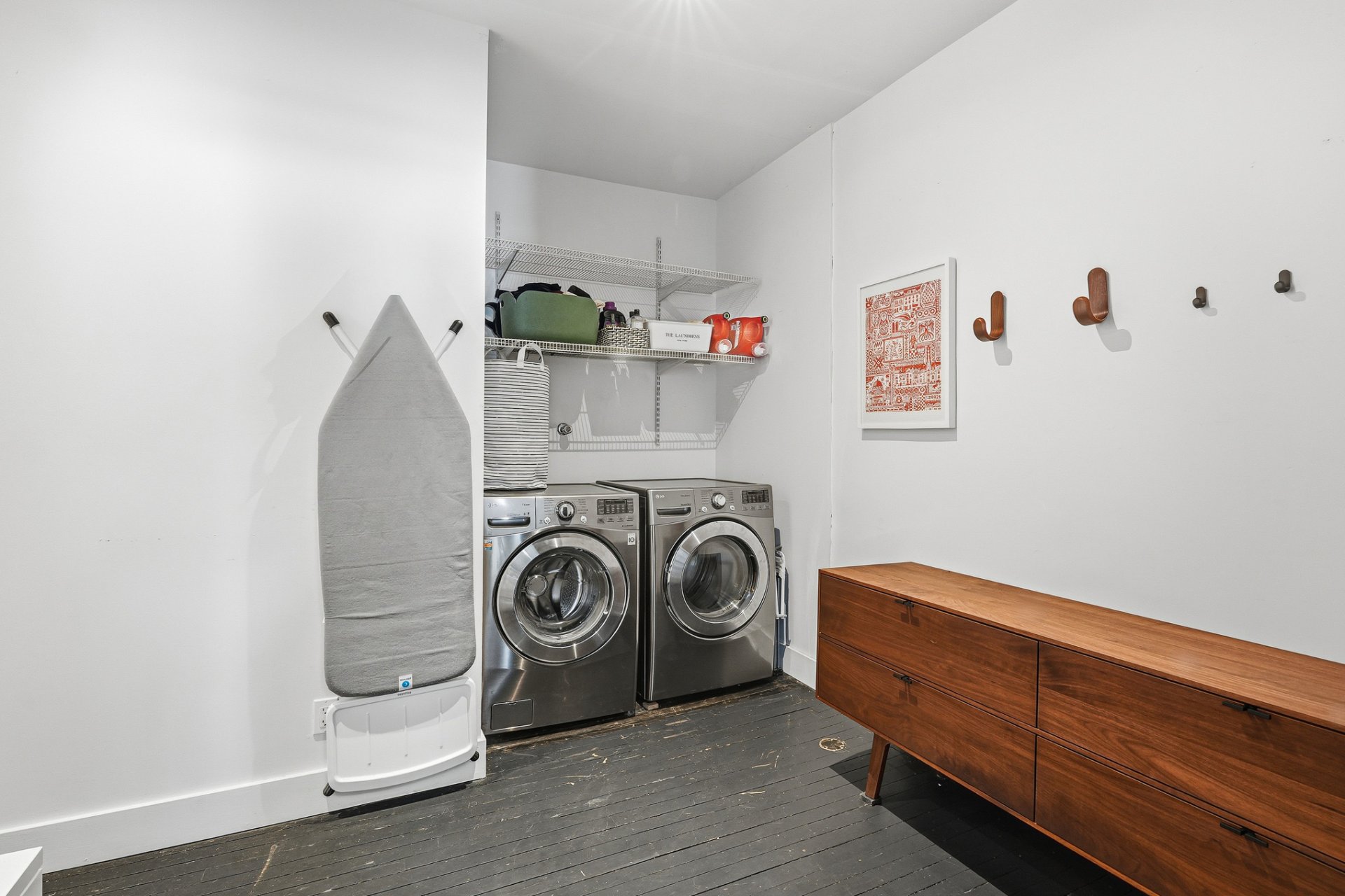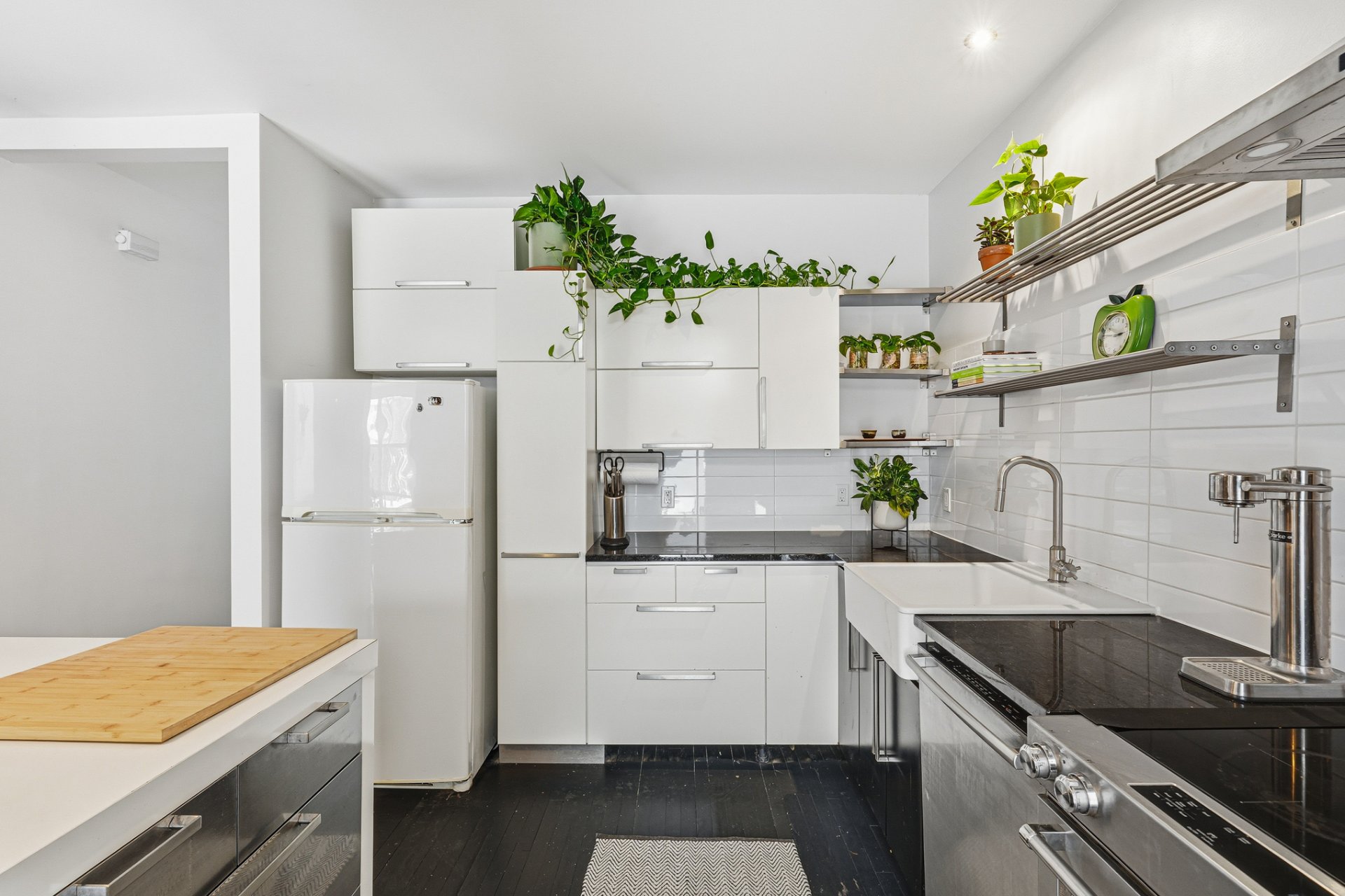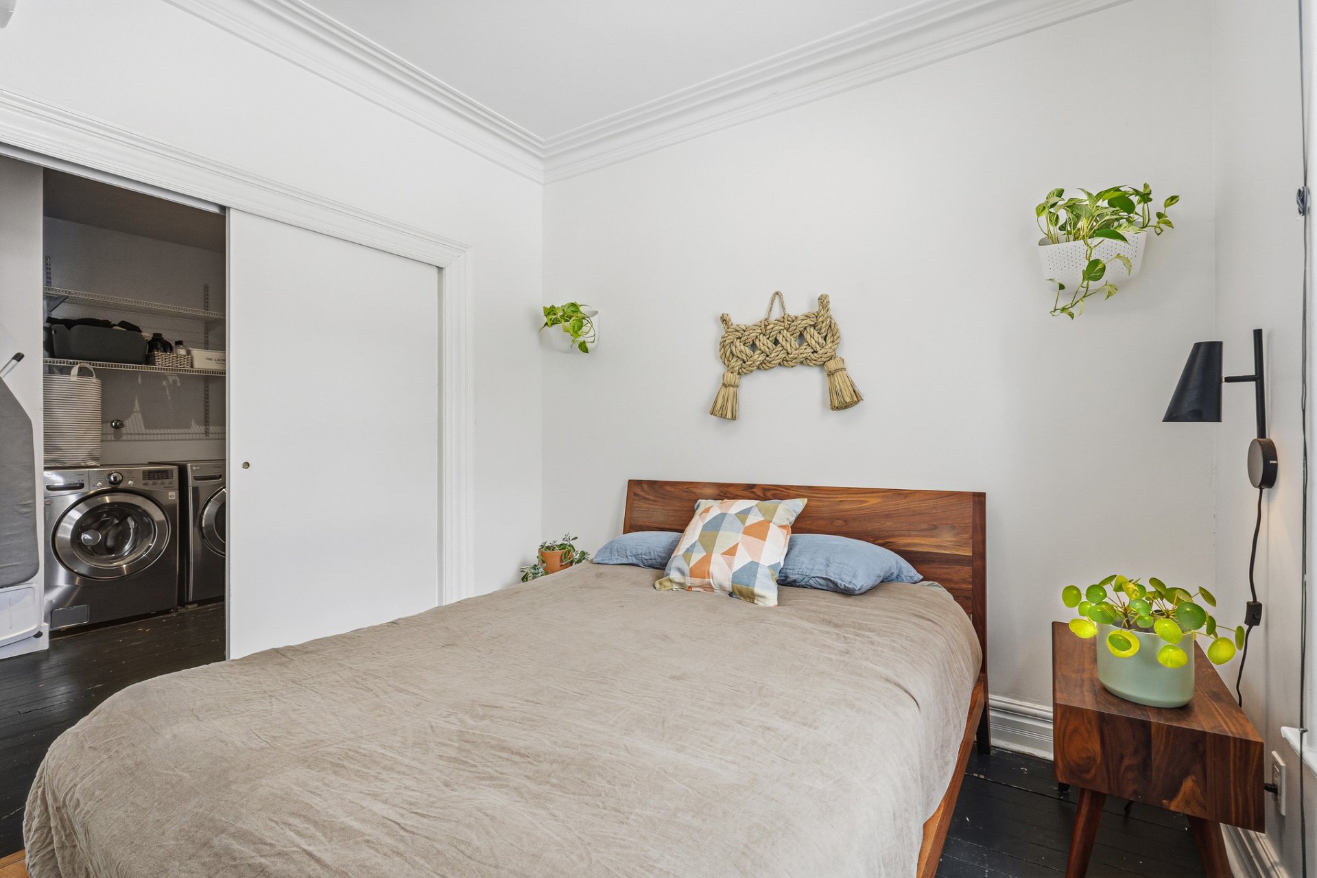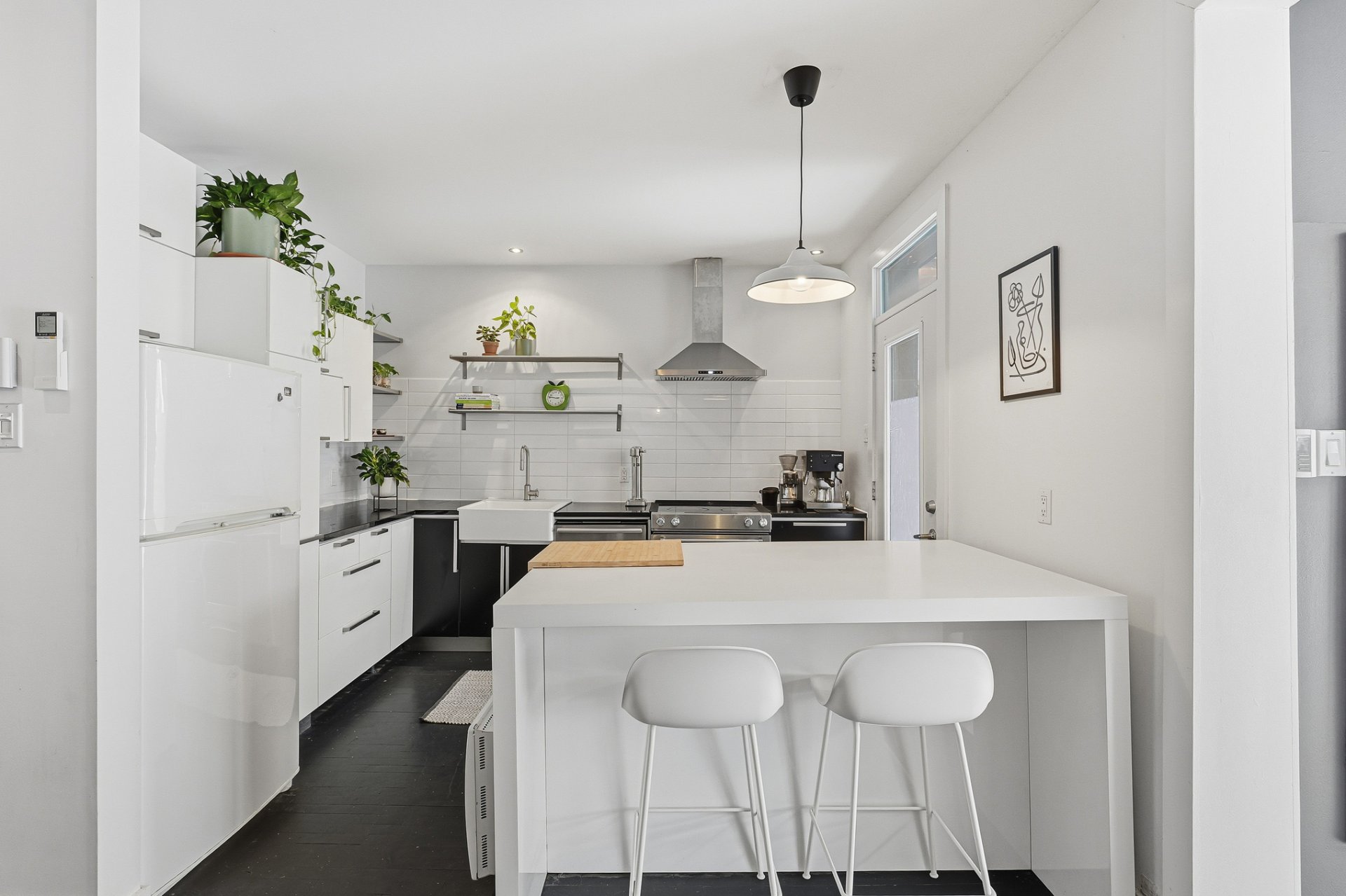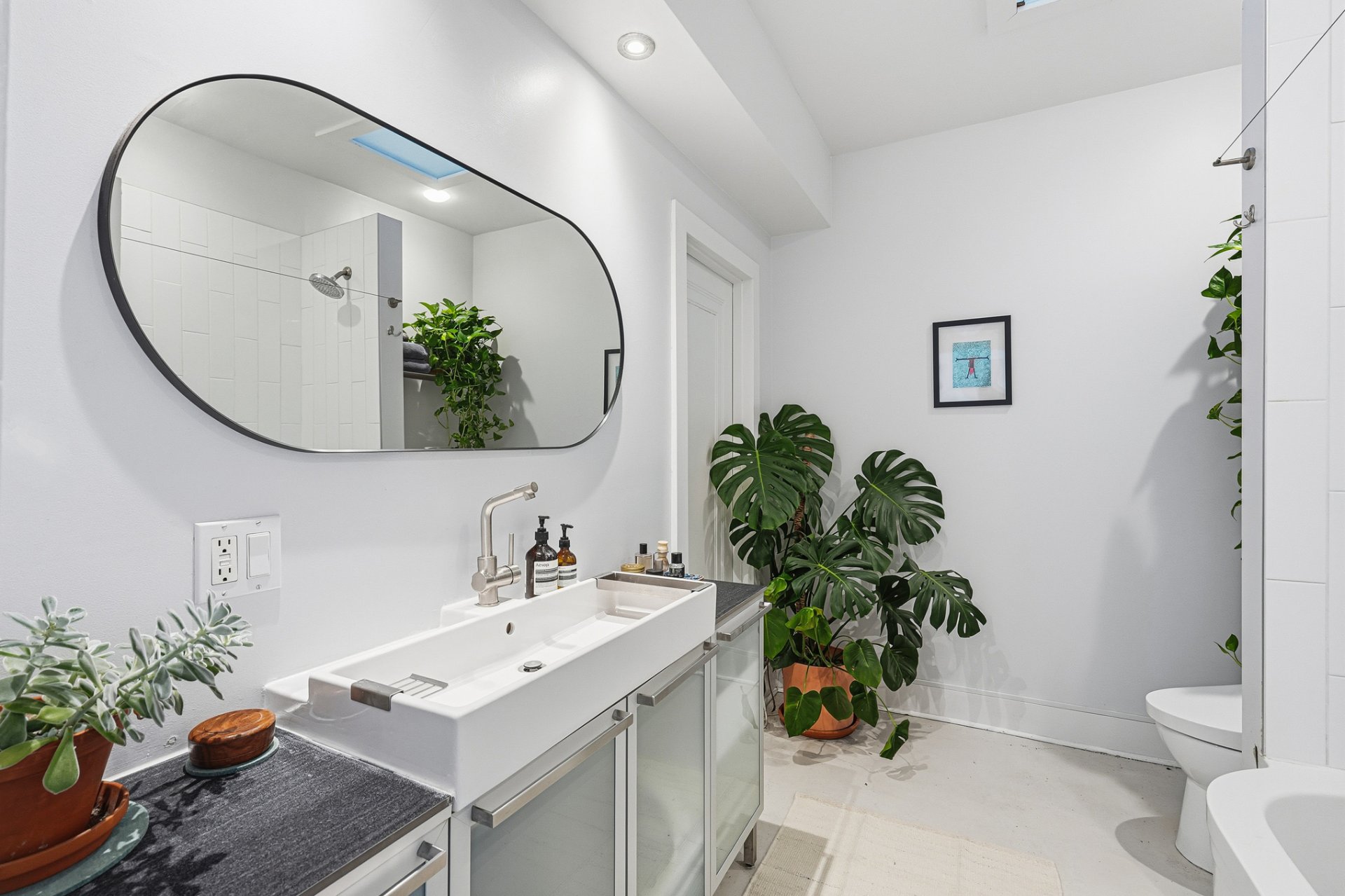 Avec ses 1 014 pi² bien optimisés elle offre deux chambres, dont une pièce double, ainsi qu'un bel espace de vie à l'arrière très lumineux grâce à son mur fenestré. Cuisine lumineuse avec îlot central ouverte sur la salle à manger avec accès direct à la cour. La salle de bain attenante à la deuxième chambre bénéficie d'un puits de lumière. Les plafonds varient de 8,8" à 9 pieds et un grand rangement se trouve sous l'extension arrière.