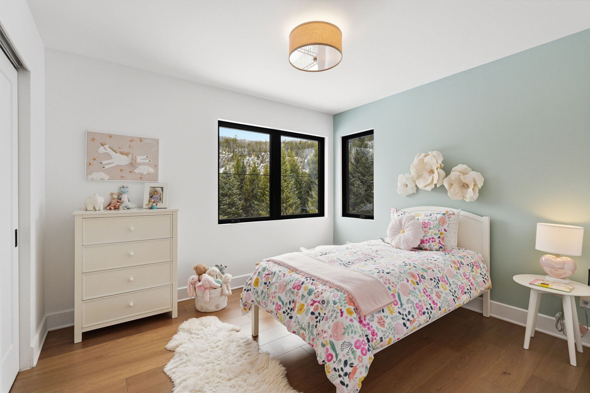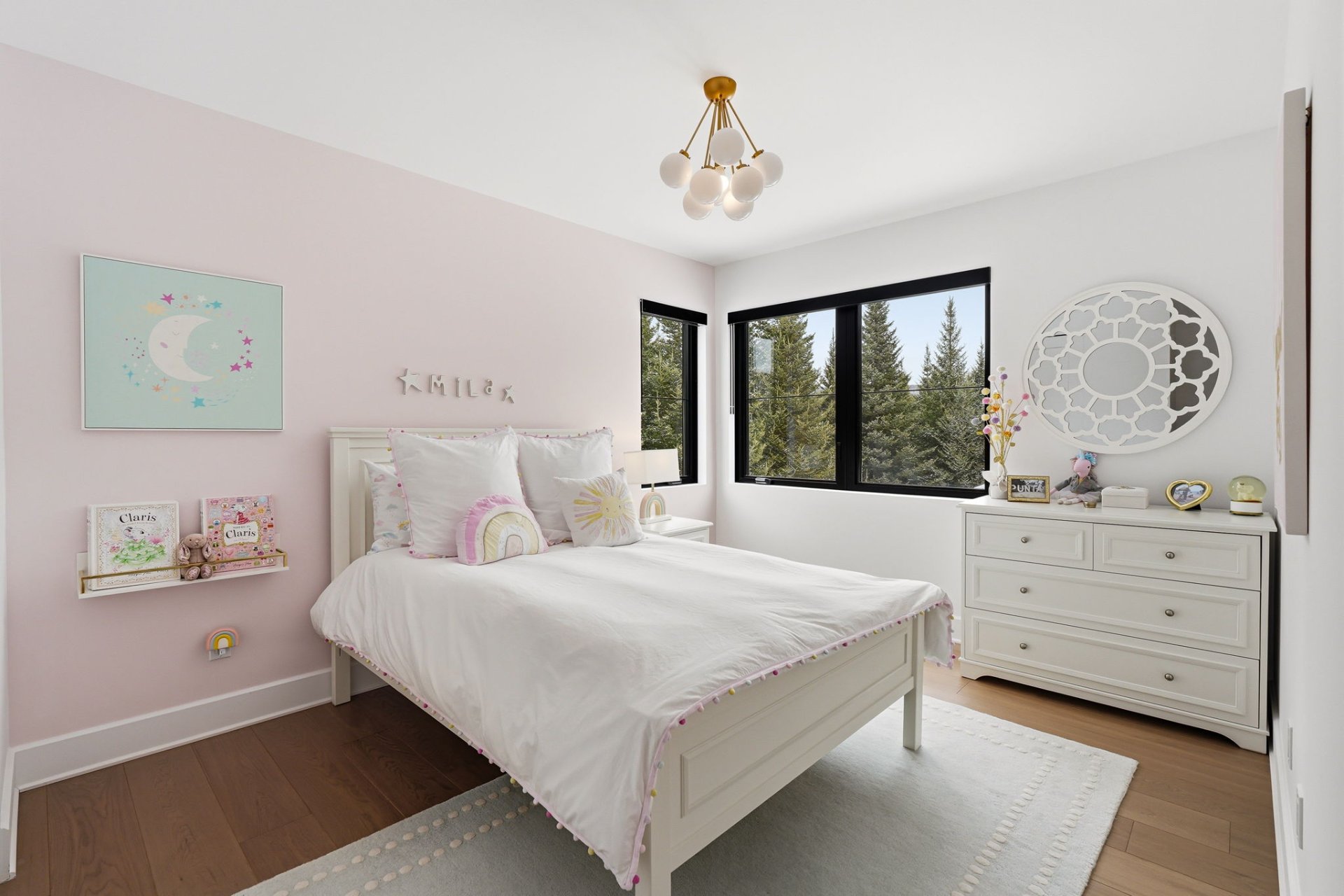 - Laveuse, sécheuse, (4) télévisions, cadres et éléments de décoration aux murs, (2) luminaires chambres d'enfants, (1) luminaire salle à manger, foyer extérieur au gaz et borne de recharge pour voiture électrique.