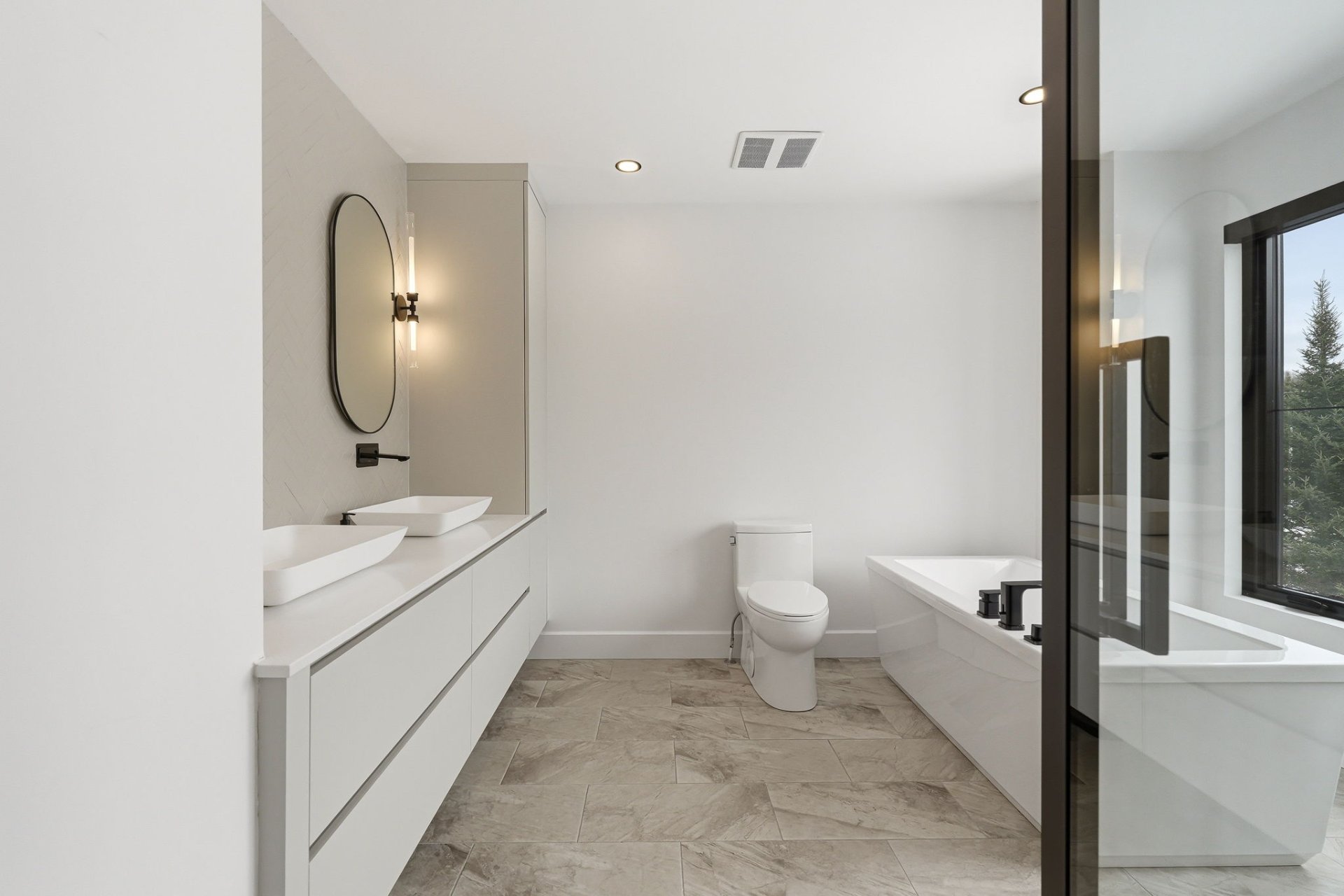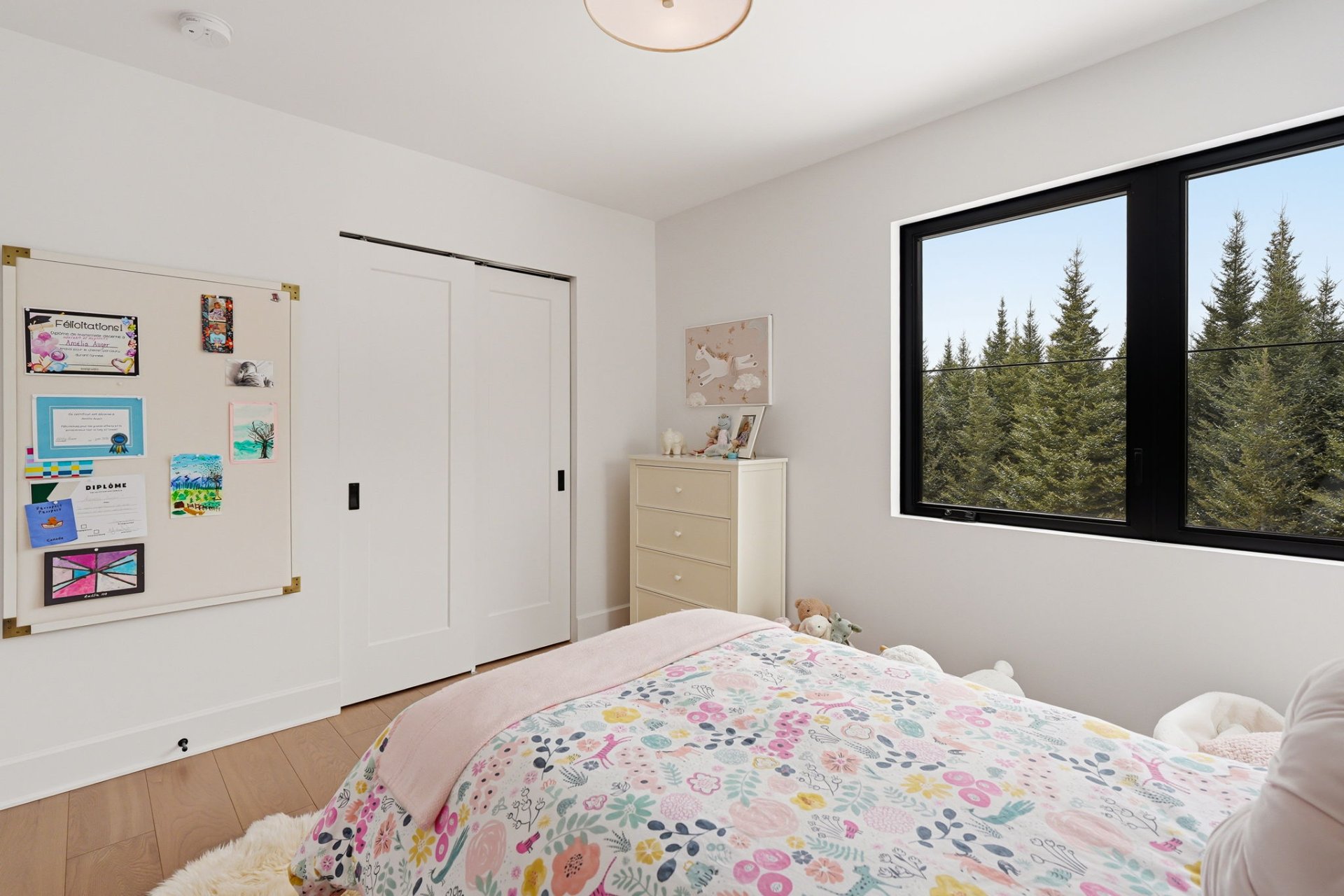 À l'étage, on retrouve trois chambres, dont une suite parentale, chacune profitant d'une vue apaisante sur la nature. Une deuxième salle de bain complète, une salle familiale ainsi qu'une salle de lavage complètent cet étage.