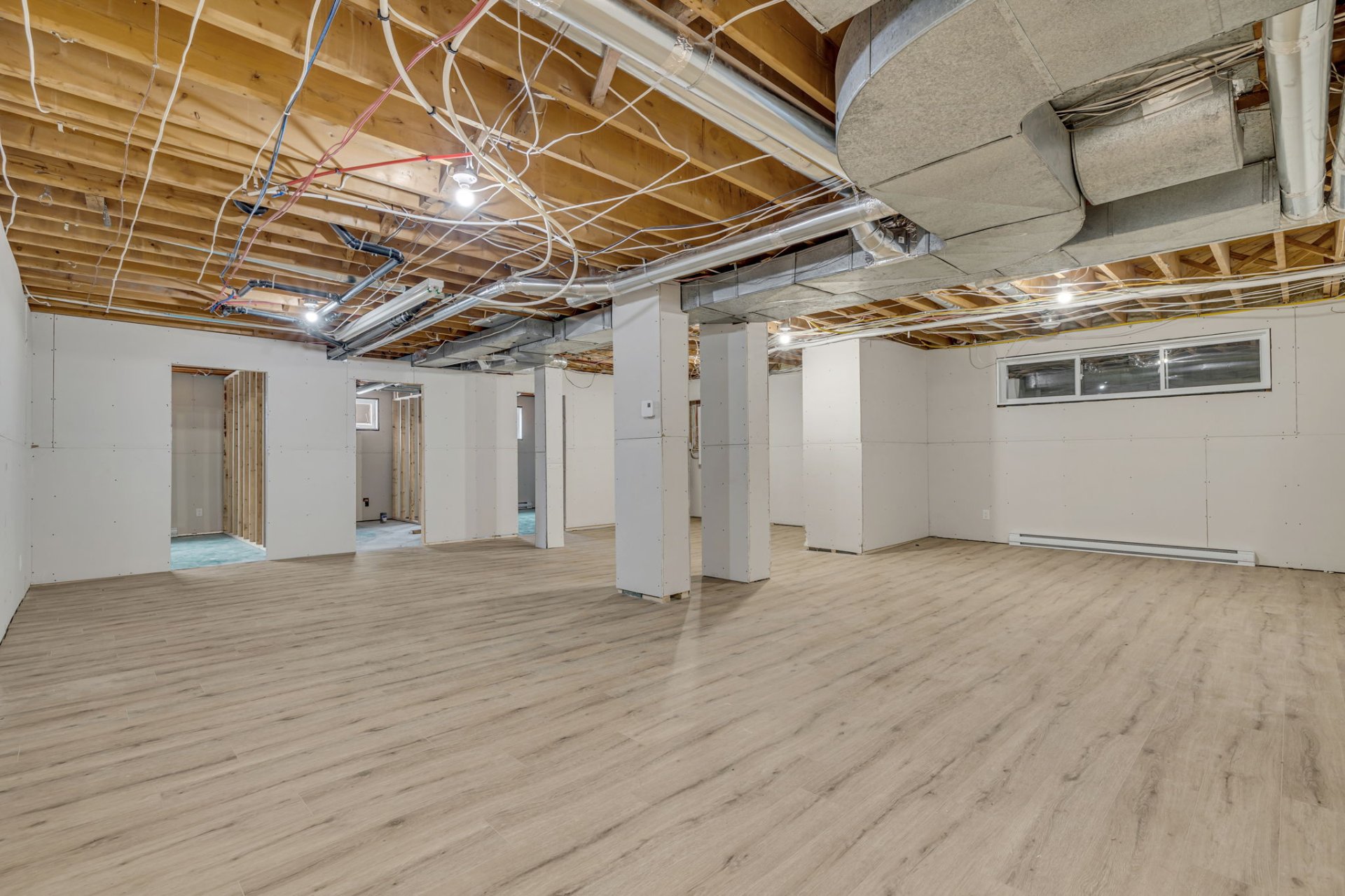 Sous-sol: divisions complétées, laissant place à plusieurs possibilités d'aménagement -- salle familiale, cinéma maison, chambres additionnelles, espace professionnel, ou projet intergénération (sous réserve des règlements municipaux). Cour possédant un beau potentiel d'aménagement: piscine, terrasse ou jardin urbain.