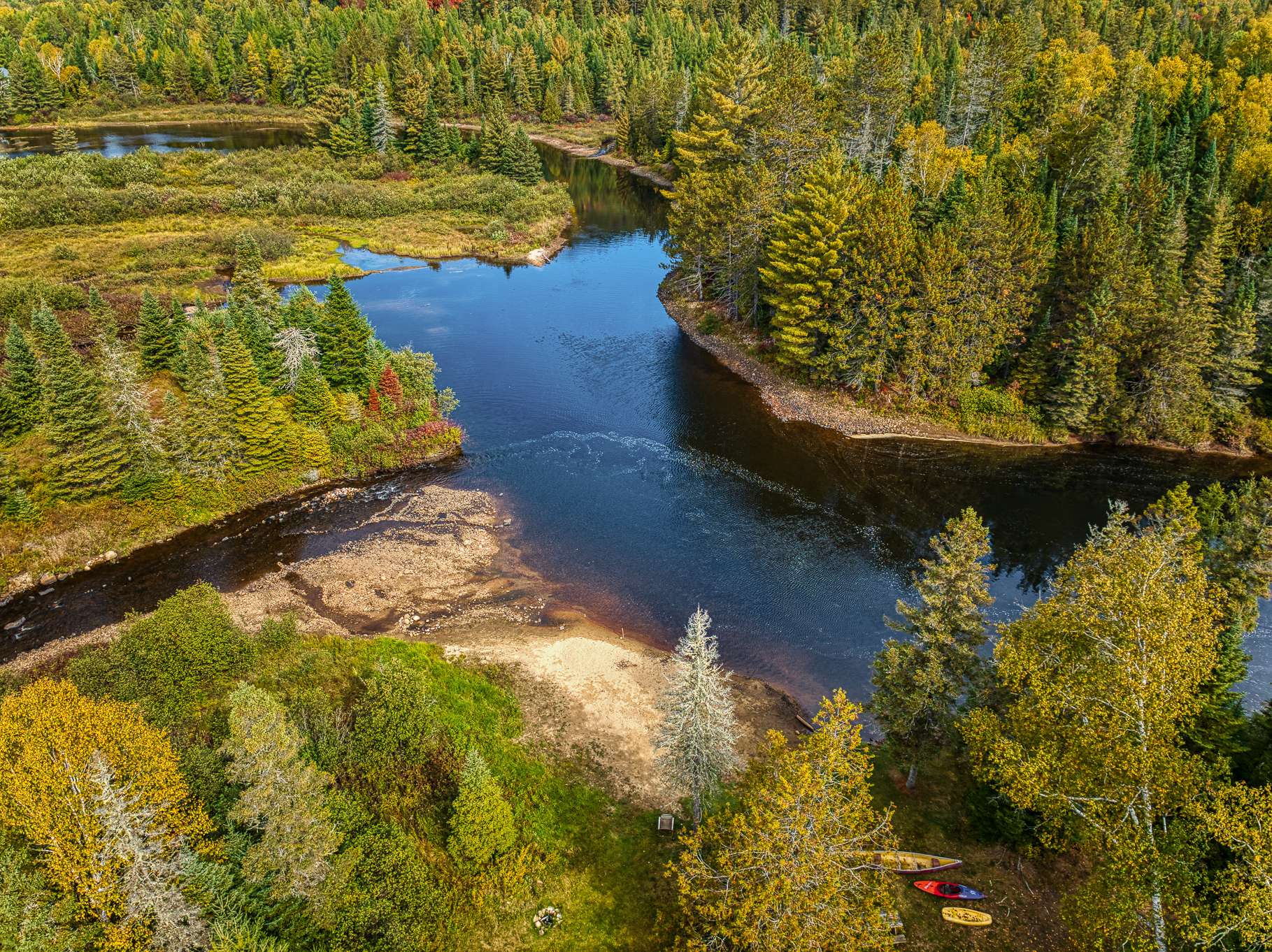 Domaine privé d'exception, directement en bordure de la rivière Dufresne. L'accès se fait par un pont privé traversant la rivière, au confluent des rivières Ouareau et Dufresne. Le site comprend trois chalets indépendants, tous construits en bois rond : un chalet de 4 chambres avec mezzanine, un de 3 chambres et un de 2 chambres. Chaque unité est entièrement meublée et équipée. La location à court terme y est permise, offrant un revenu potentiel de plus de 100 000 $ par année. Le domaine est bordé par la magnifique Forêt Ouareau, idéale pour la randonnée et le ski de fond, avec plusieurs sentiers dont l'un mène à une plage sur la rivière.