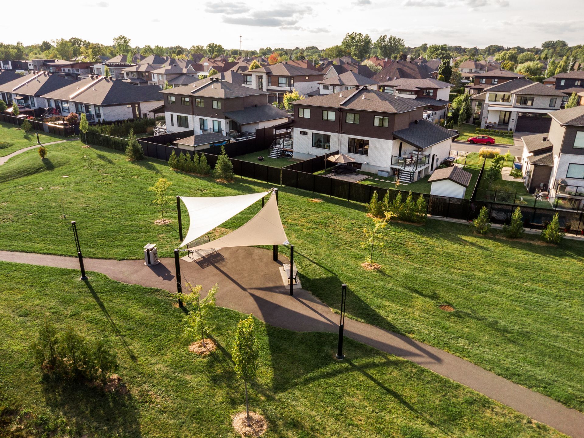 Profitez d'une grande cour sans voisin arrière, offrant intimité et vue sur un vaste parc. Deux terrasses distinctes et un cabanon complètent l'aménagement.