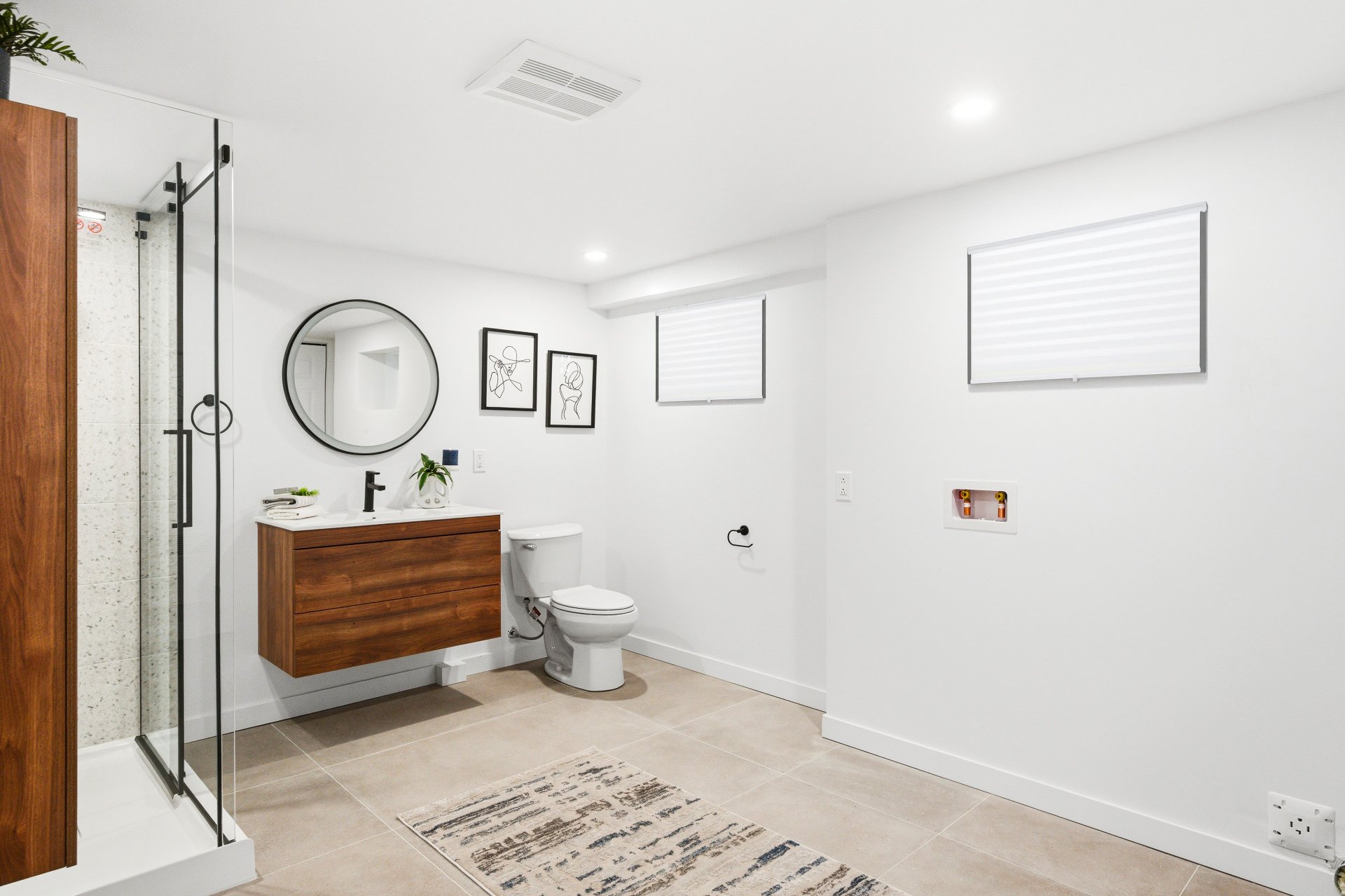 - Au sous-sol, une grande salle de bain / salle de lavage, une 4ème chambre et une vaste salle familiale pouvant accueillir facilement une 5ème chambre.