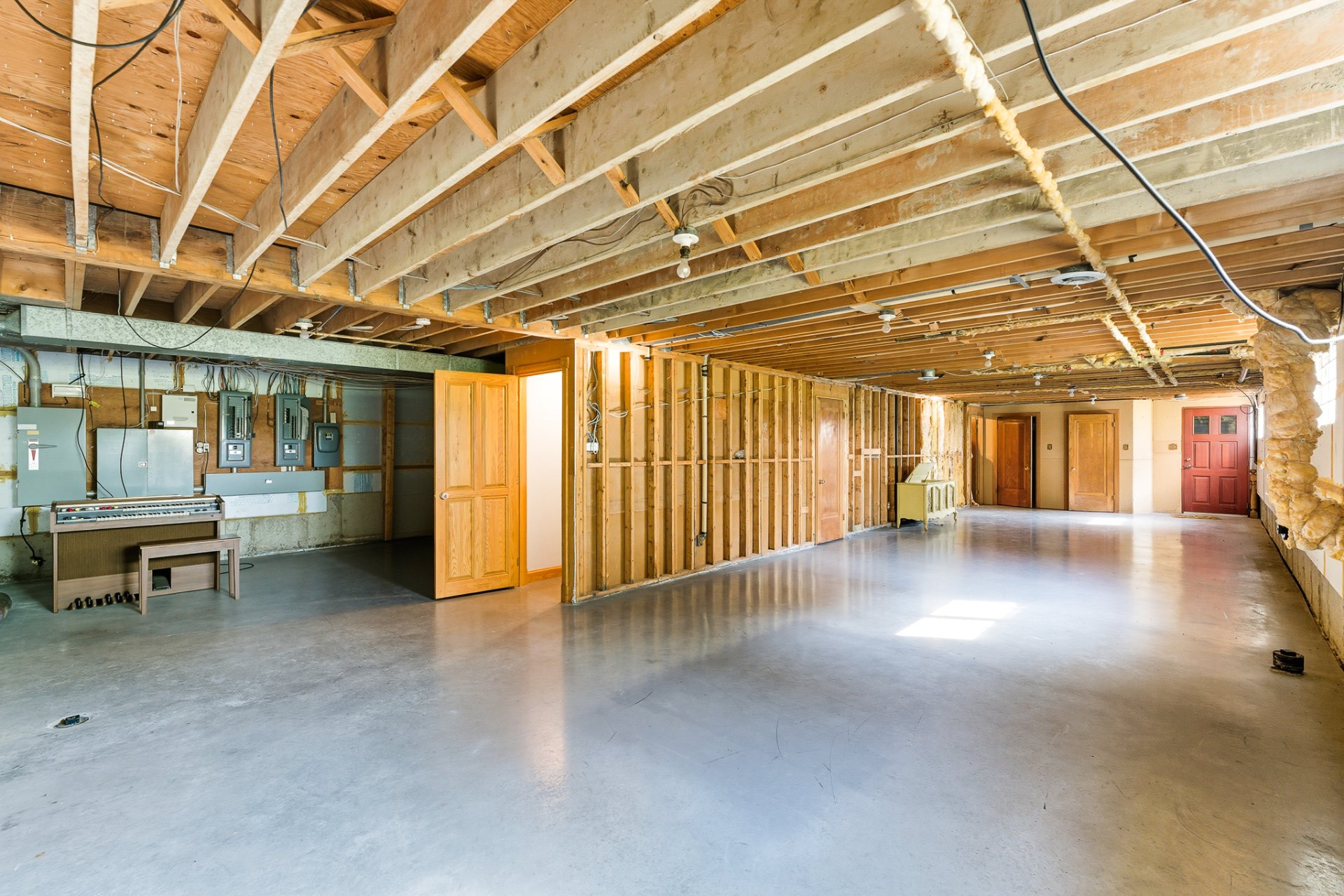 Le vaste sous-sol, encore brut, offre d'innombrables possibilités : salle de jeux, cinéma maison, gym, cellier, atelier ou espace de rangement, à adapter à votre style de vie.
