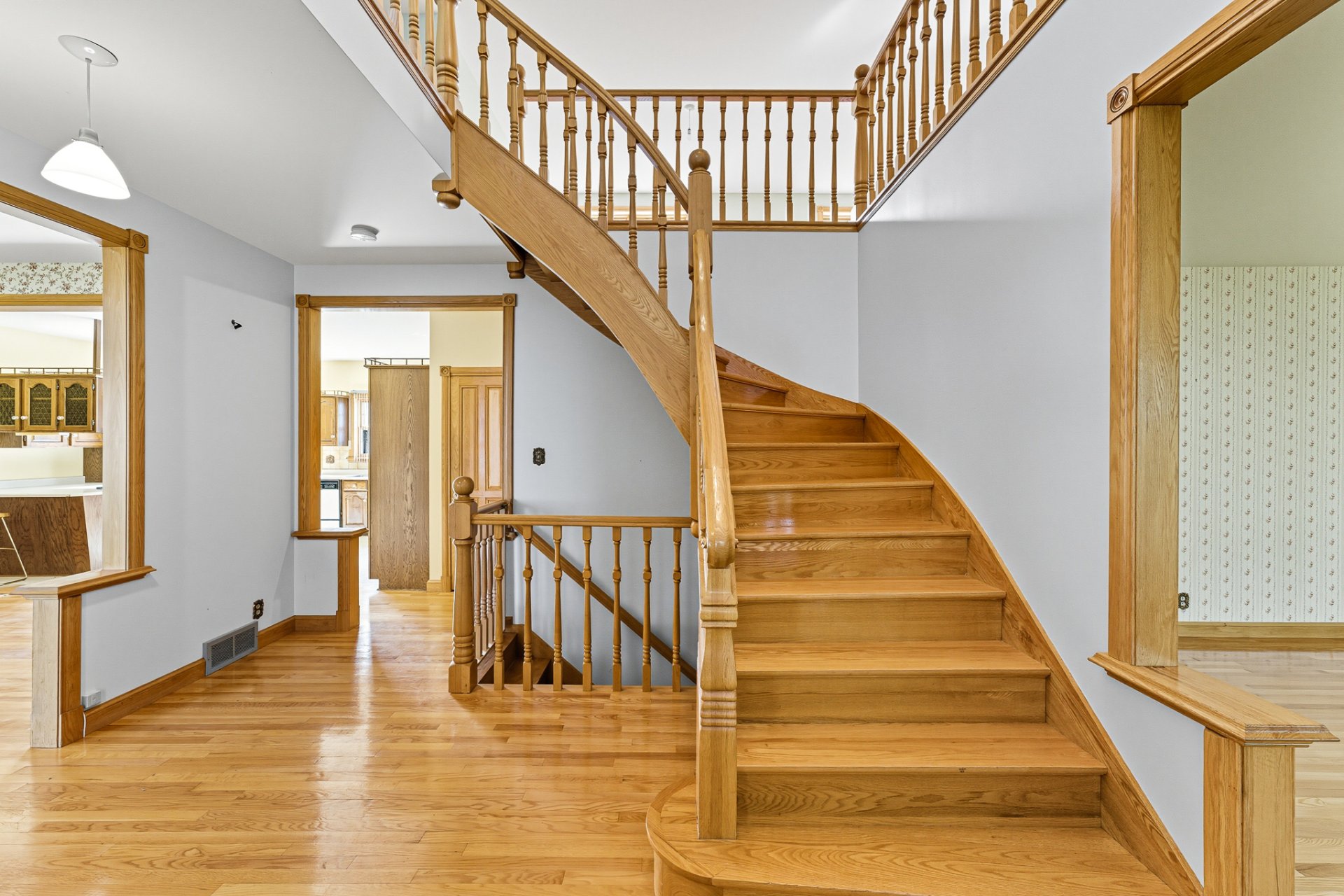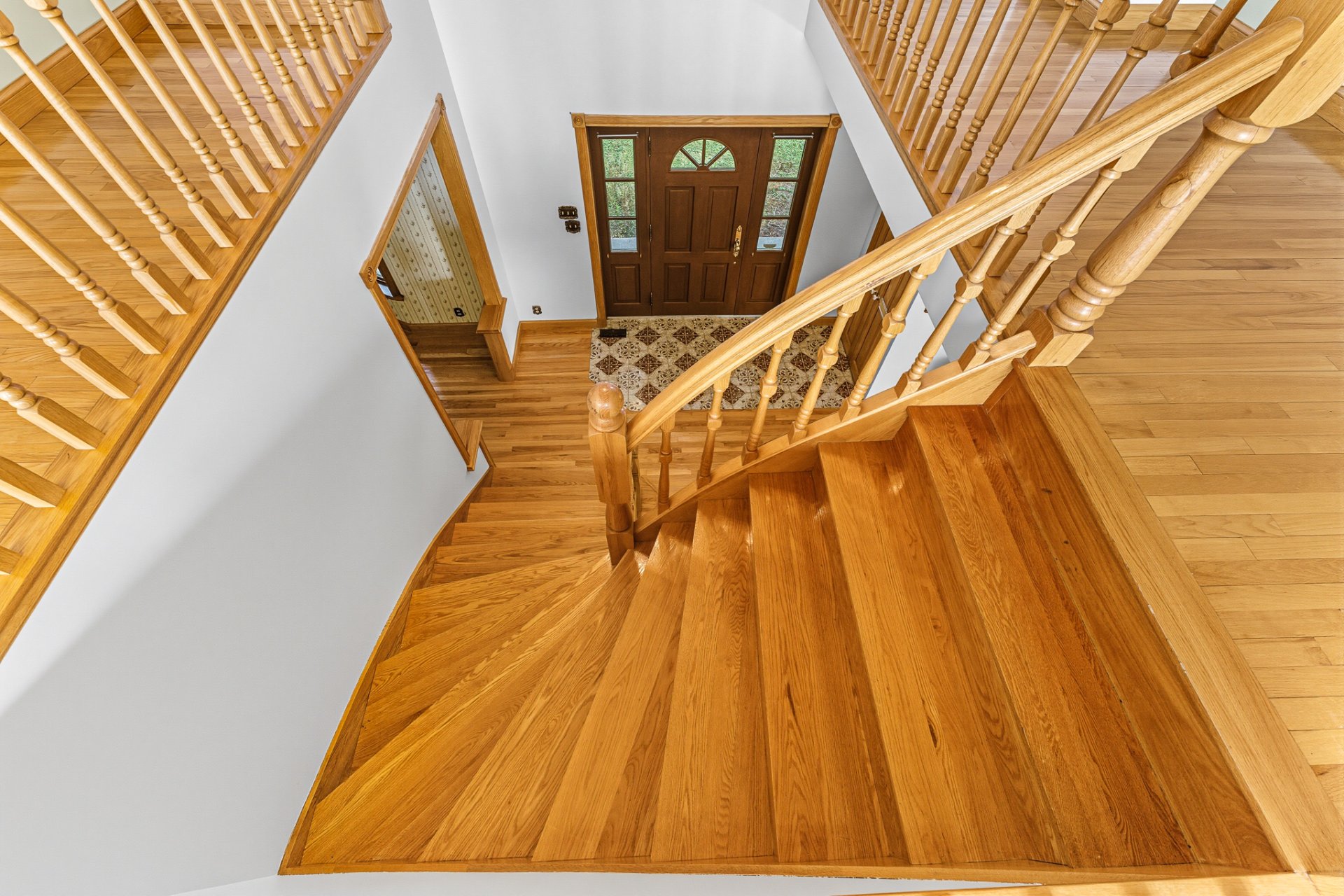 Dès l'entrée, cette demeure de construction solide séduit par son volume généreux du vestibule. Celui-ci s'ouvre sur un escalier central en bois massif qui donne le ton : ici, la chaleur des matériaux se marie à la lumière naturelle pour créer une maison accueillante et pleine de caractère.