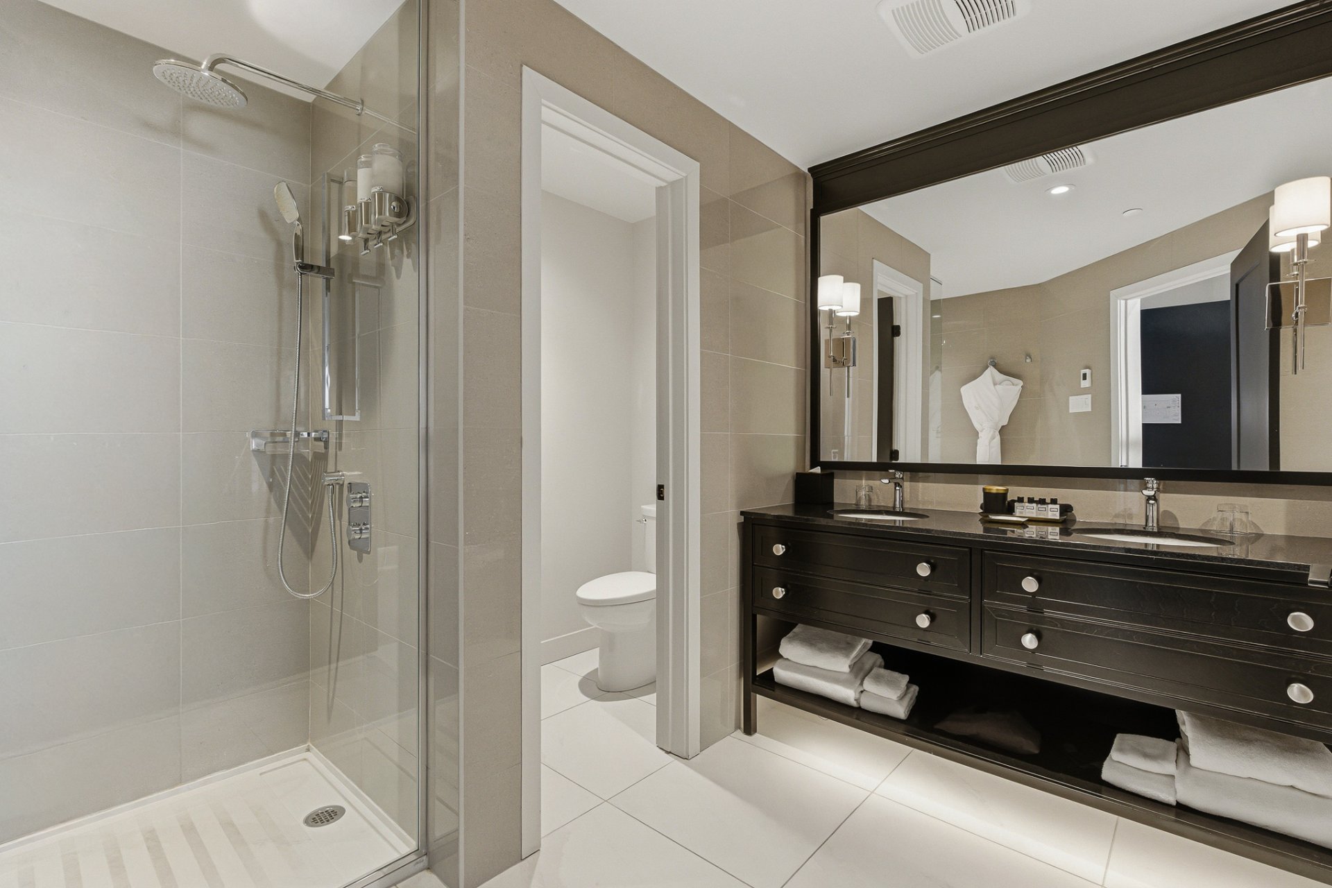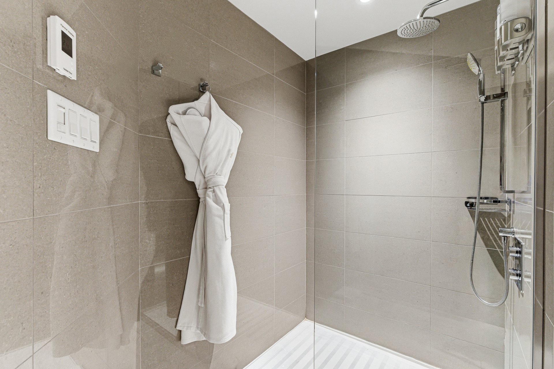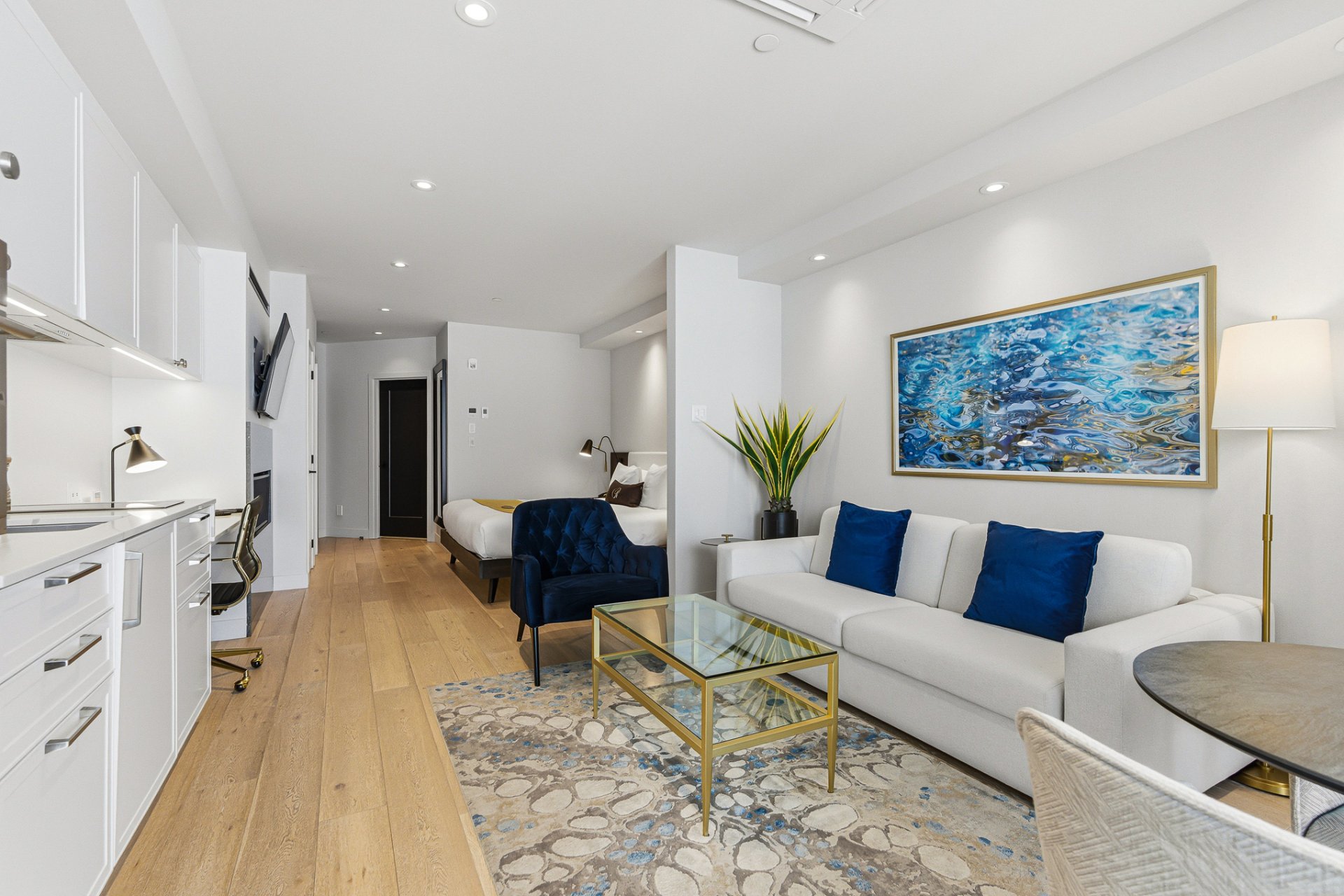 L'unité se distingue par son design contemporain à aire ouverte, ses matériaux de qualité et sa grande fenestration laissant entrer une abondante lumière naturelle. L'espace de vie comprend un foyer moderne créant une ambiance chaleureuse en toute saison, une cuisine, un coin bureau parfaitement adapté au télétravail, ainsi qu'une salle de bains haut de gamme au style épuré.