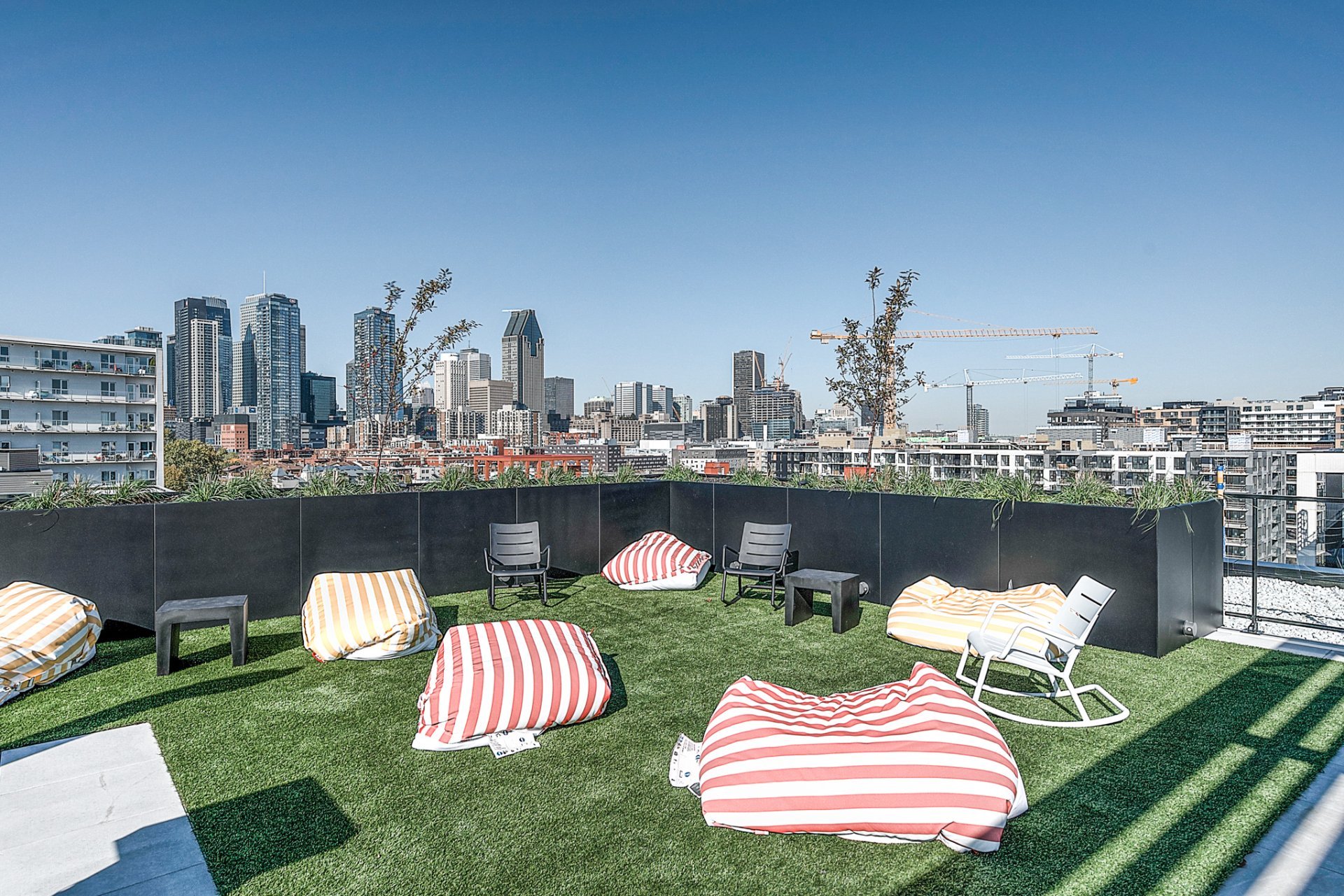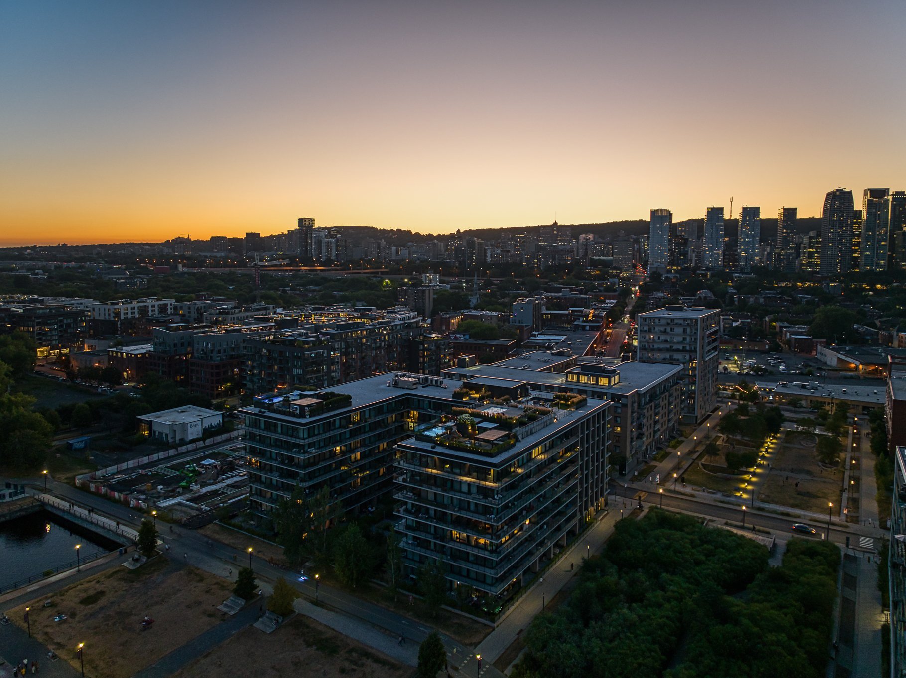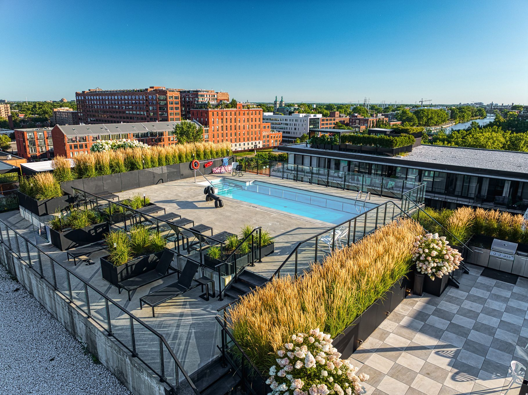 *Terrasse sur le toit avec piscine creusée et vues imprenables sur le Canal Lachine, le Farine Five Roses et le centre-ville de Montréal.
