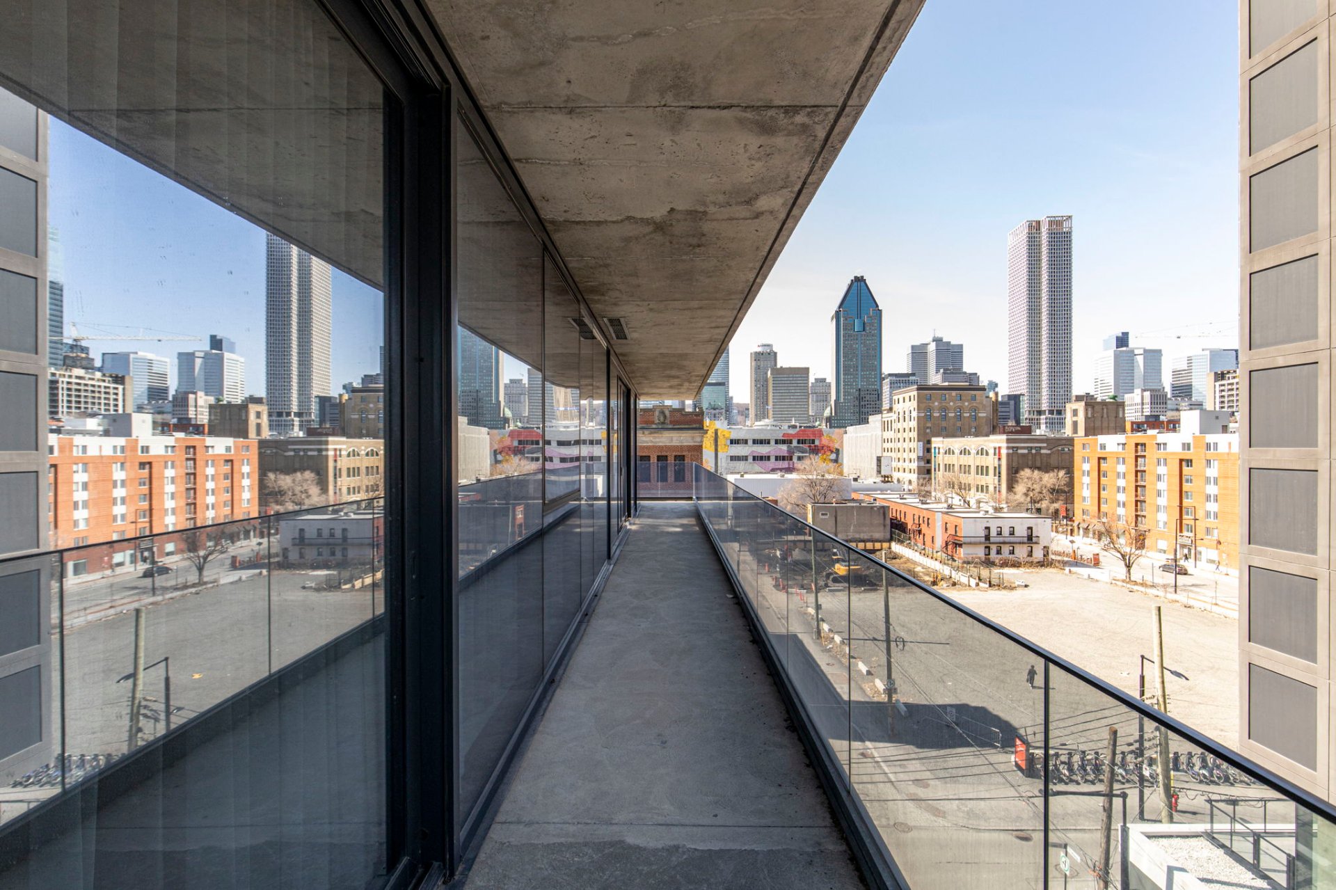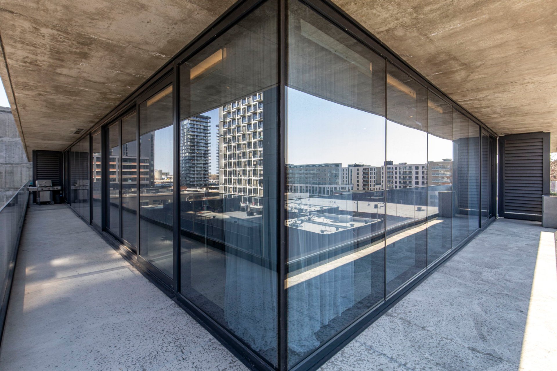 - Très long balcon en forme de «L» avec sortie de gaz pour bbq