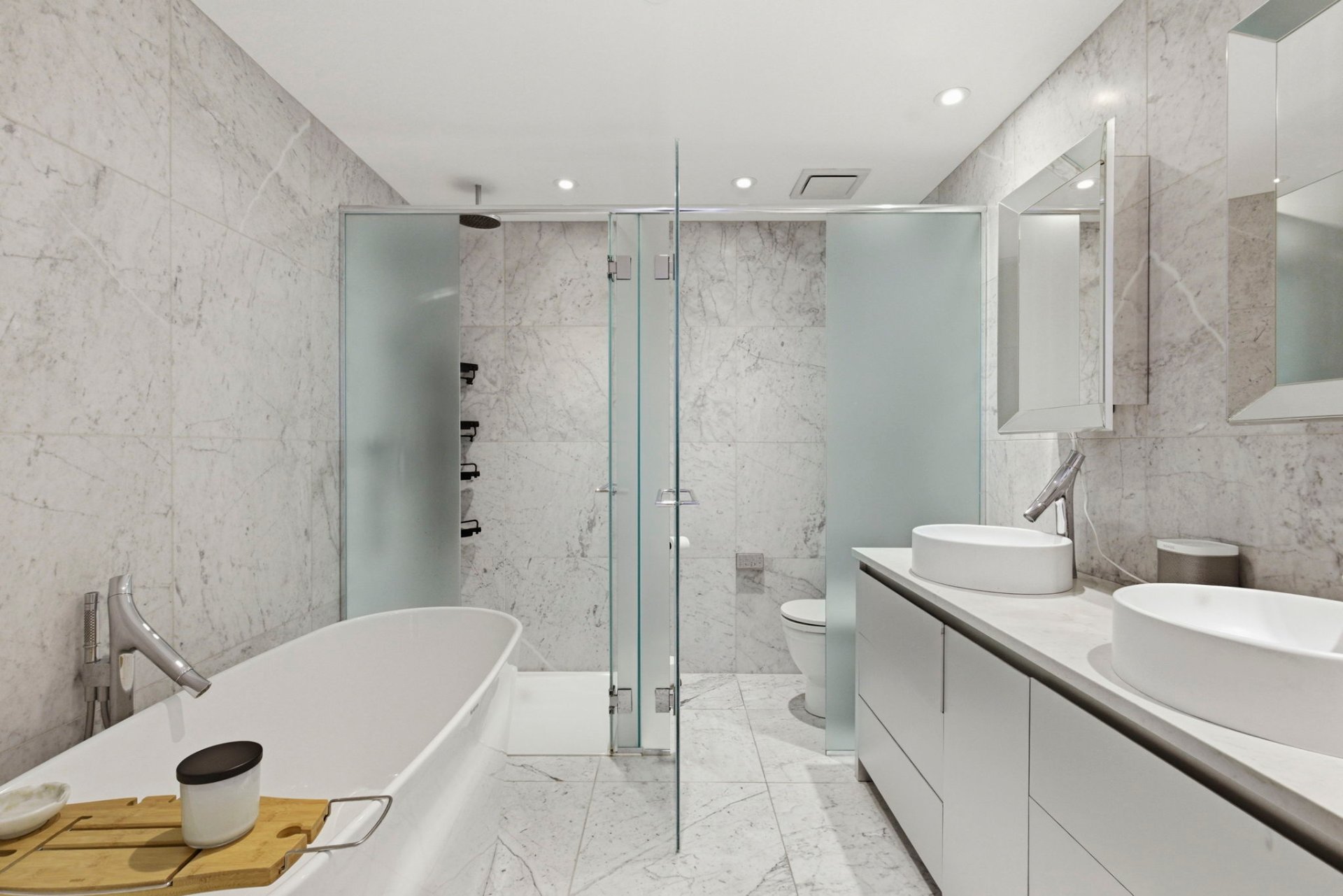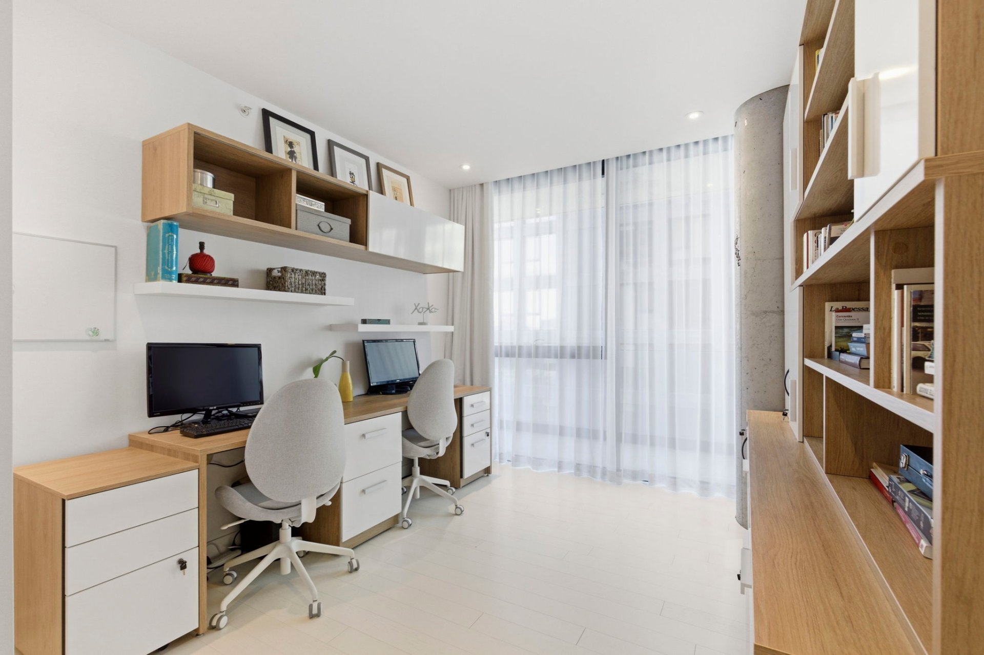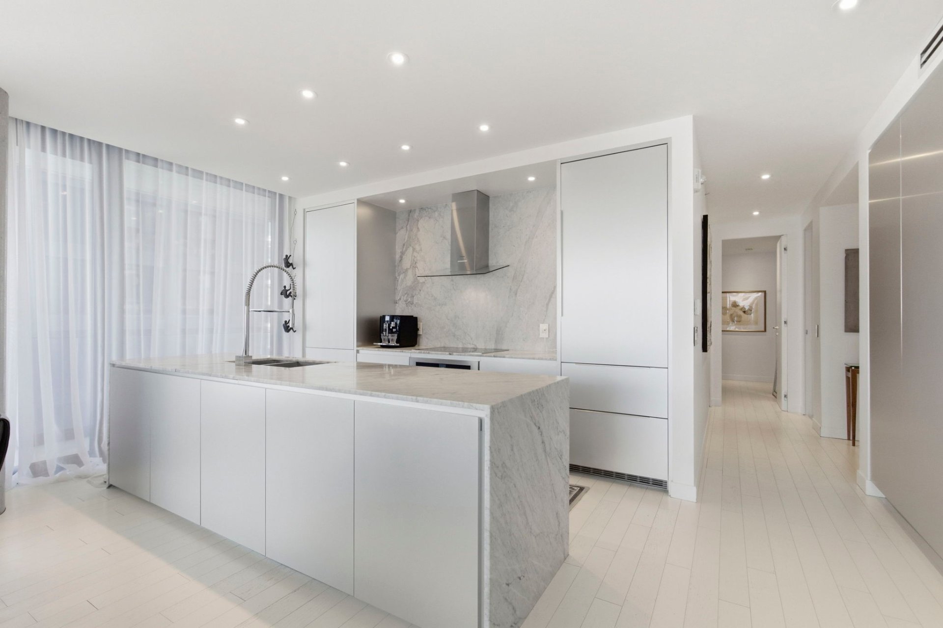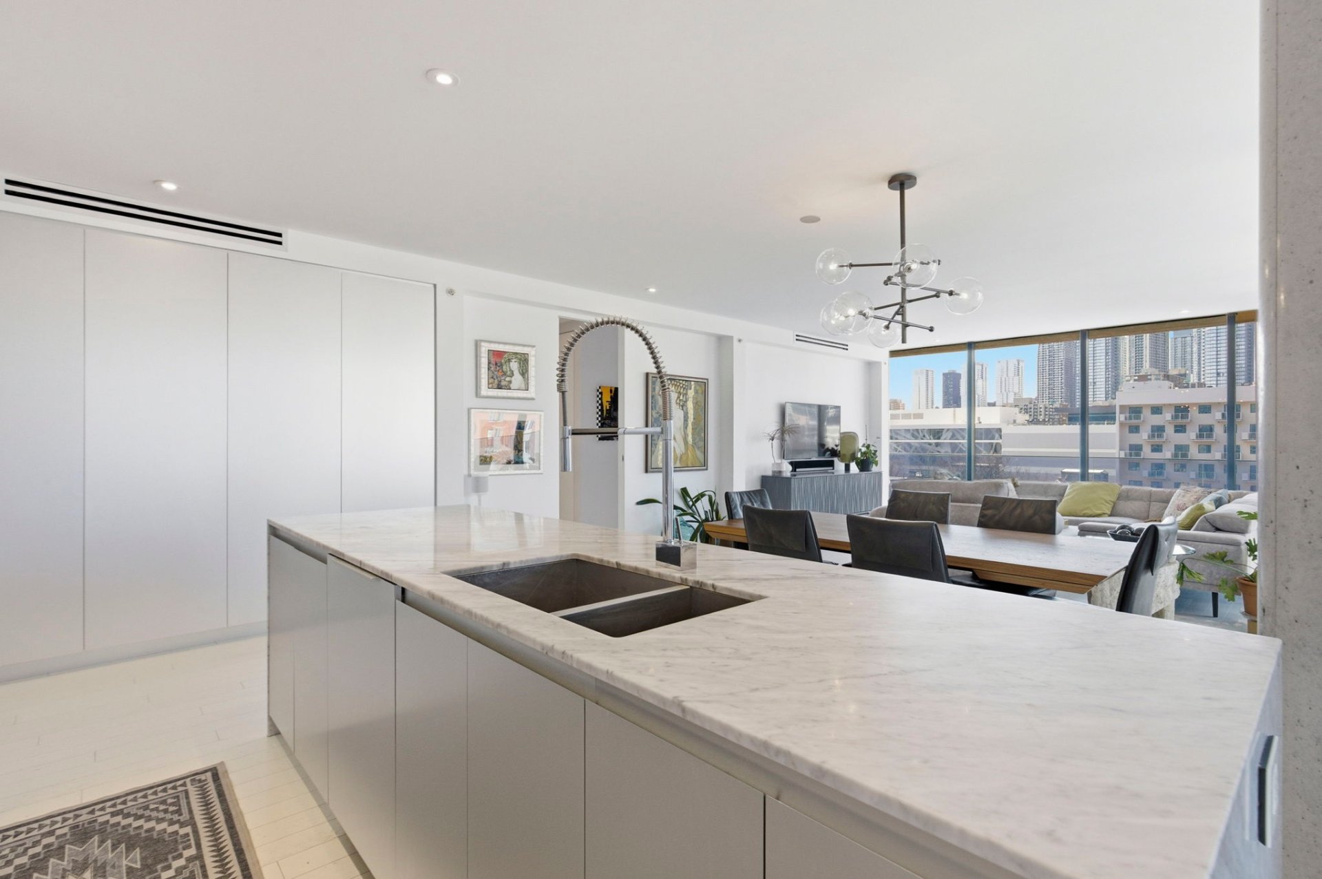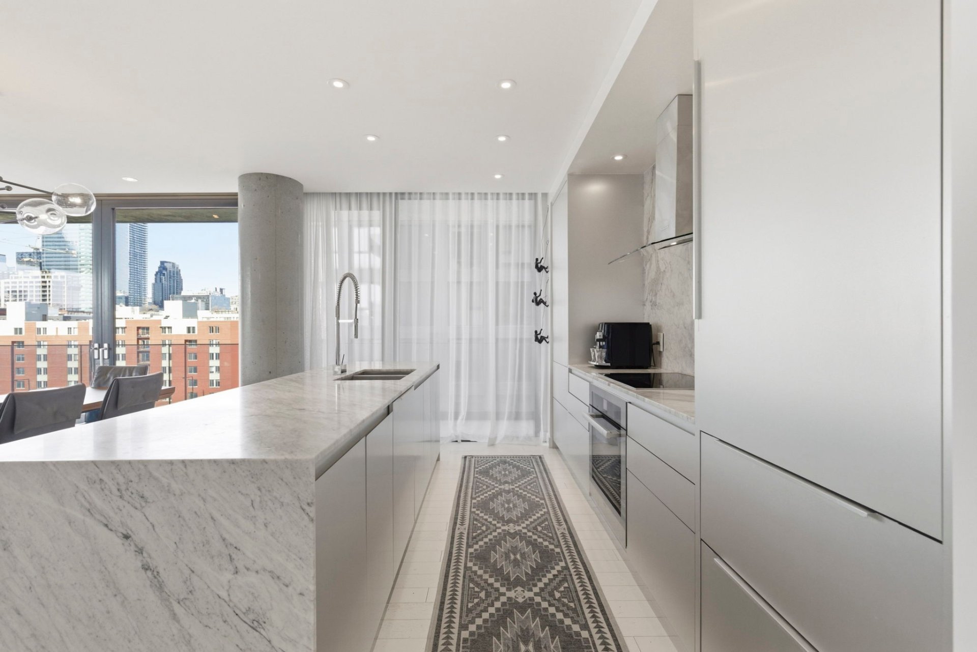 - Réfrigérateur encastré, plaque de cuisson encastrée, lave-vaisselle encastré, laveuse et sécheuse. Meubles sur mesure du bureau (3e chambre) et de la chambre d'invités (comprenant un lit mural/divan). Garage #87 et locker #5.