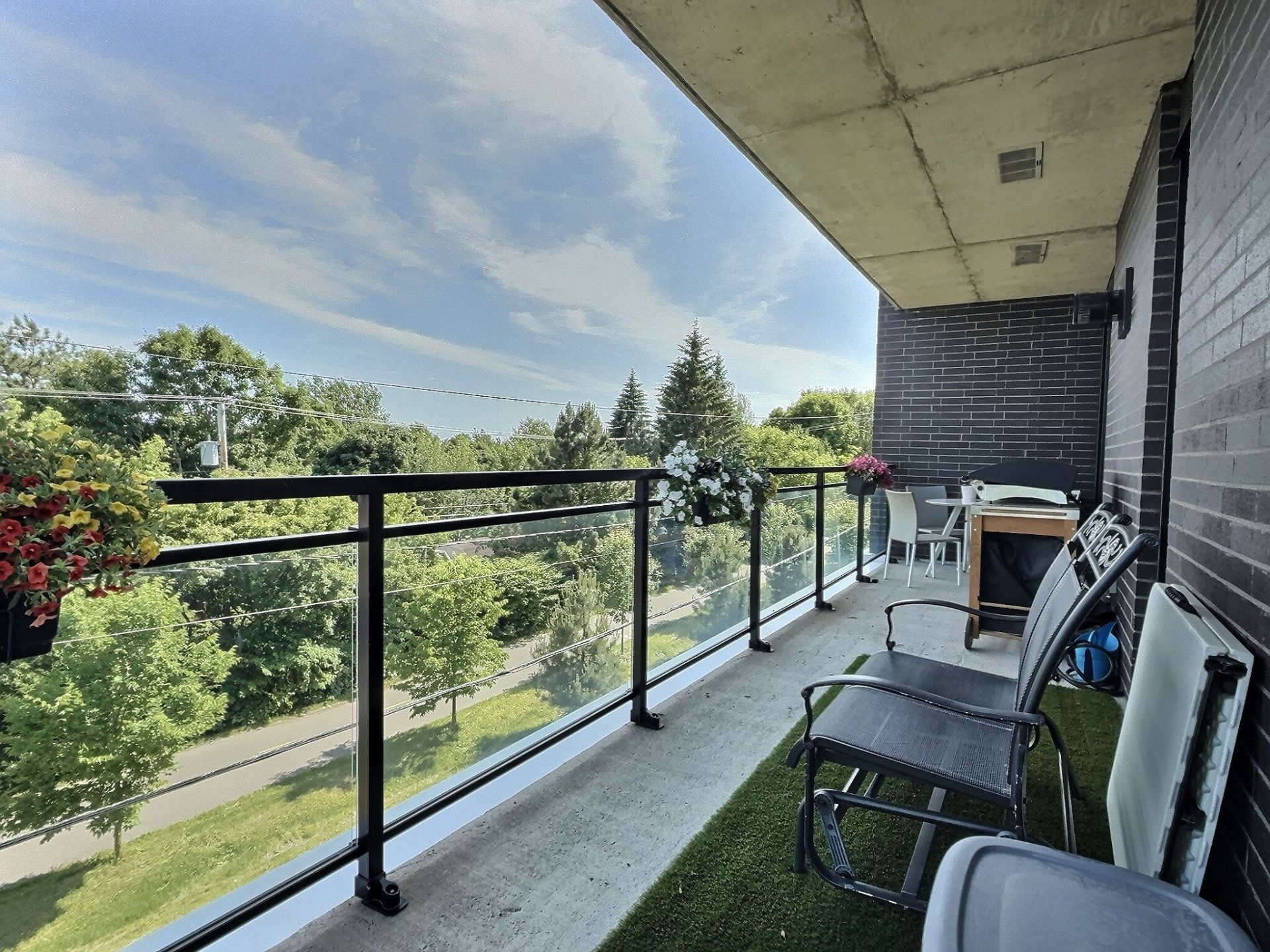 Superbe condo de 2 chambres avec stationnement intérieur, situé dans une unité de coin sud-est, offrant une luminosité exceptionnelle grâce à une abondante fenestration. Profitez d'un espace de vie chaleureux avec foyer au gaz naturel, comptoirs en granit et électroménagers inclus. Adossé à la piste cyclable des Cheminots, l'unité offre une vue partielle sur la ville de Québec. Vous bénéficiez de plusieurs commodités: piscine, salle d'exercice, spas avec terrasse panoramique, atelier et lounge. Une occasion unique de vivre dans un cadre paisible, lumineux et situé près de tous les services.