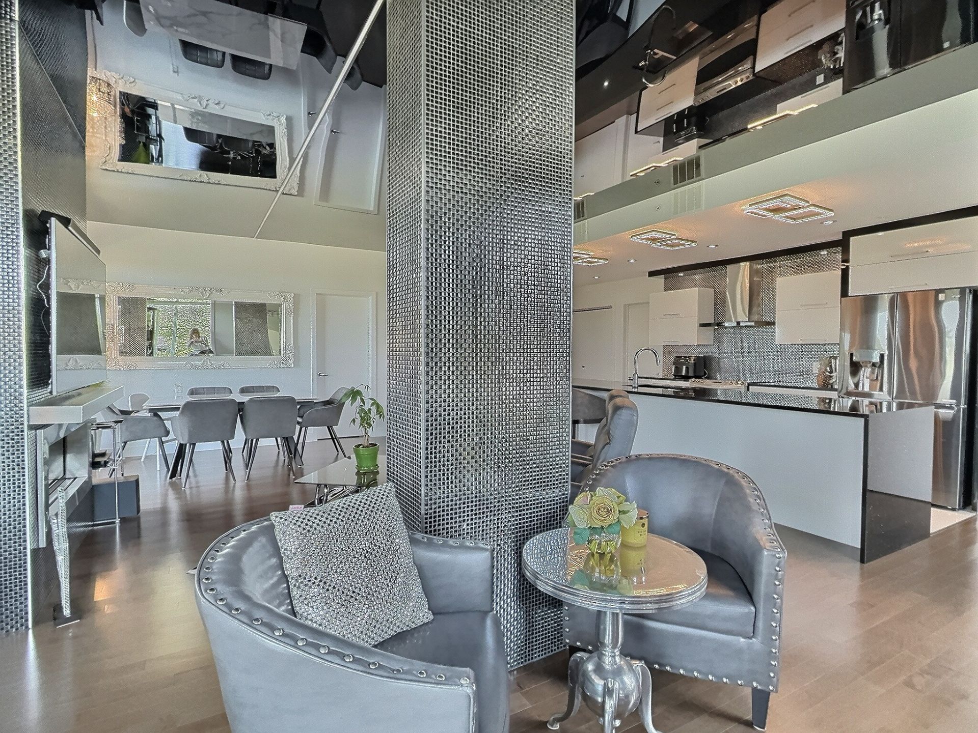- Luminaires, rideaux, toiles motorisées, cuisinière, réfrigérateur, refroidisseur à vin, laveuse, sécheuse, lit King et foyer électrique mural de la chambre des maîtres, foyer électrique mural de la salle de bain, système d'alarme, 2 tabourets de l'îlot, aspirateur central et accessoires