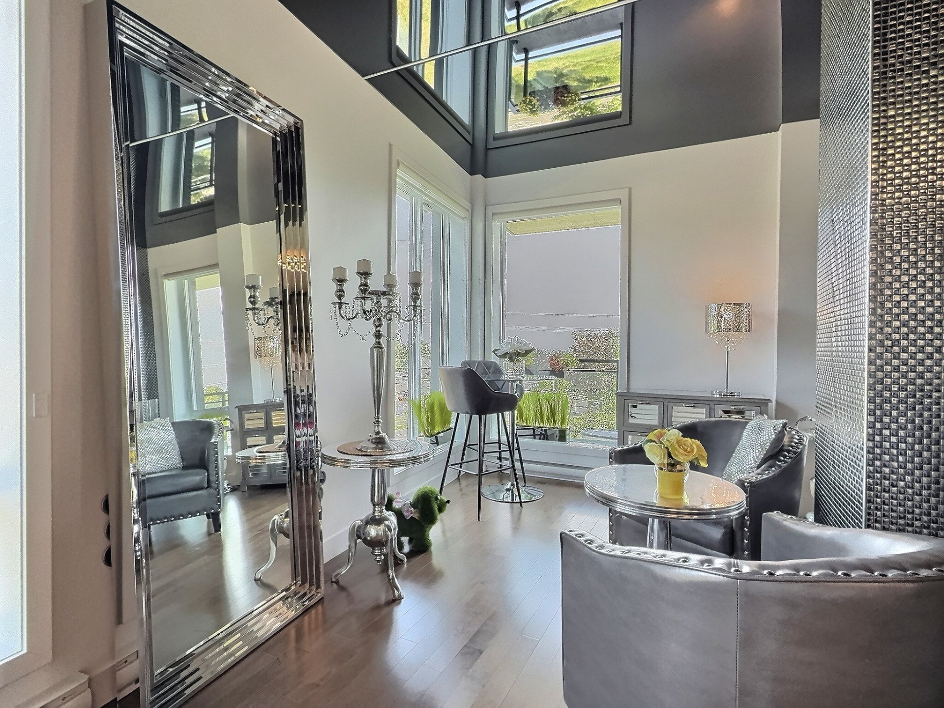 - Miroir de la salle à manger, miroir dans l'aire de vie, miroir de la chambre des maîtres.