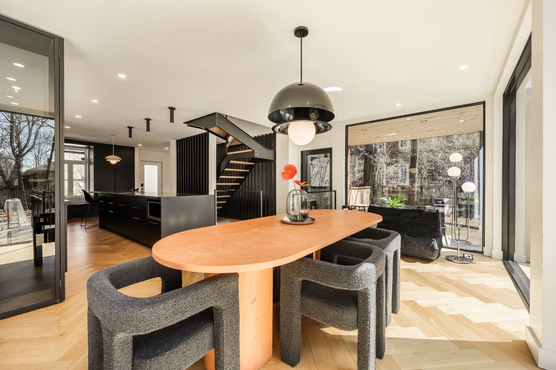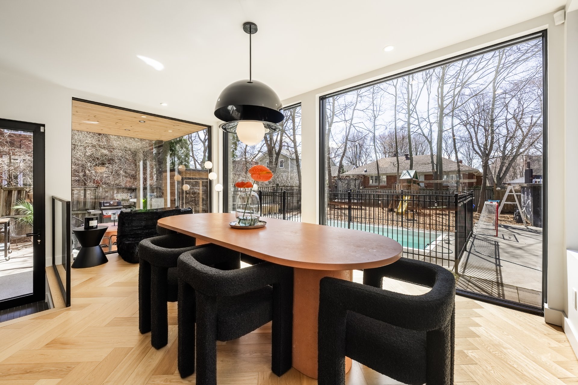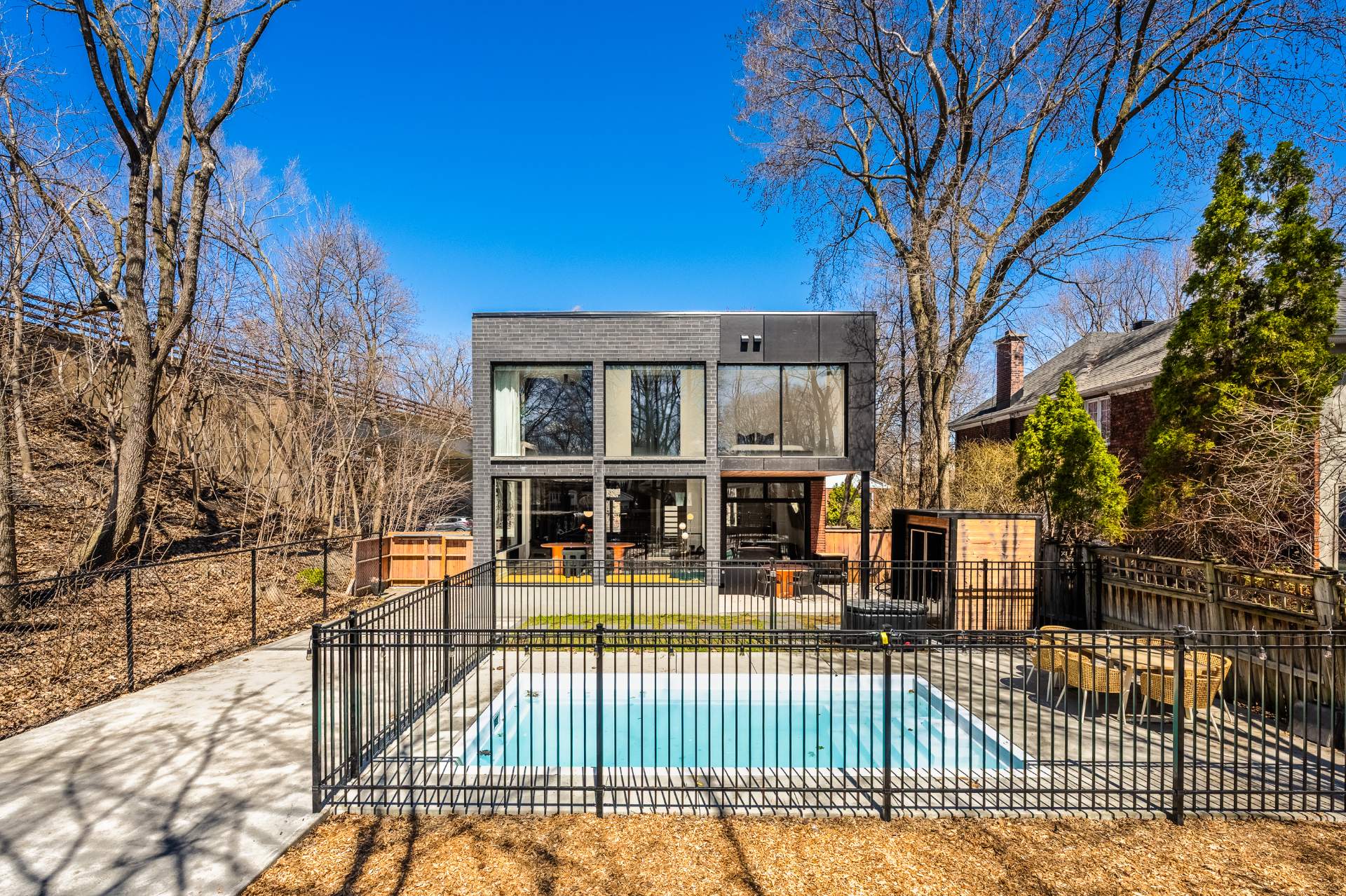 Située au coeur du recherché secteur Victoria Park, cette élégante King cottage en brique rouge marie charme intemporel et rénovation contemporaine haut de gamme. Impressionnant agrandissement à l'arrière avec fenestration pleine hauteur sur les 2 étages, cuisine noire minimaliste avec îlot de 16 pieds et aires de vie baignées de lumière naturelle. Escalier architectural signature et matériaux soigneusement choisis. Suite principale avec walk-in et salle de bain attenante. Cour intime aménagée avec piscine creusée, sauna et espaces détente. Une propriété clé en main, au design distinctif et à l'adresse exceptionnelle.