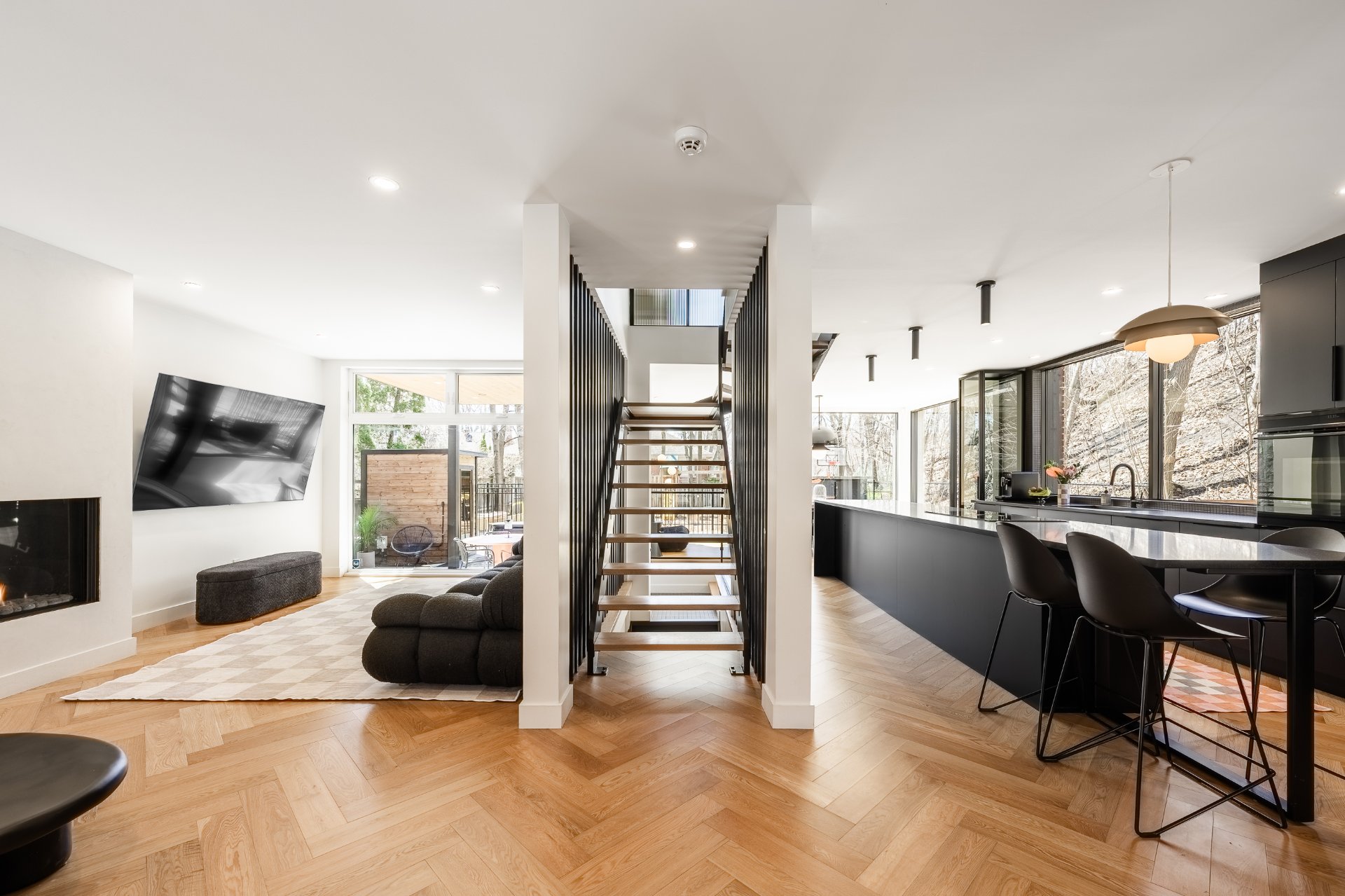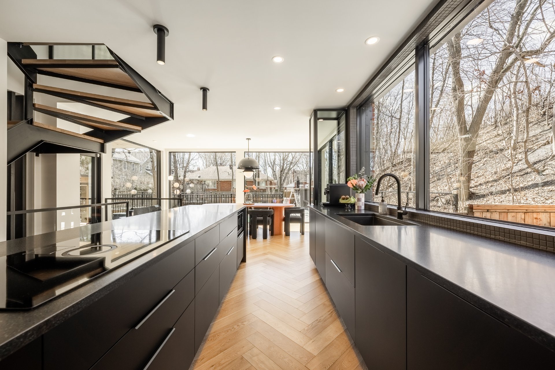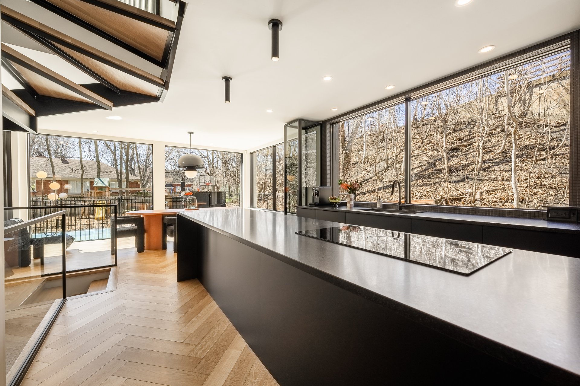 Située au coeur du recherché secteur Victoria Park, cette élégante King cottage en brique rouge marie charme intemporel et rénovation contemporaine haut de gamme. Impressionnant agrandissement à l'arrière avec fenestration pleine hauteur sur les 2 étages, cuisine noire minimaliste avec îlot de 16 pieds et aires de vie baignées de lumière naturelle. Escalier architectural signature et matériaux soigneusement choisis. Suite principale avec walk-in et salle de bain attenante. Cour intime aménagée avec piscine creusée, sauna et espaces détente. Une propriété clé en main, au design distinctif et à l'adresse exceptionnelle.