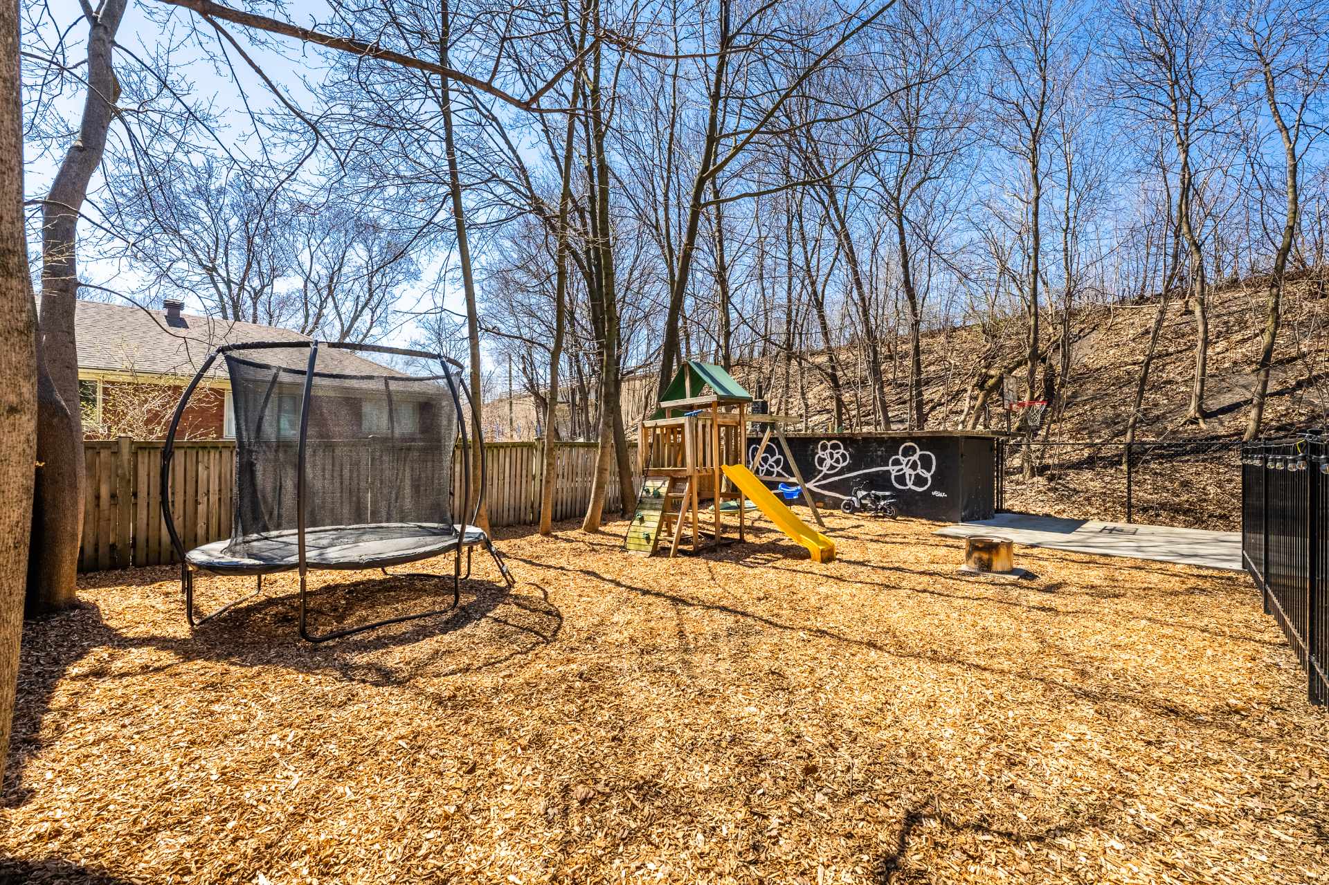 *Aménagement de la cour arrière avec retrait du gazon et ajout de paillis de type parc