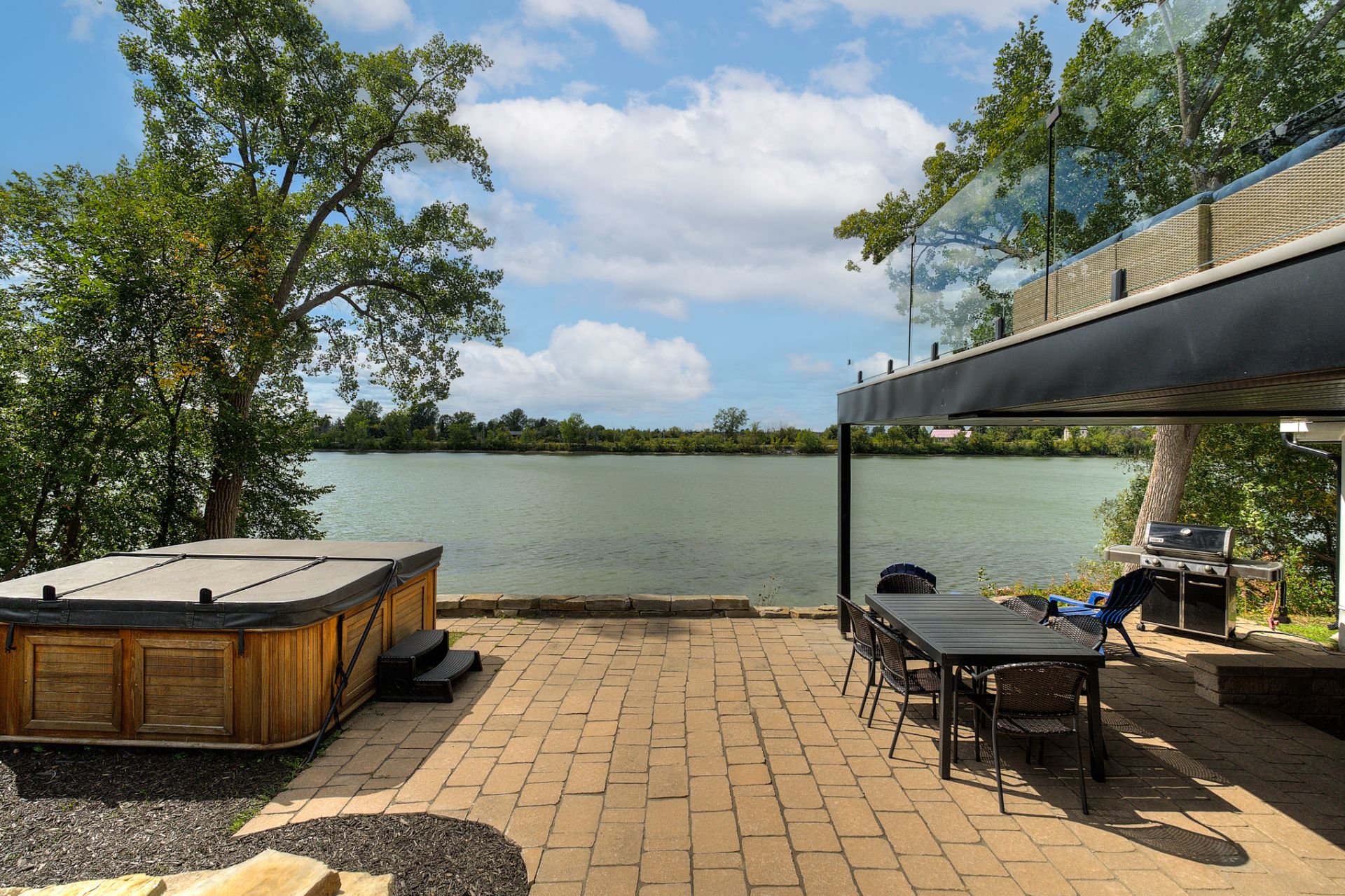 Le terrain de plus de 14 600 pi², bordé directement par le fleuve, offre la possibilité d'ajouter un quai privé. La vue dégagée et l'accès direct à l'eau en font un cadre de vie privilégié, autant pour les occupants que pour la location à court terme - un permis Airbnb est déjà en vigueur. La dépendance attenante peut aisément être aménagée en atelier ou en studio.