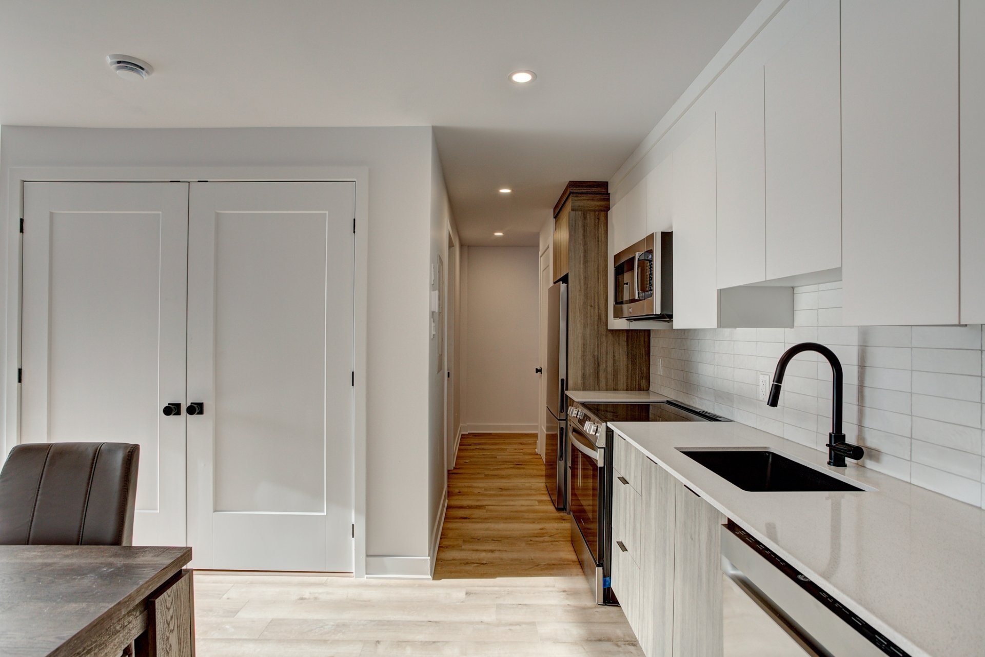 Magnifique 4 ½ avec mezzanine sur deux étages dans une construction neuve (2024) à Ville-Marie (secteur Ste-Marie). Meublé et tout inclus, ce logement offre une architecture urbaine moderne, pensée pour maximiser le confort et la tranquillité. La construction est de grande qualité, avec des comptoirs en quartz et des matériaux modernes et durables. Profitez d'une insonorisation supérieure, d'une terrasse privée incroyable, et d'un immeuble sécurisé avec caméra et concierge sur place. À deux minutes de marche du métro Frontenac et des commerces locaux.