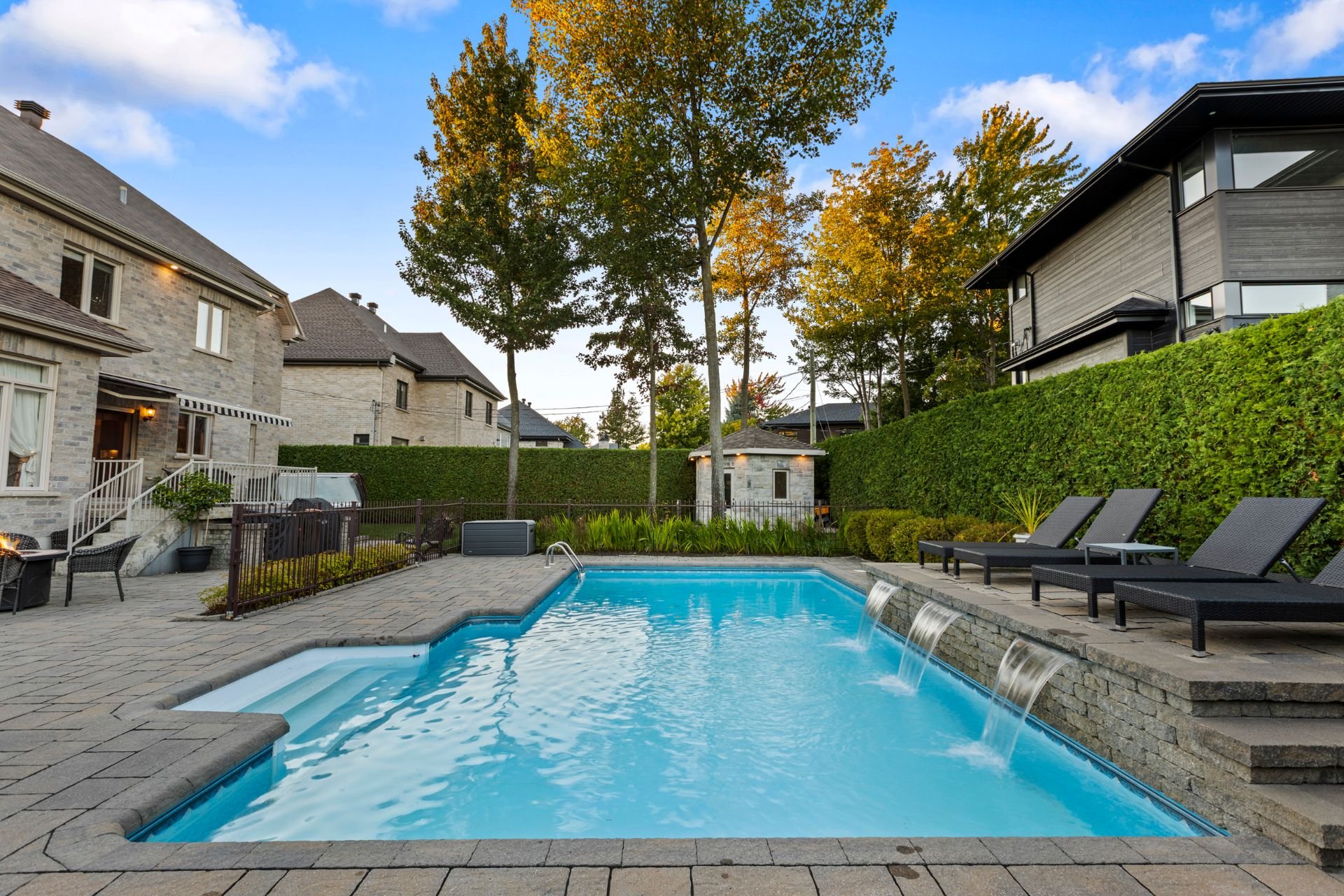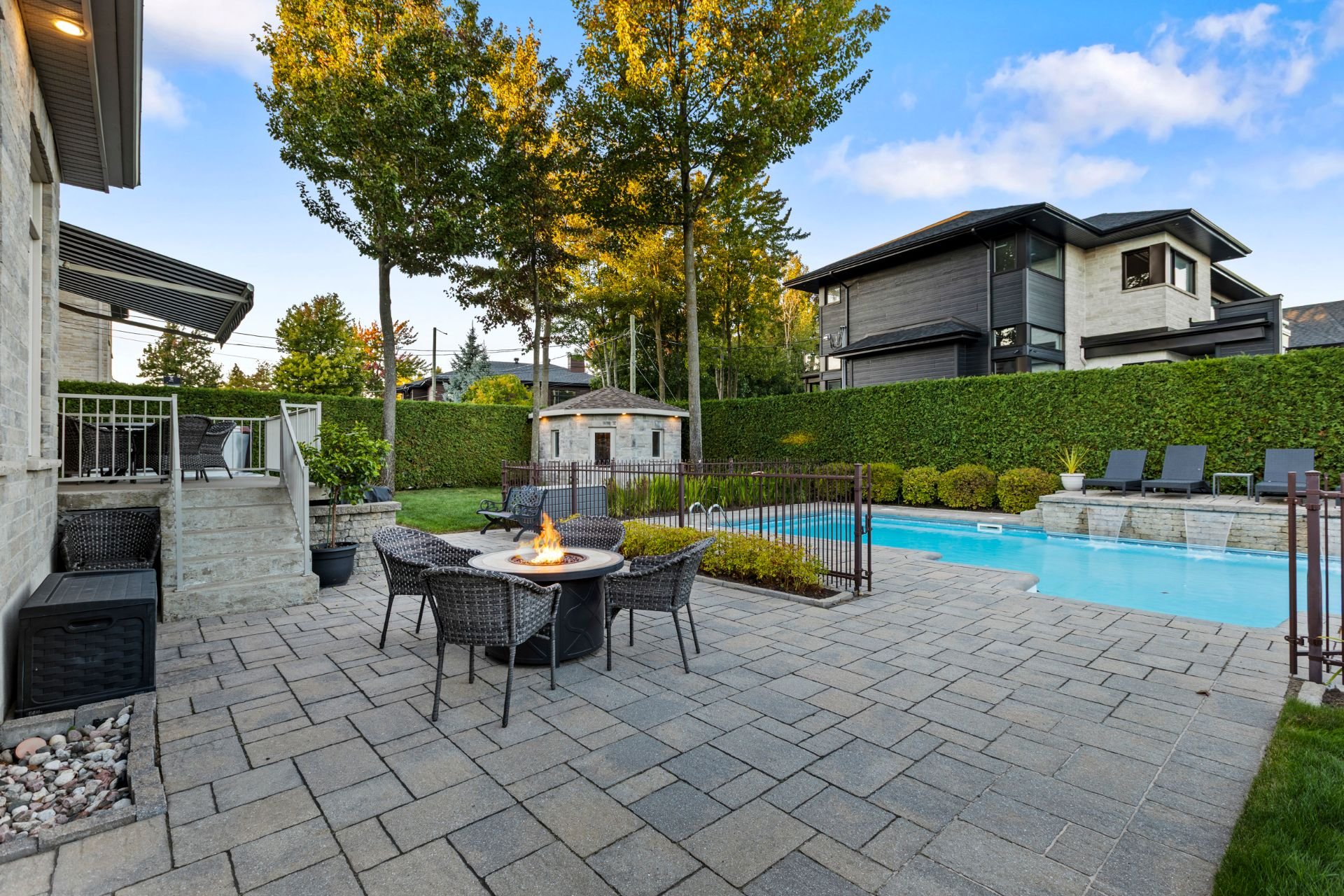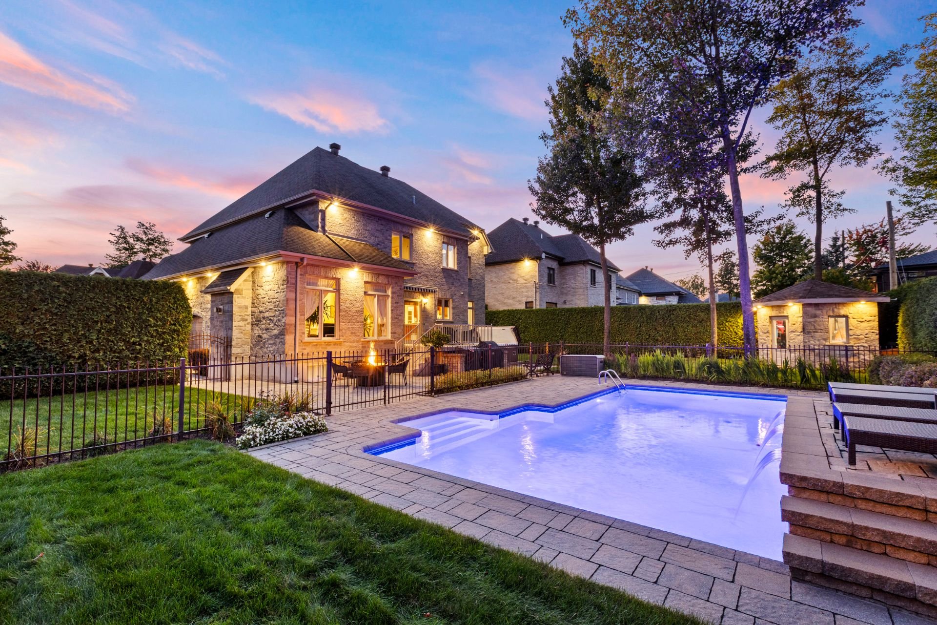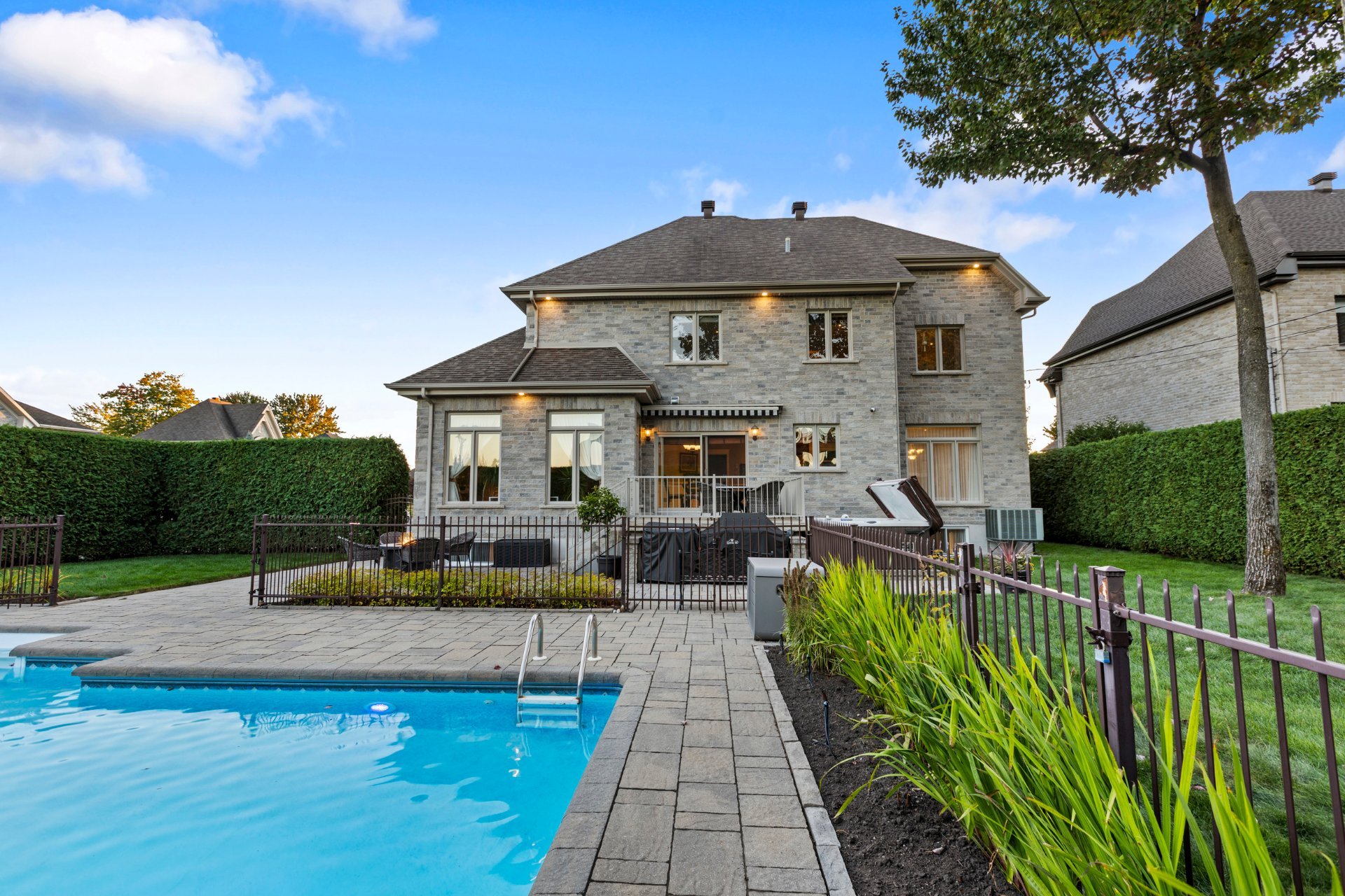 À l'extérieur, un véritable havre de paix vous attend : piscine creusée et chauffée avec cascade d'eau, spa, cour intime entièrement clôturée, cabanon quatre côté de pierre et aménagement paysager signé par des professionnels. Un espace parfait pour la détente, les réceptions et les moments inoubliables en famille ou entre amis.