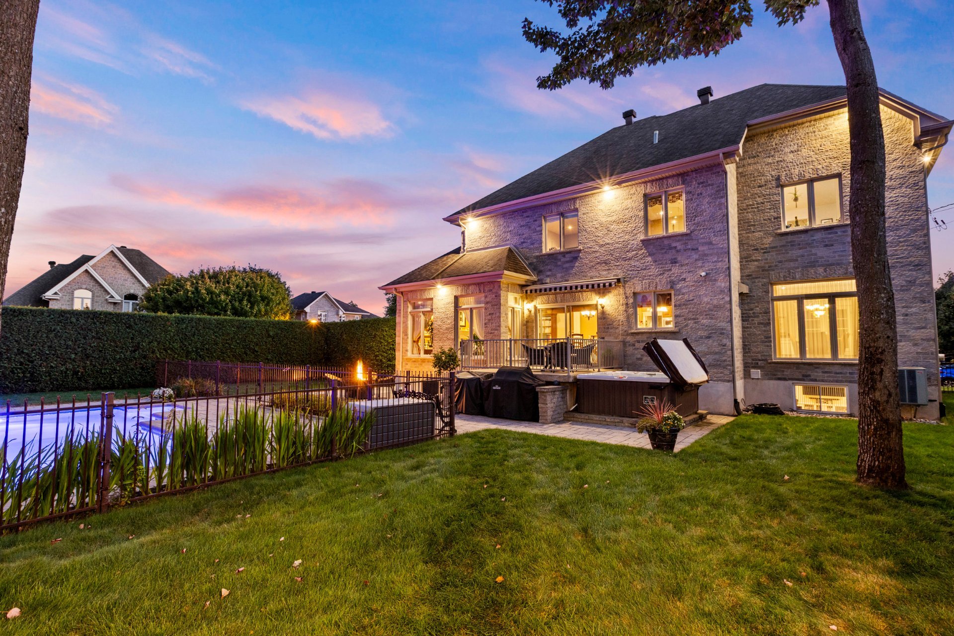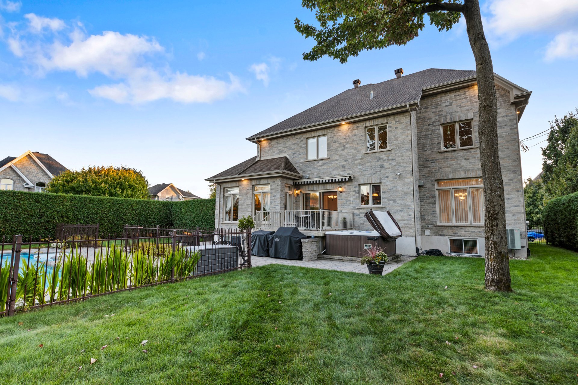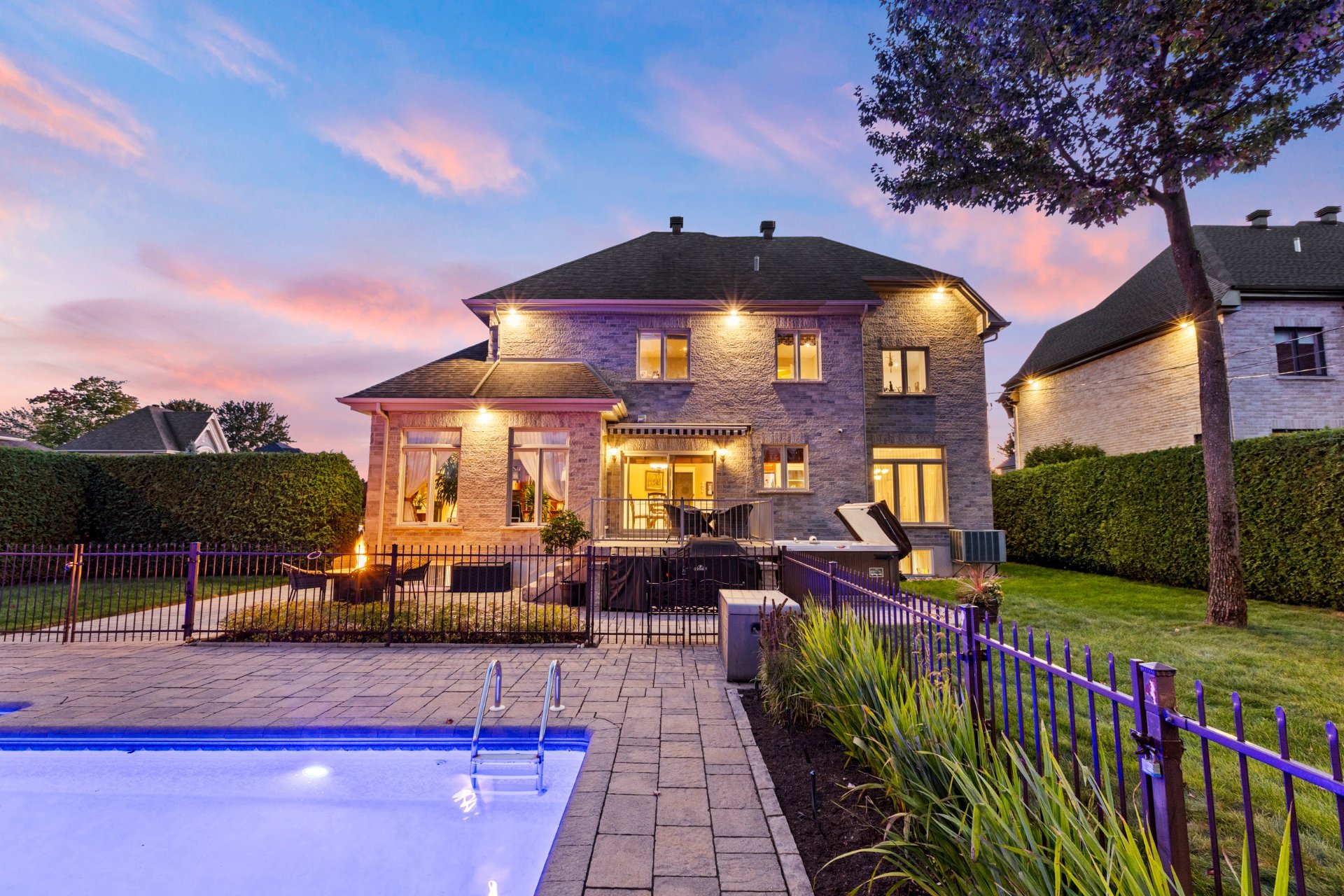 À l'extérieur, un véritable havre de paix vous attend : piscine creusée et chauffée avec cascade d'eau, spa, cour intime entièrement clôturée, cabanon quatre côté de pierre et aménagement paysager signé par des professionnels. Un espace parfait pour la détente, les réceptions et les moments inoubliables en famille ou entre amis.