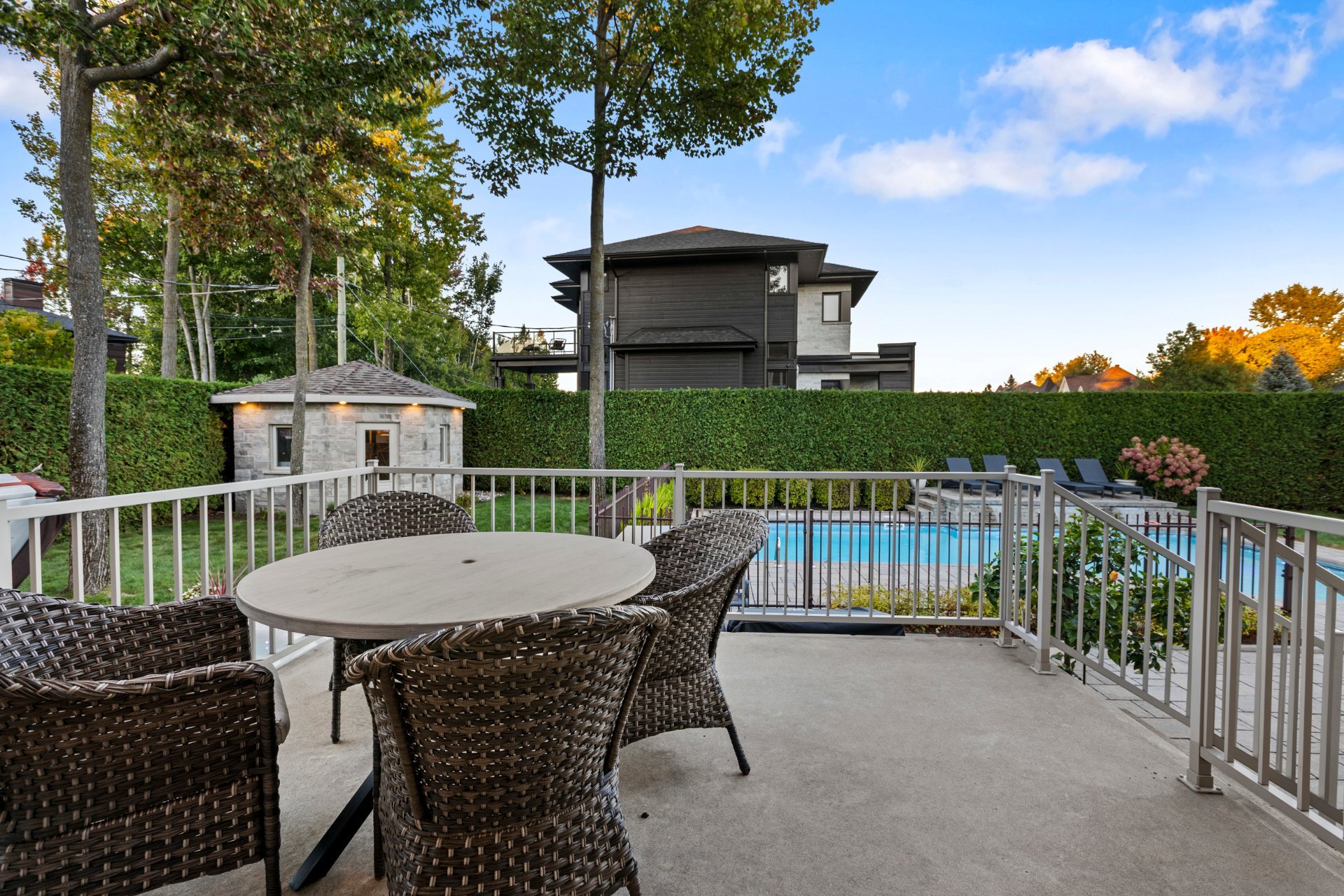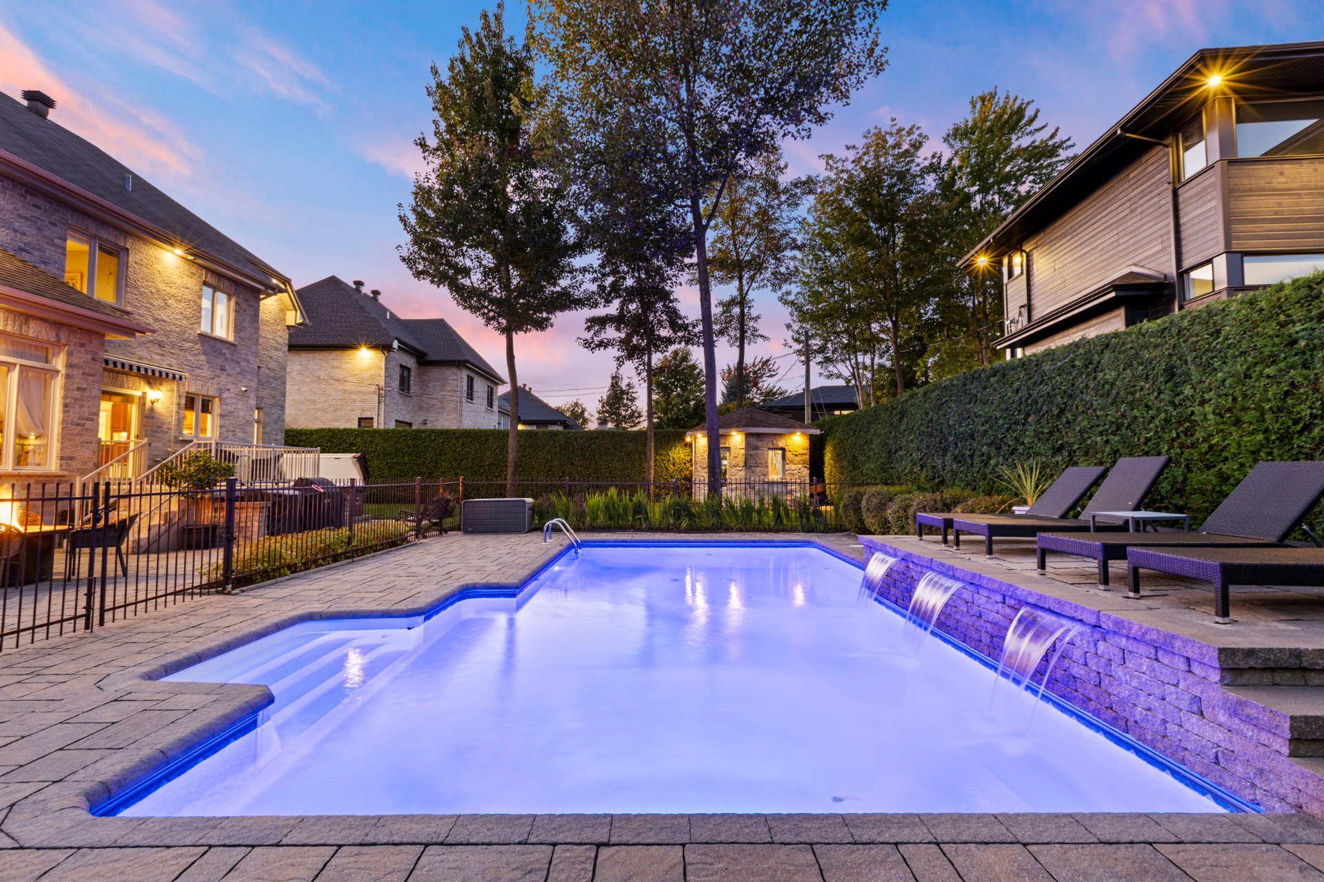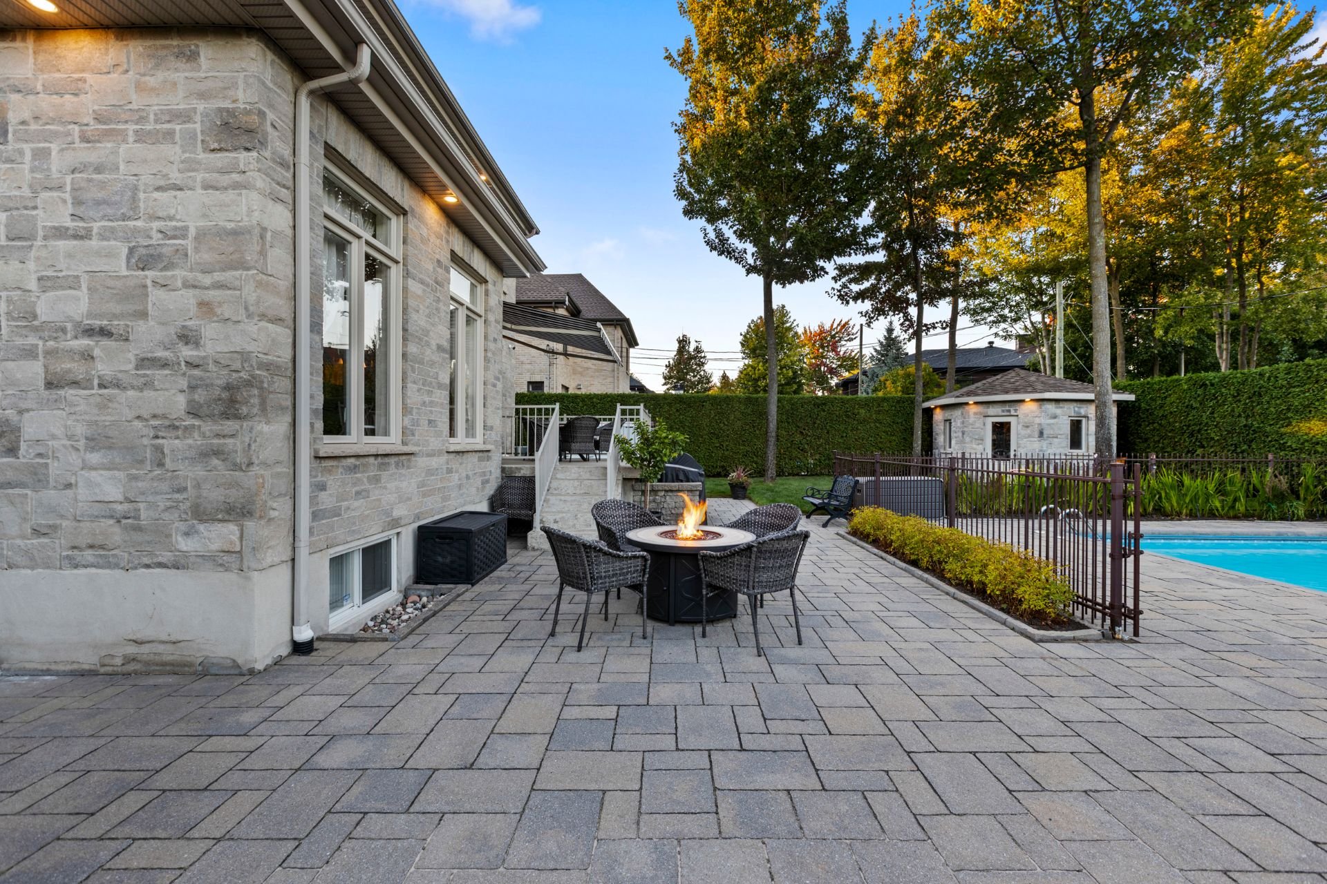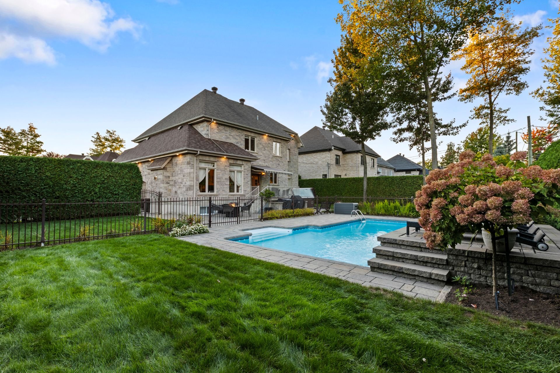 À l'extérieur, un véritable havre de paix vous attend : piscine creusée et chauffée avec cascade d'eau, spa, cour intime entièrement clôturée, cabanon quatre côté de pierre et aménagement paysager signé par des professionnels. Un espace parfait pour la détente, les réceptions et les moments inoubliables en famille ou entre amis.