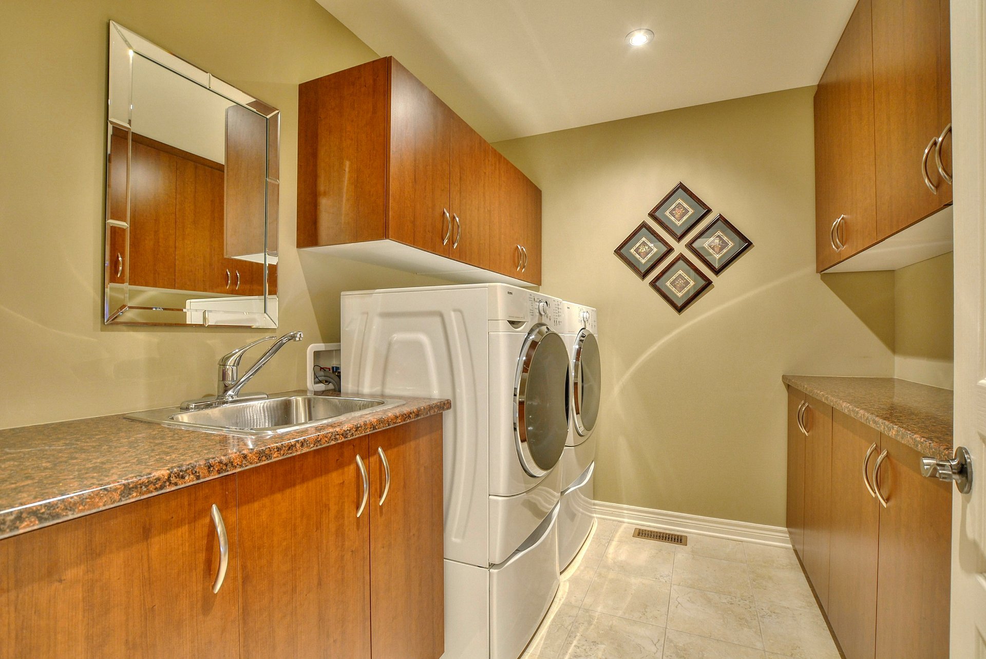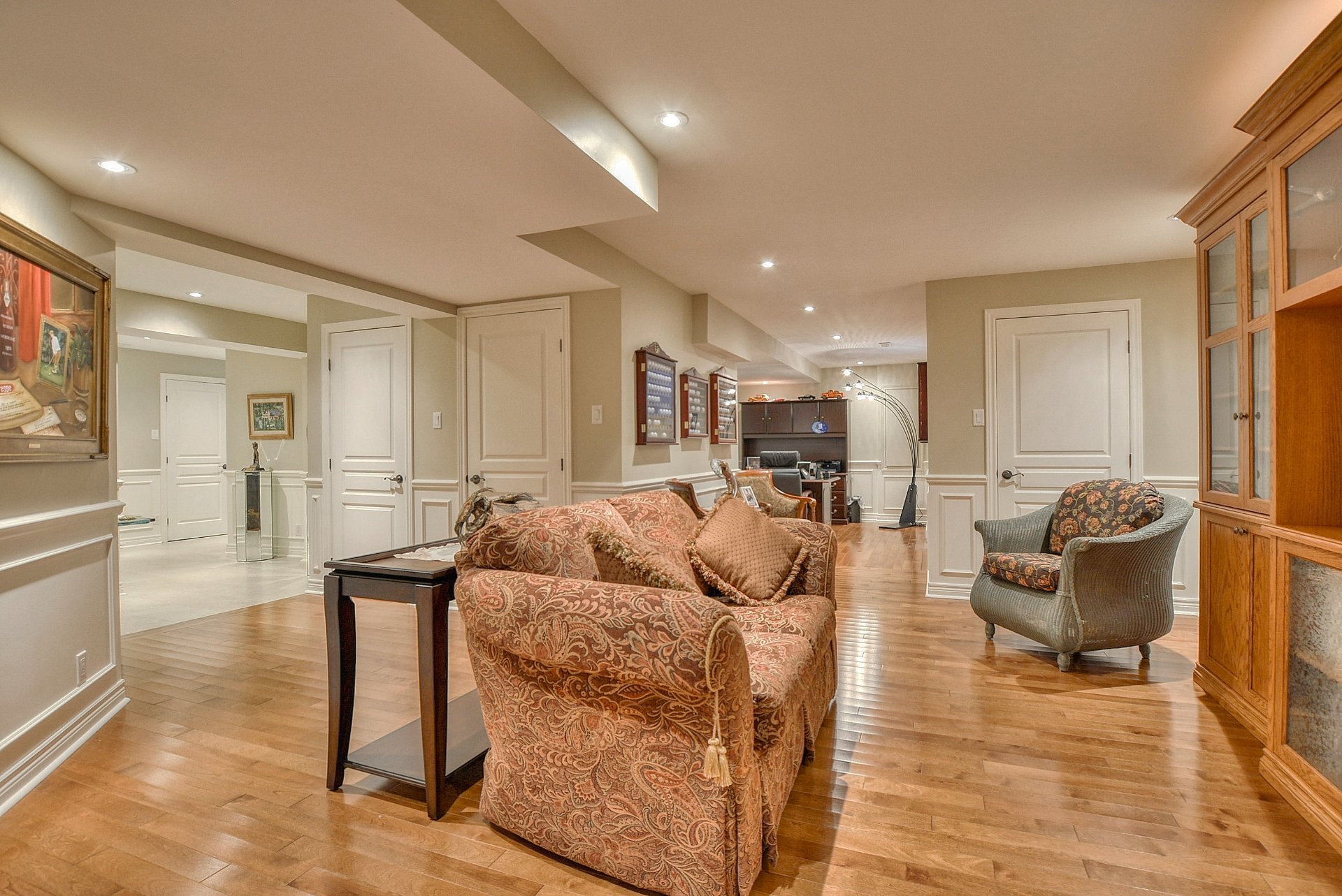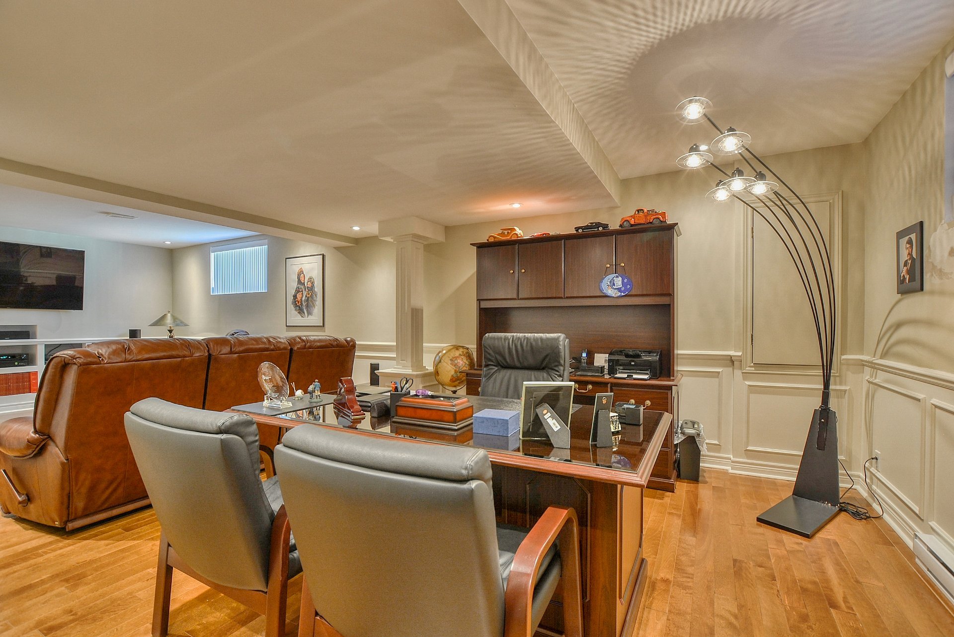 À l'étage, on retrouve quatre chambres spacieuses, toutes dotées de walk-in, ainsi que deux salles de bain complètes et une salle de lavage pratique. Le rez-de-chaussée dispose d'une élégante salle d'eau, tandis que le sous-sol entièrement aménagé ajoute une cinquième chambre, une salle de bain complète, de généreux espaces de rangement et des planchers en bois véritable, sans aucun compromis, aucun plancher flottant, uniquement des matériaux nobles.