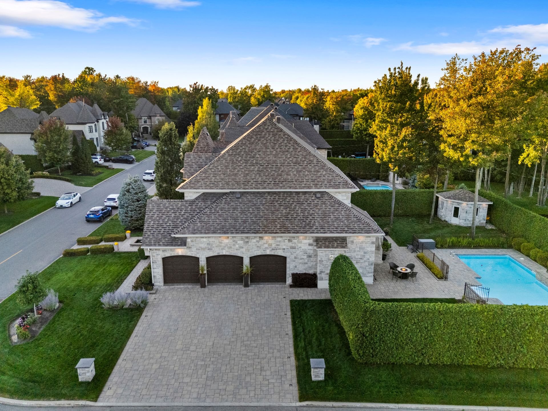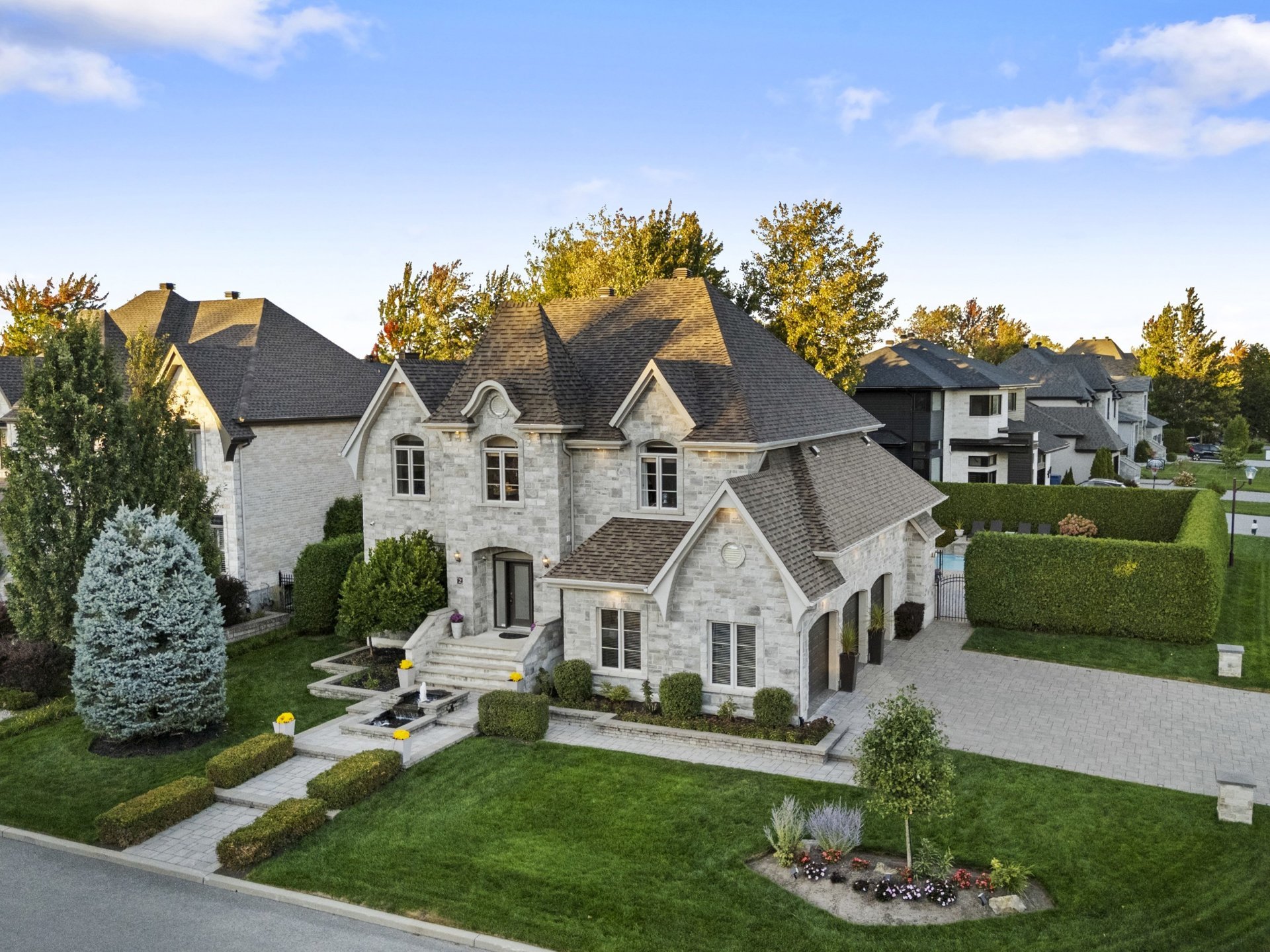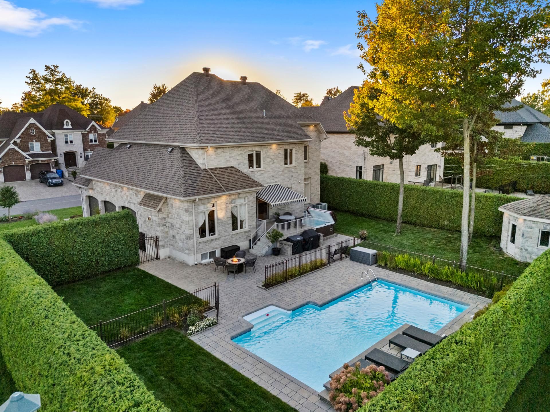 Résidence d'exception construite en 2010 par Habitations Louis-Seize. Maçonnerie quatre façades et garage triple. Plafonds de 9 et 10 pi, cuisine à aire ouverte avec armoires de bois, granit et électros haut de gamme. Quatre chambres à l'étage avec walk-in, deux salles de bain et salle de lavage pratique. Salle d'eau au rez-de-chaussée et cinquième chambre au sous-sol avec salle de bain complète. Cour intime avec piscine creusée chauffée, spa et aménagement paysager professionnel. Prestige, confort et élégance réunis.