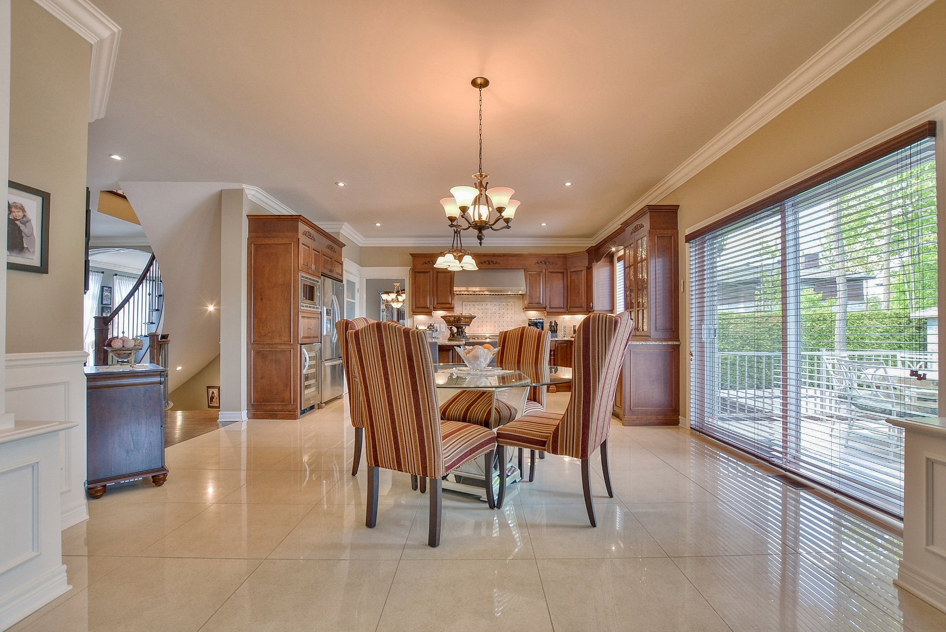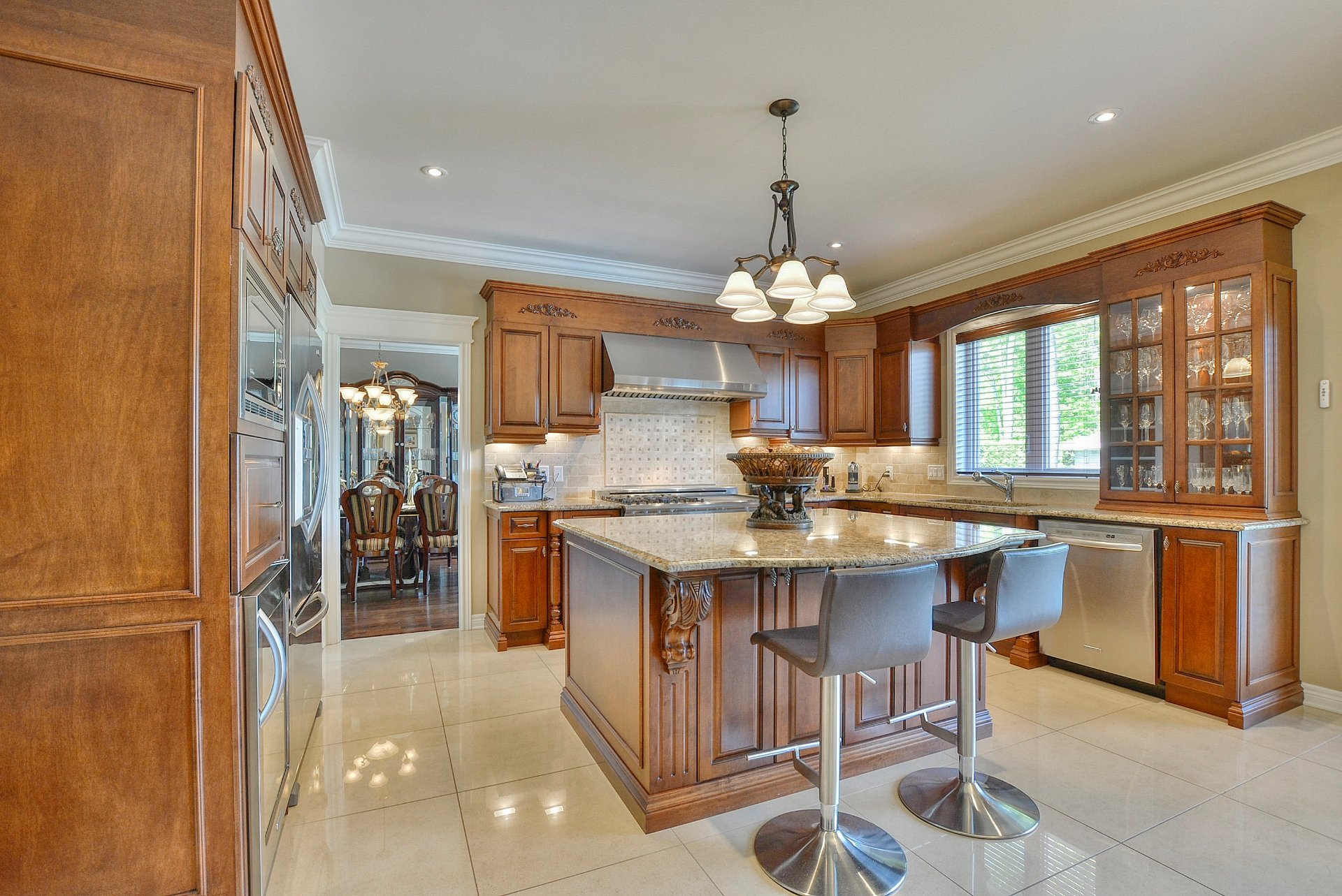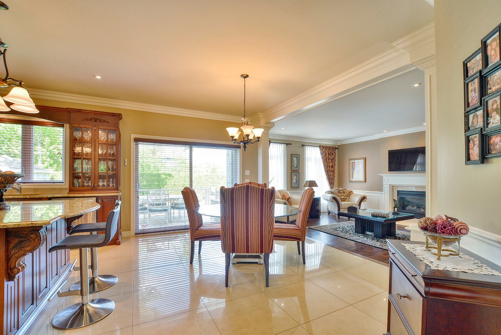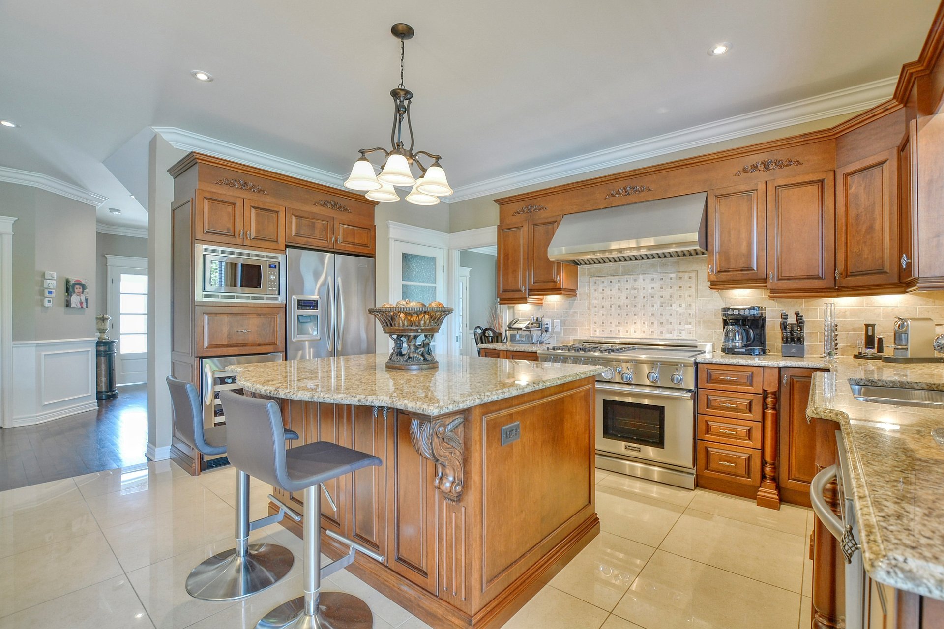 À l'intérieur, les plafonds de 9 et 10 pieds confèrent une atmosphère à la fois élégante et aérienne. La cuisine, véritable coeur de la maison, séduit par sa conception à aire ouverte : armoires de bois, comptoirs de granit, vaste îlot central et électroménagers haut de gamme, conçus pour répondre aux attentes des plus grands chefs.
