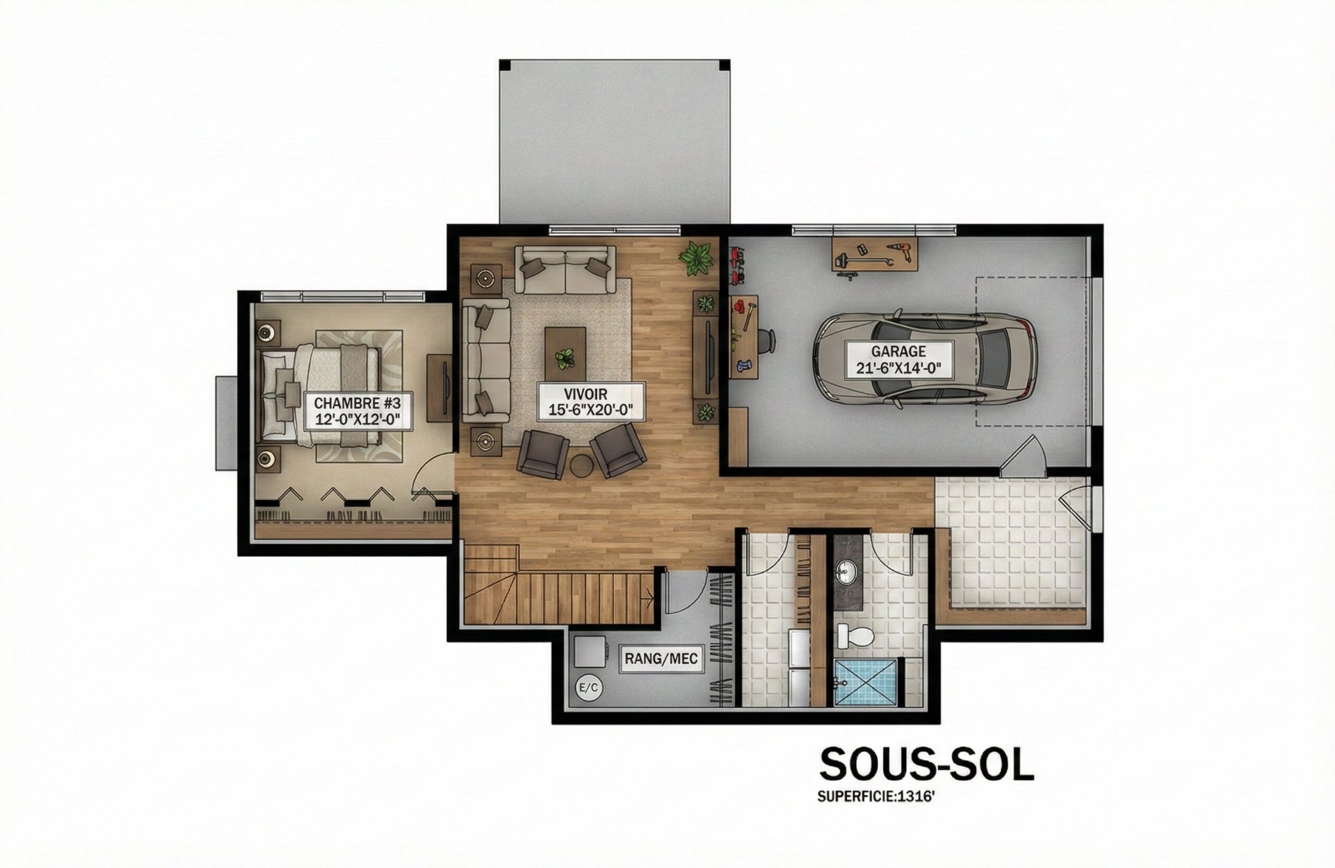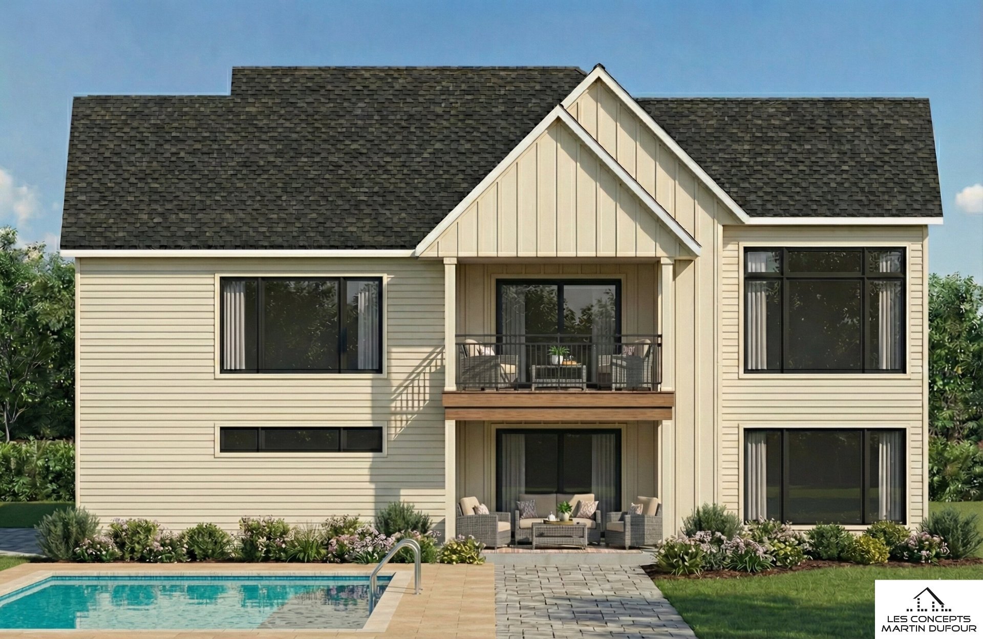DOMAINE DE LA SÉRÉNITÉ | Nichée au coeur du prestigieux Domaine de la Sérénité, cette magnifique résidence à construire offre un cadre de vie où nature, confort et design moderne s'unissent harmonieusement. Conçue pour tirer pleinement parti de son environnement paisible et boisé, elle séduit par son architecture contemporaine, ses matériaux nobles et ses espaces de vie lumineux.