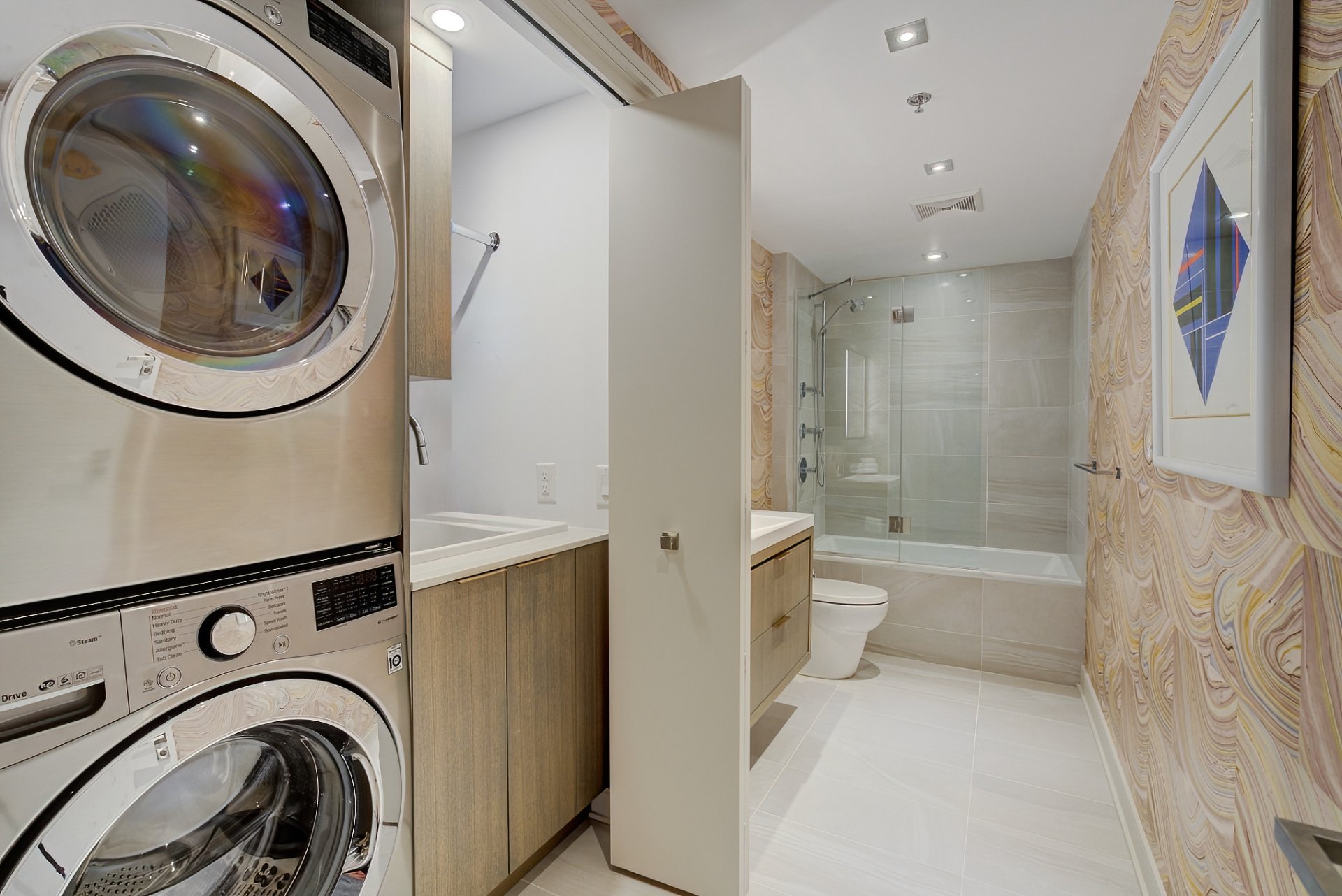 - Tous les appareils électroménagers (cuisinière, réfrigérateur, micro-ondes, lave-vaisselle, lave-linge et sèche-linge) ont été installés et meublés.