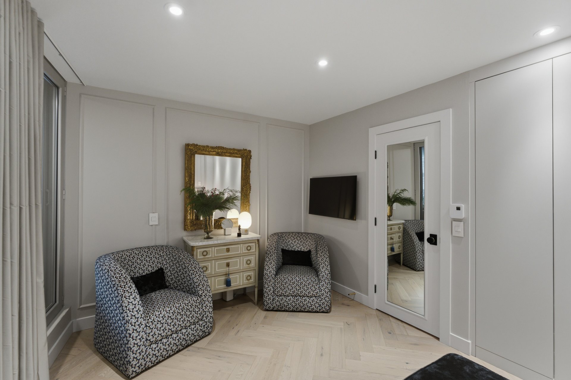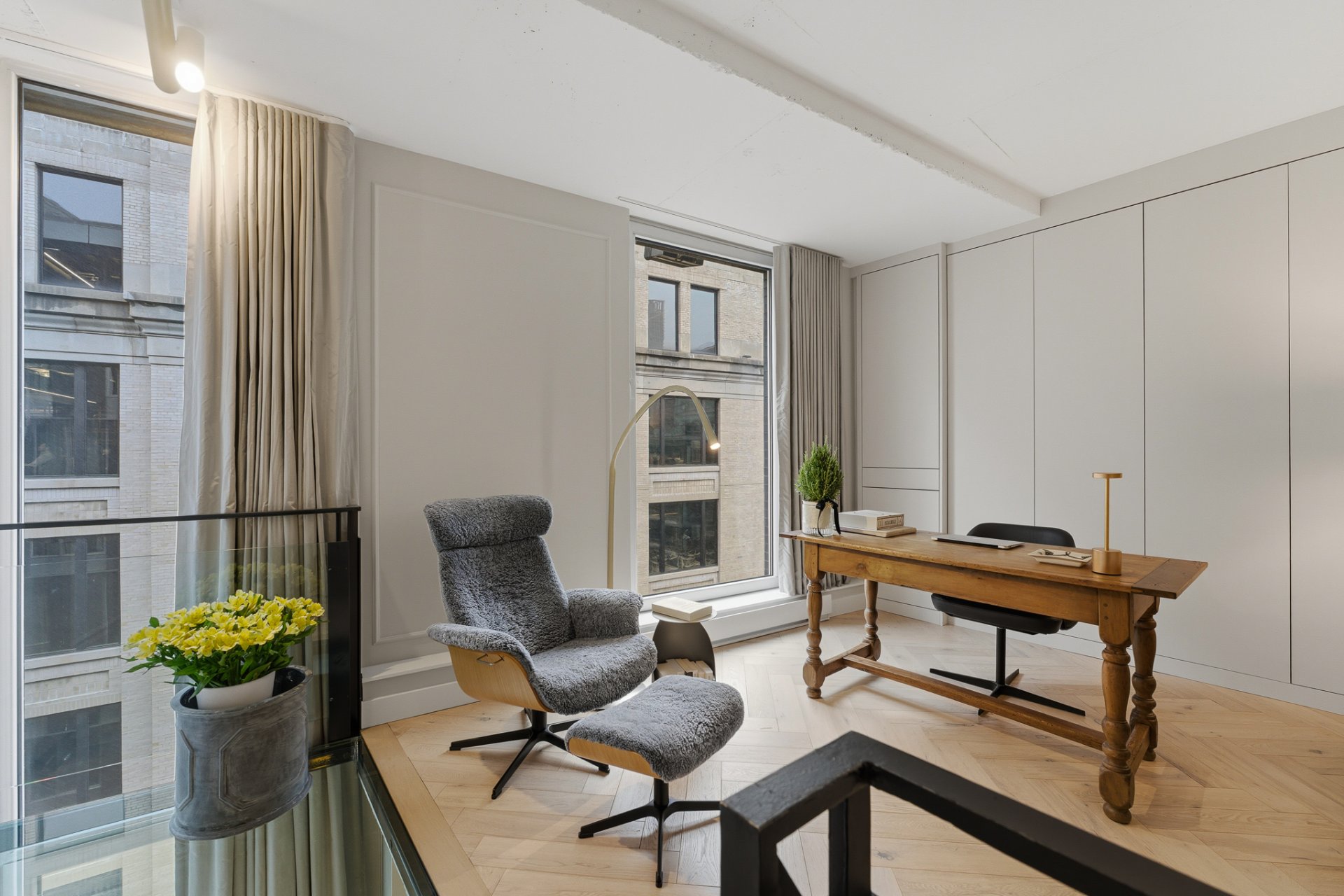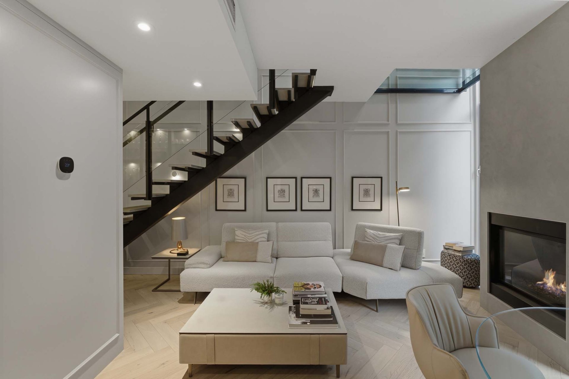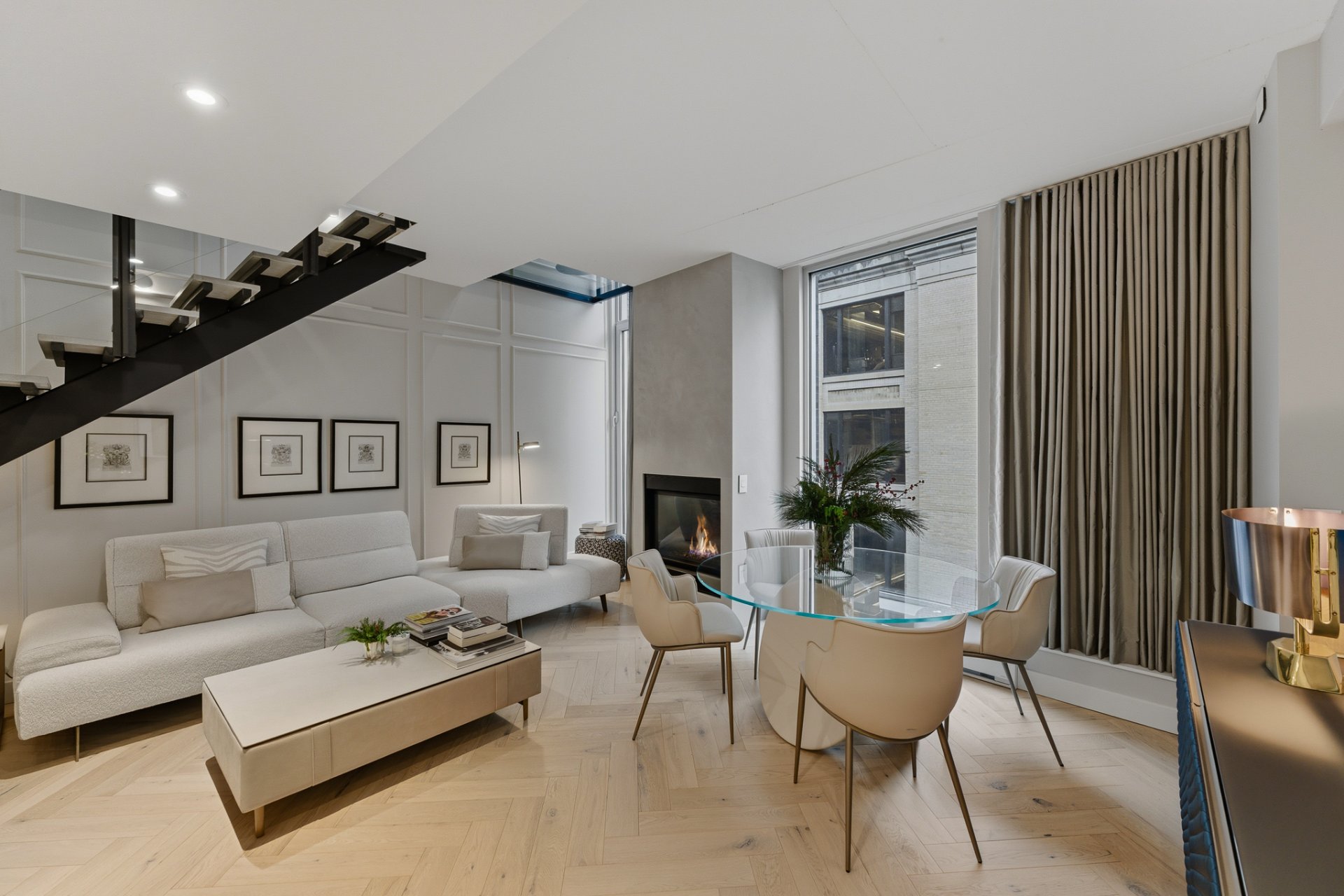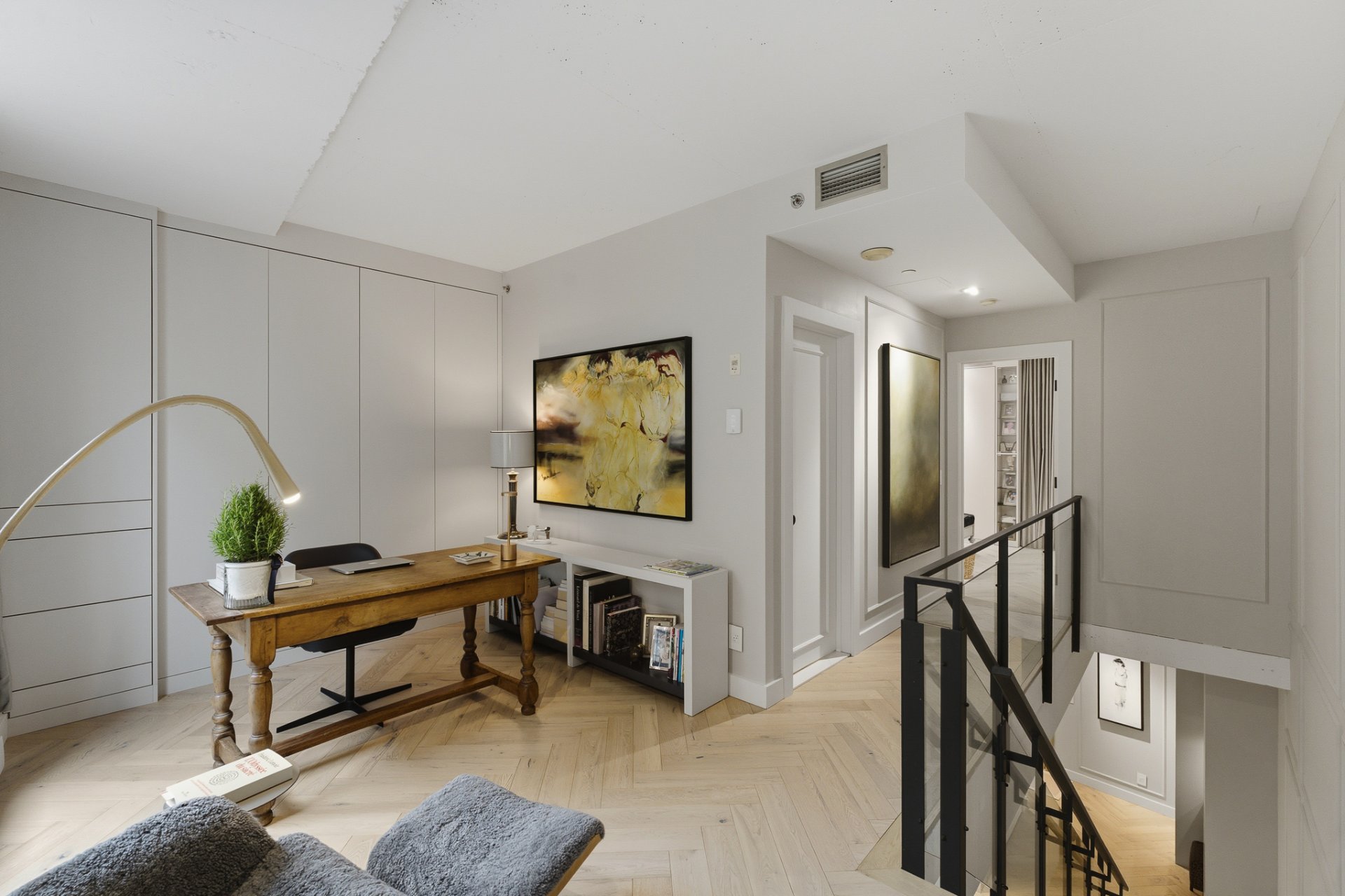 Somptueux condo sur deux étages, transformé par des rénovations extensives réalisées avec des matériaux de tout premier ordre. Planchers en chêne blanc italien, caissons muraux et escalier de verre ajoutant une touche d'élégance. Ample rangement maximisant chaque espace. Cuisine Cuisines Jacob avec électroménagers encastrés, Silestone et robinetterie Brizo. Salle de bain d'hôtel-boutique avec plancher chauffant et douche italienne. Foyer en Dekton. À l'étage, bureau pouvant devenir 2e chambre. Chambre principale côté cour avec accès à une terrasse intime. Propriété clé en main pour acheteurs ne voulant aucun compromis sur la qualité.