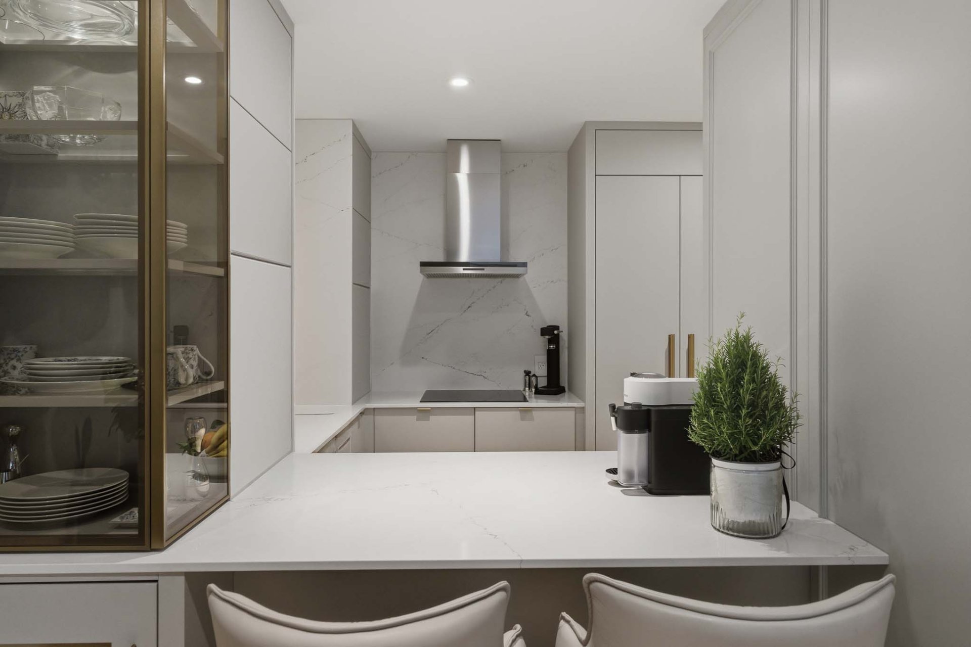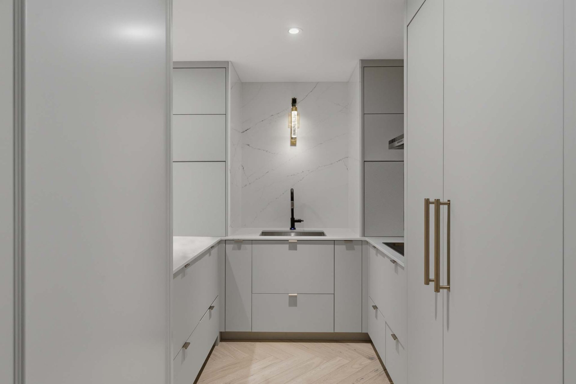 - Réfrigérateur colonne LS et congélateur colonne LS avec panneaux personnalisés comme les armoires, plaque induction Fisher & Paykel et hotte, four Miele vapeur, lave-vaisselle 2 tiroirs de Fisher & Paykel avec panneaux personnalisés comme les armoires, micro-ondes, tous les revêtements de fenêtres (motorisé pour la grande fenêtre double) et fixtures d'éclairage (suspendues, appliques murales).