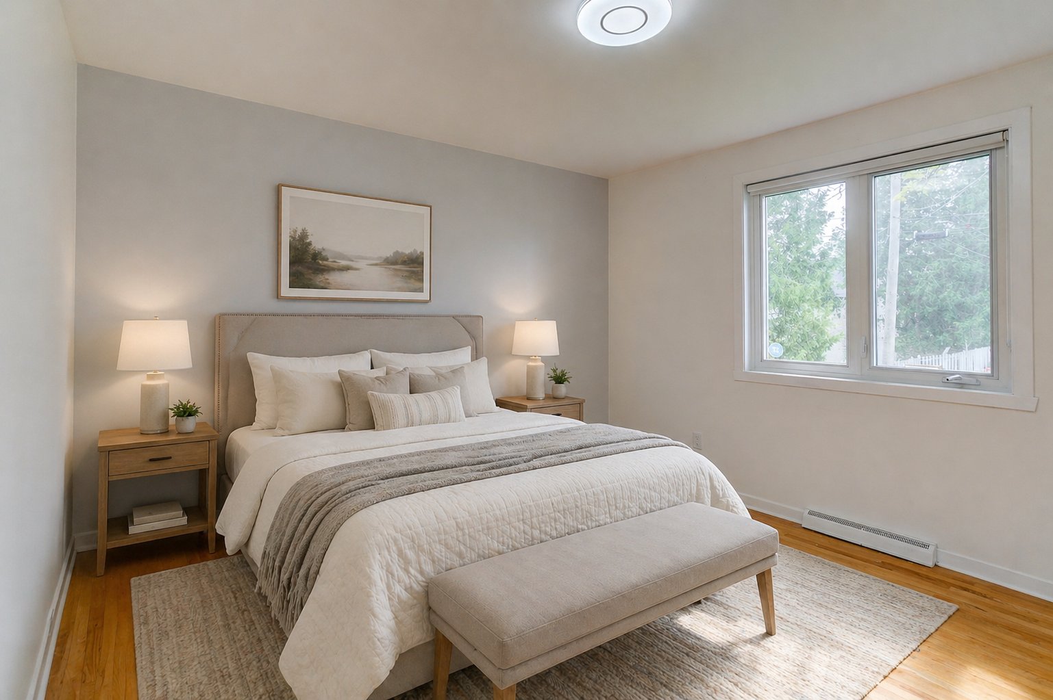 - Salon lumineux avec grandes fenêtres en baie