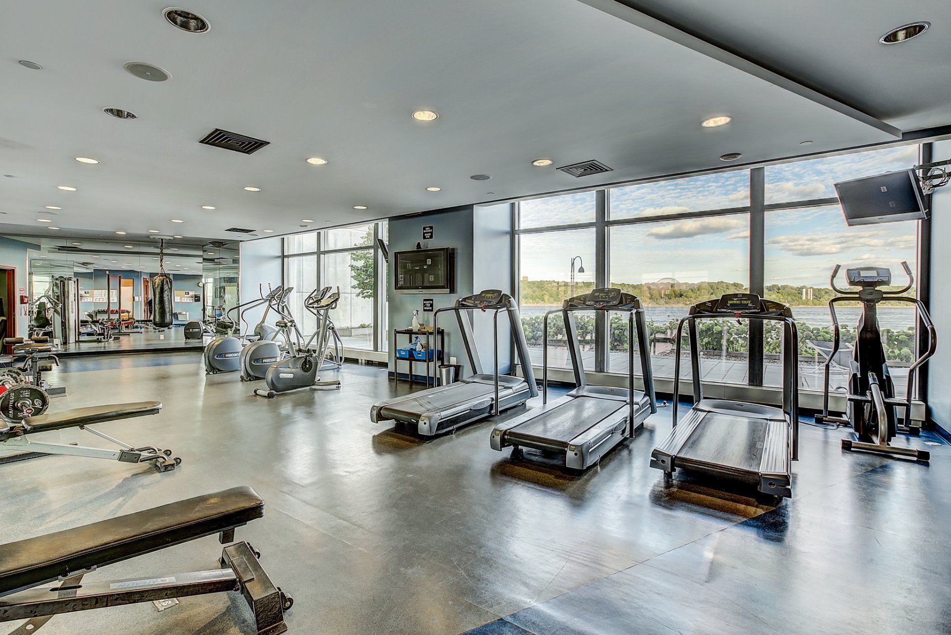 - Salle de sport bien équipée avec une vue sur le fleuve