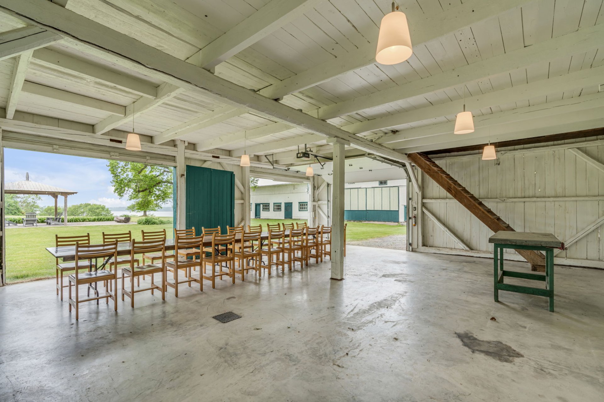 La cour cadrée de bâtiments agricoles anciens d'exception et généreusement arborée, est un havre de paix. On y retrouve de