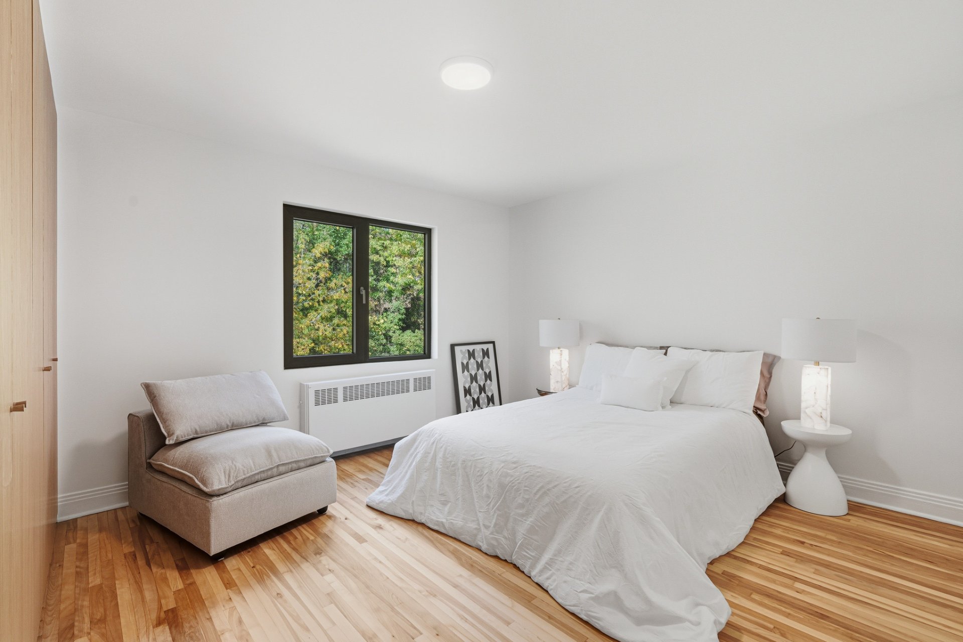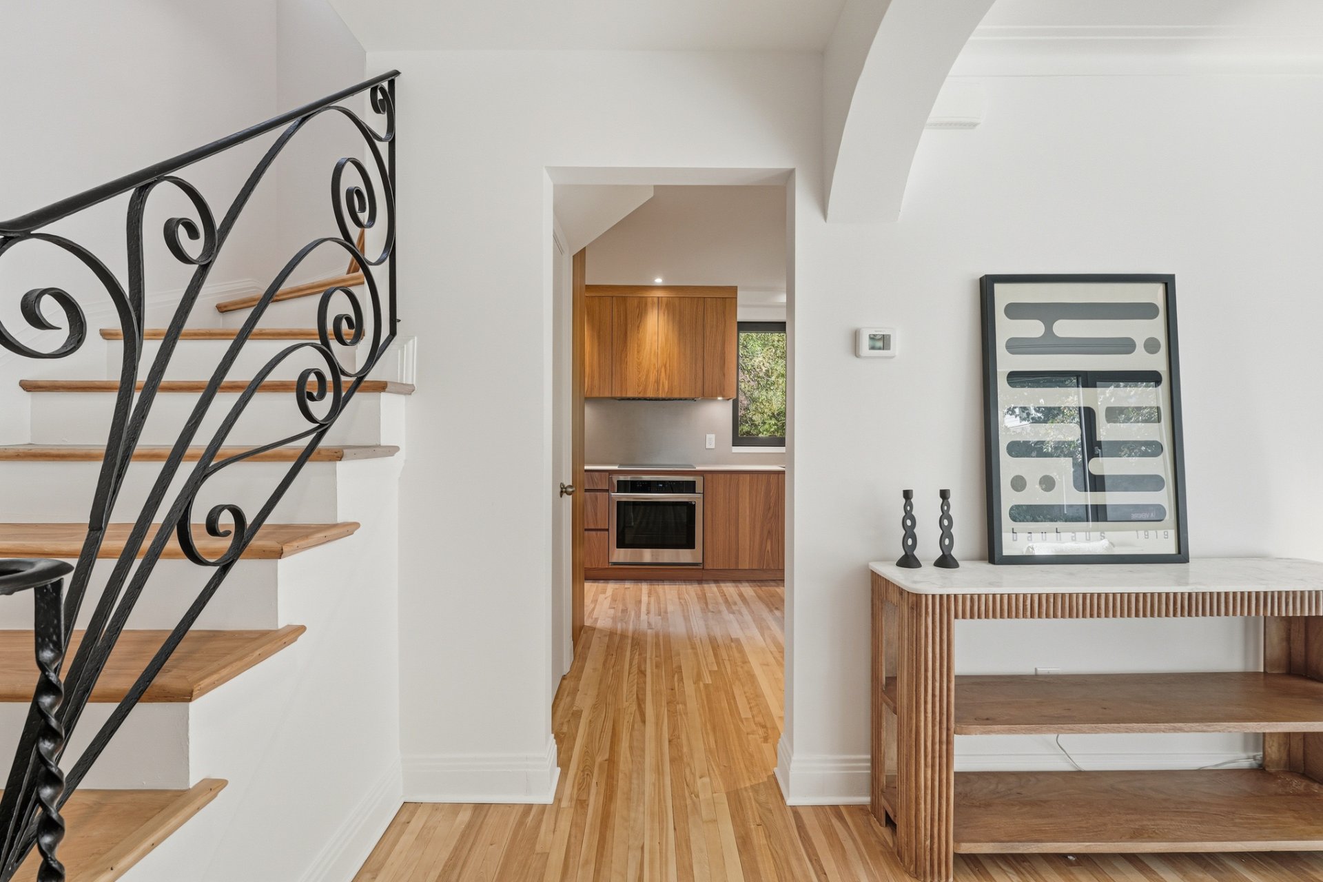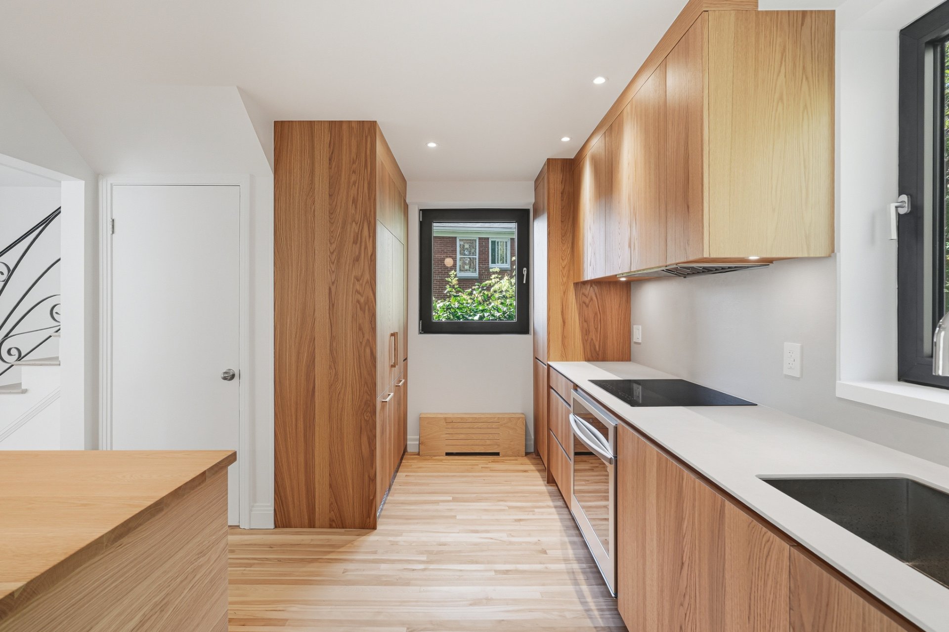 Design épuré dans ce lumineux jumelé magnifiquement rénové avec superbe cour et garage. Cuisine sur mesure en chêne blanc avec électroménagers haut de gamme et comptoir en porcelaine. Chambre principale avec placards intégrés pleine hauteur, 2 chambres secondaires, salle de bain inspirée des hôtels contemporains, avec douche à l'italienne, baignoire et planchers chauffants. Grandes fenêtres en aluminium noir, terrasse de bois donnant sur le jardin bordé par des haies et de beaux arbres matures. Adjacent à Westmount, à quelques pas du métro, des höpitaux, des meilleures écoles et commerces de quartier.