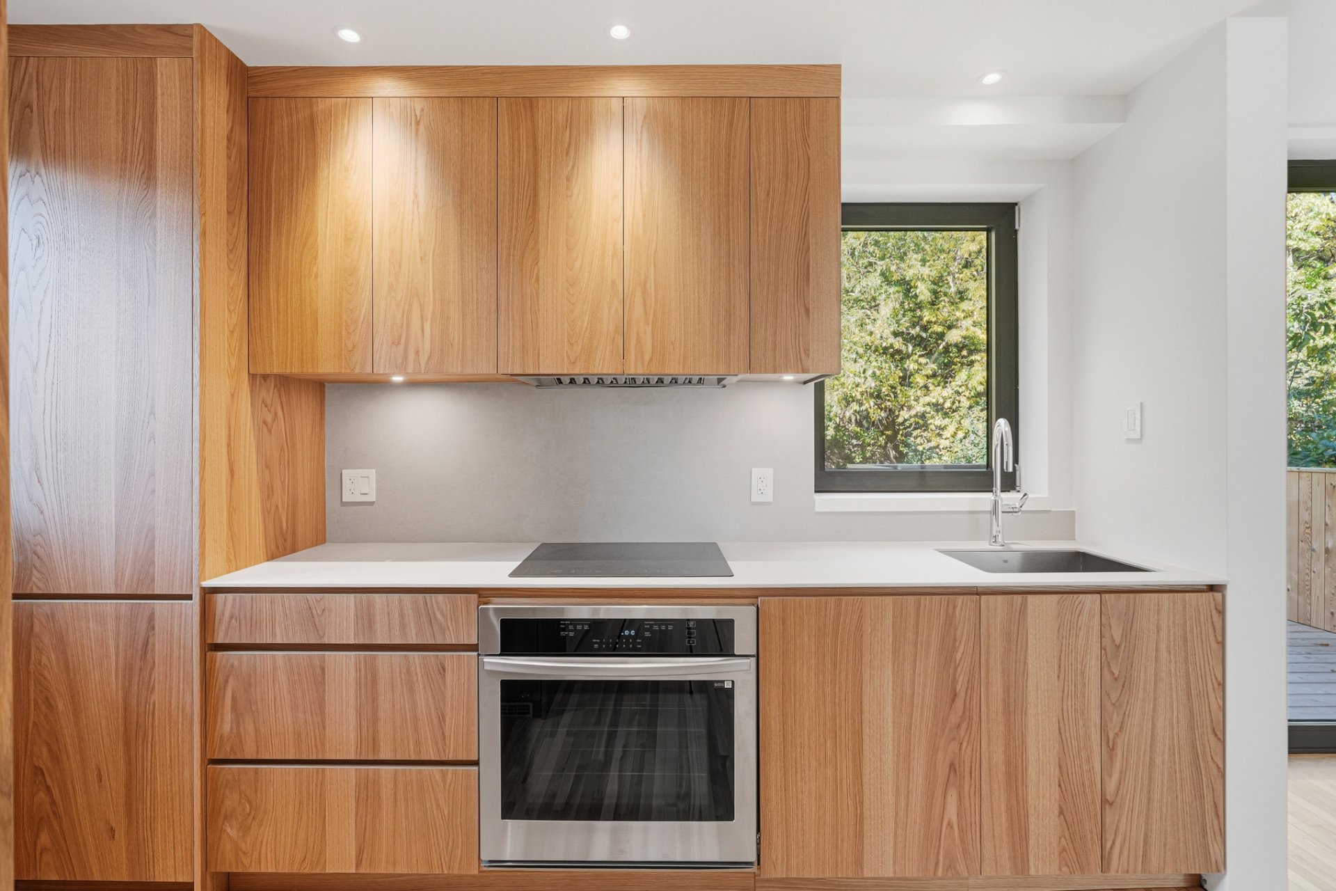 + Cuisine avec îlot, comptoir de porcelaine Ceasarstone, armoires laquées et électroménagers de grande qualité