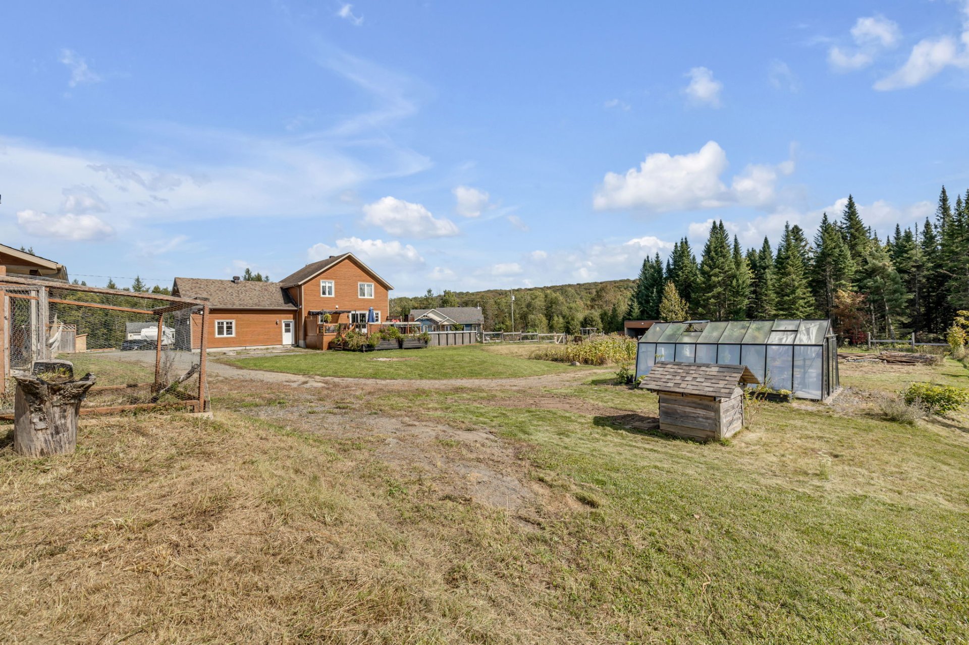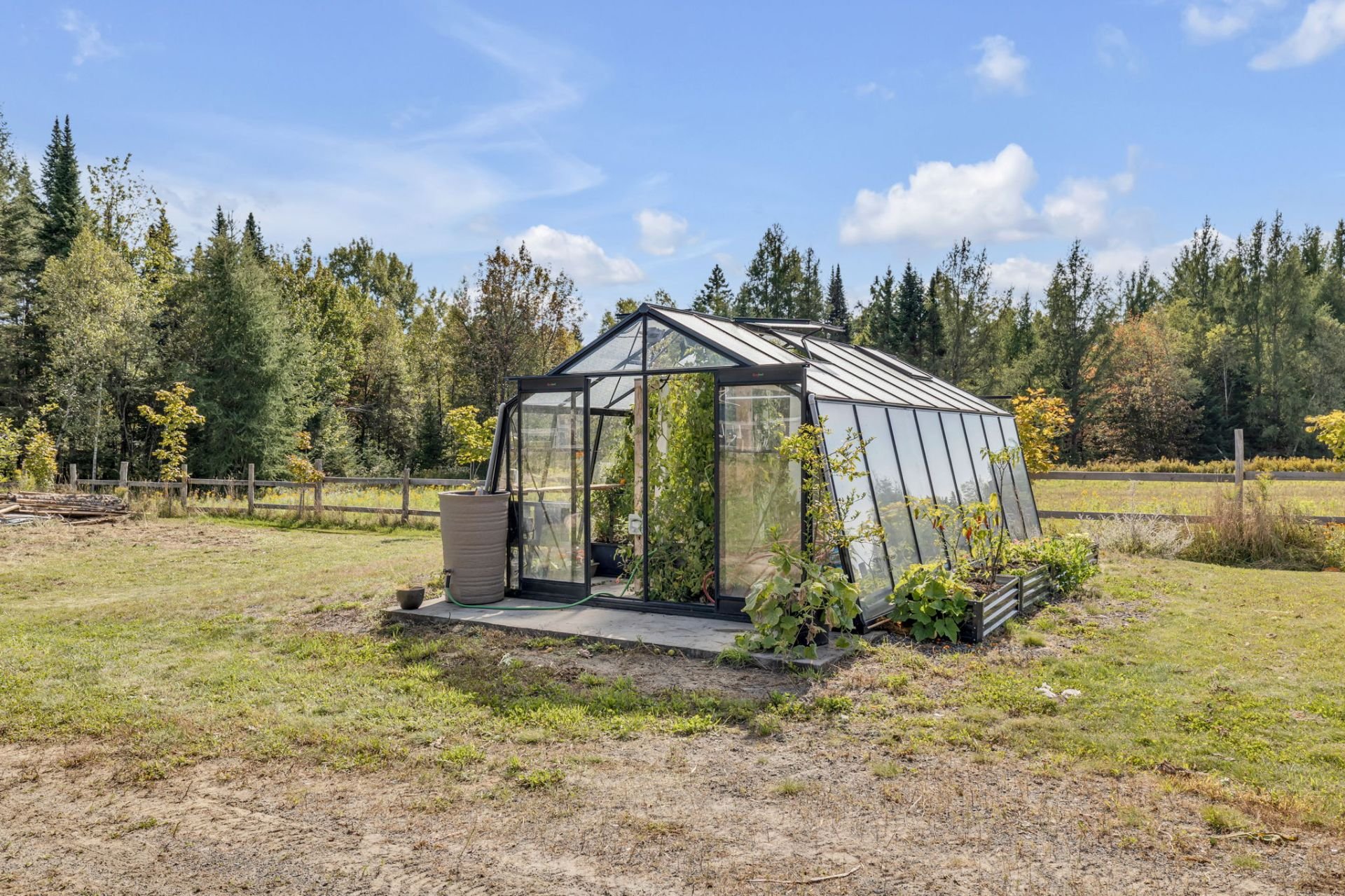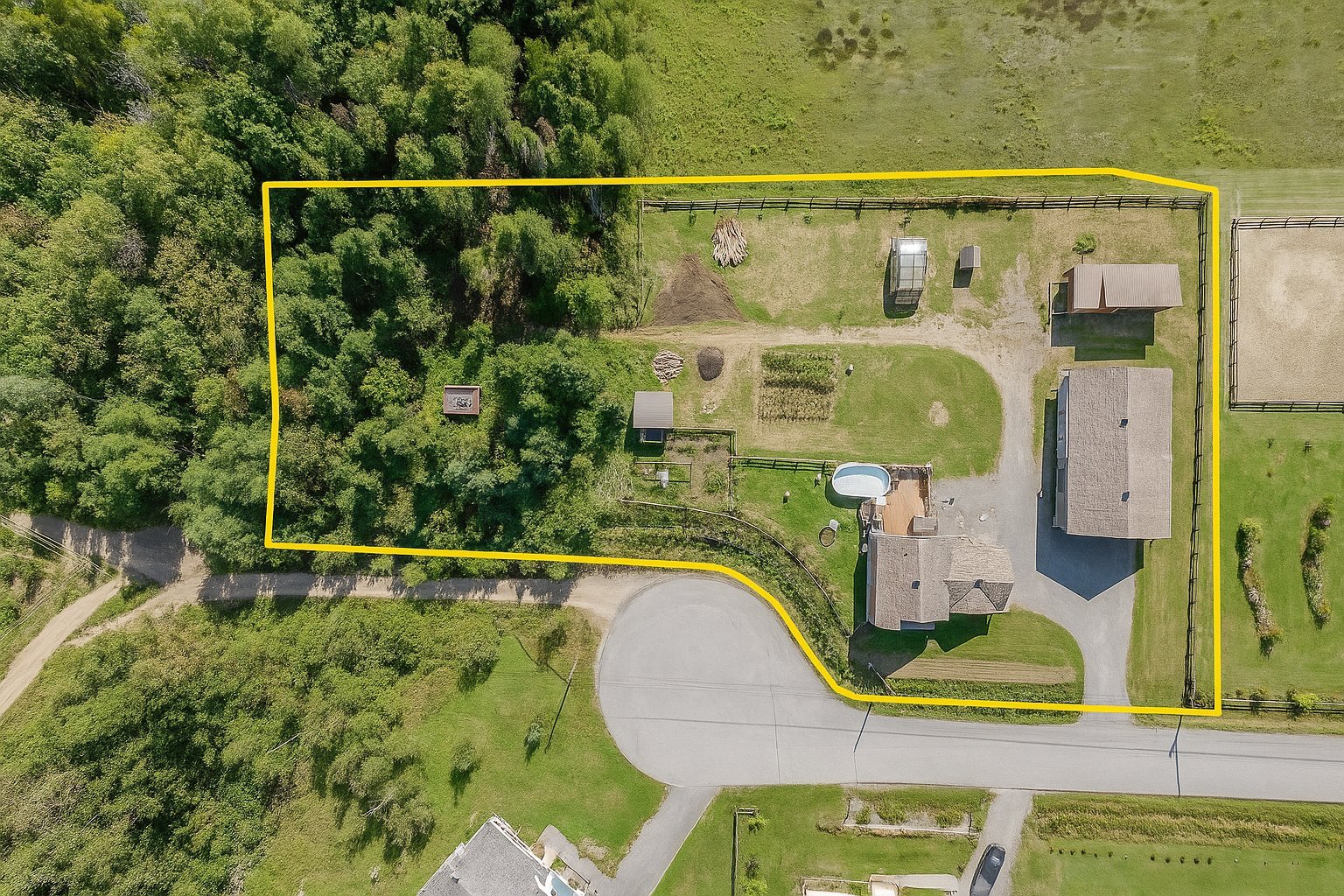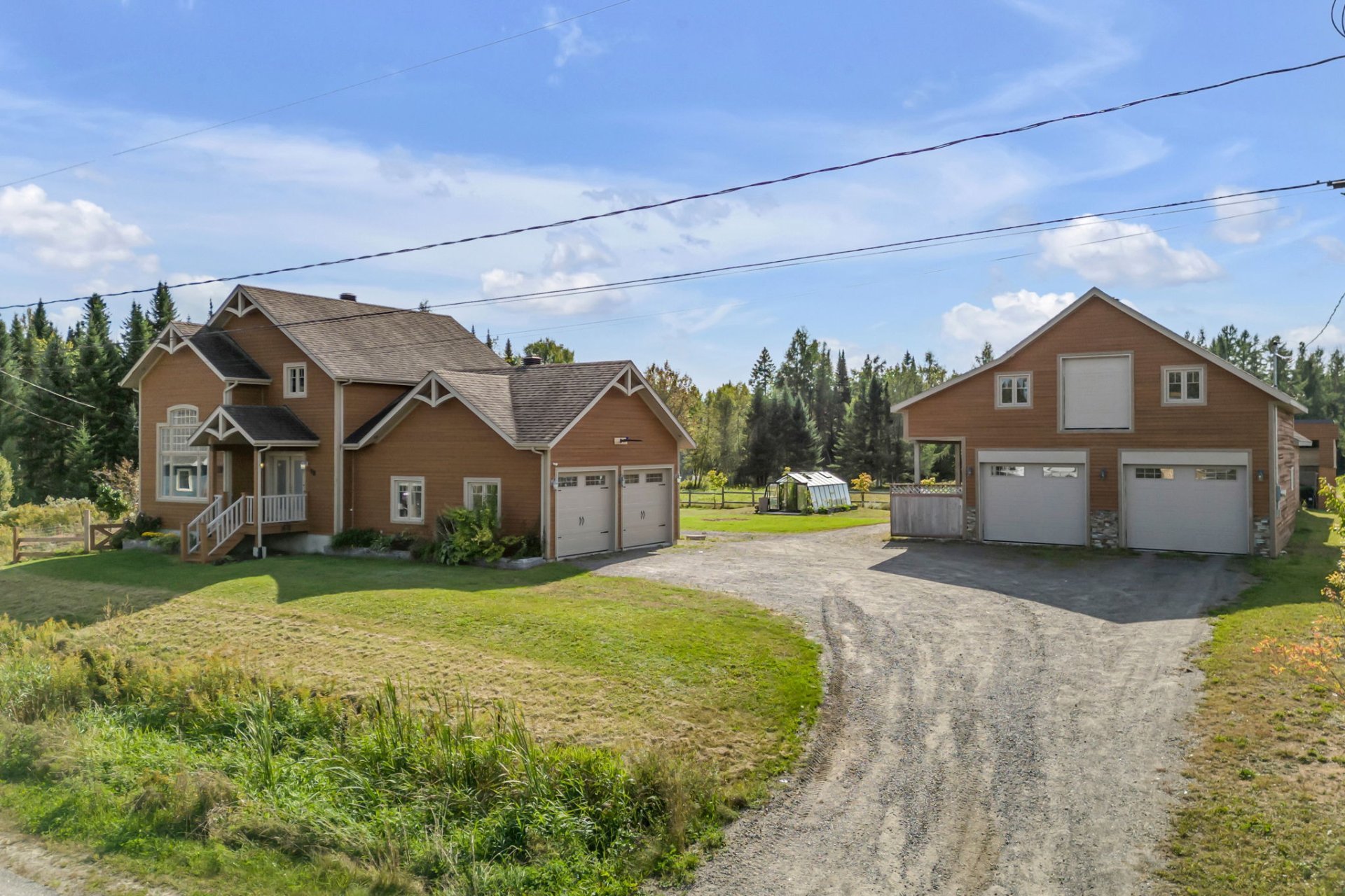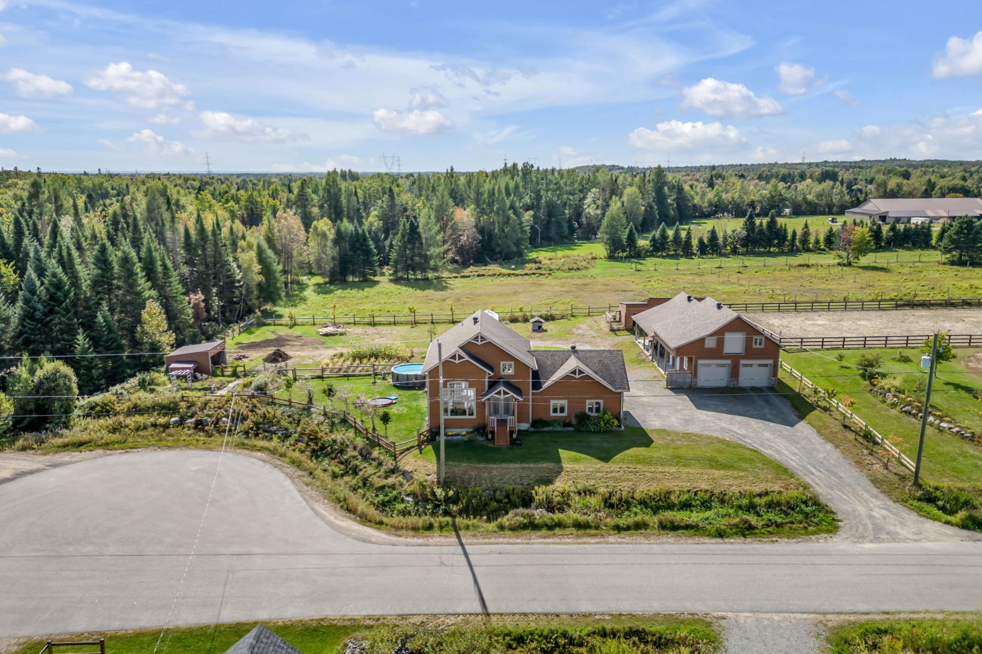 INCLUSIONS; Pôles à rideaux, rideaux, stores, luminaires fixes, réfrigérateur Samsung 2019, réfrigérateur Maytag 2016, Micro-onde Panasonic, cuisinière Samsung, lave-vaisselle GE 2022, laveuse et sécheuse GE du RDC, Laveuse LG et sécheuse GE du sous-sol, chauffe serviette mural de la SDB du RDC, aspirateur central et ses accessoires, tablettes (SDB au RDC, cuisine, salon + celles à chats, chambre 2, garage attaché), meuble noir du corridor à l'étage, moteurs des 4 portes de garage, piscine hors terre et ses accessoires, unités d'appareils de chauffage suspendu à air pulsé du garage détaché et de l'écurie, serre, meuble style établi dans l'écurie, gratte-chemin, deux sections de clôtures galvanisées, auvent.