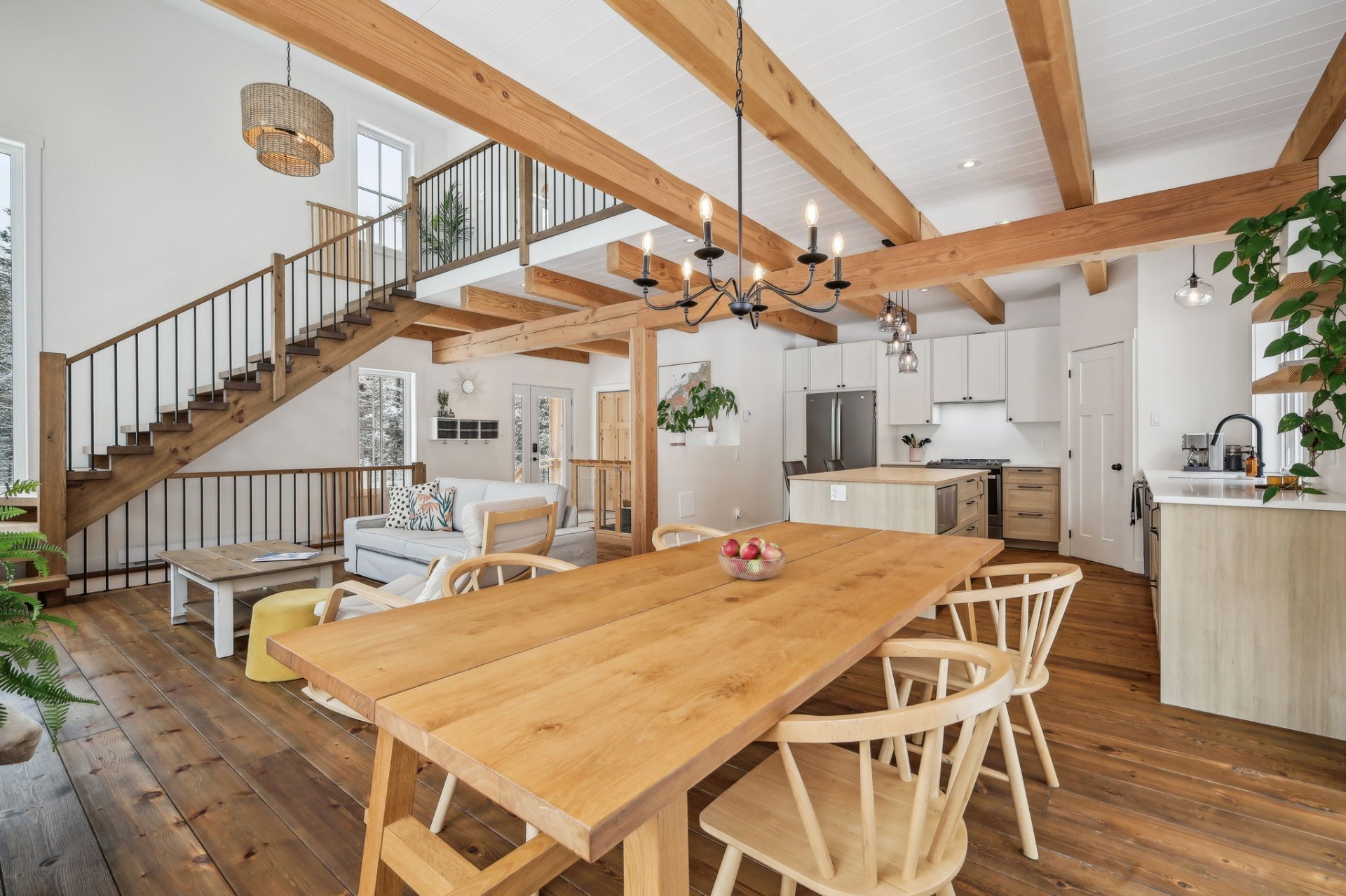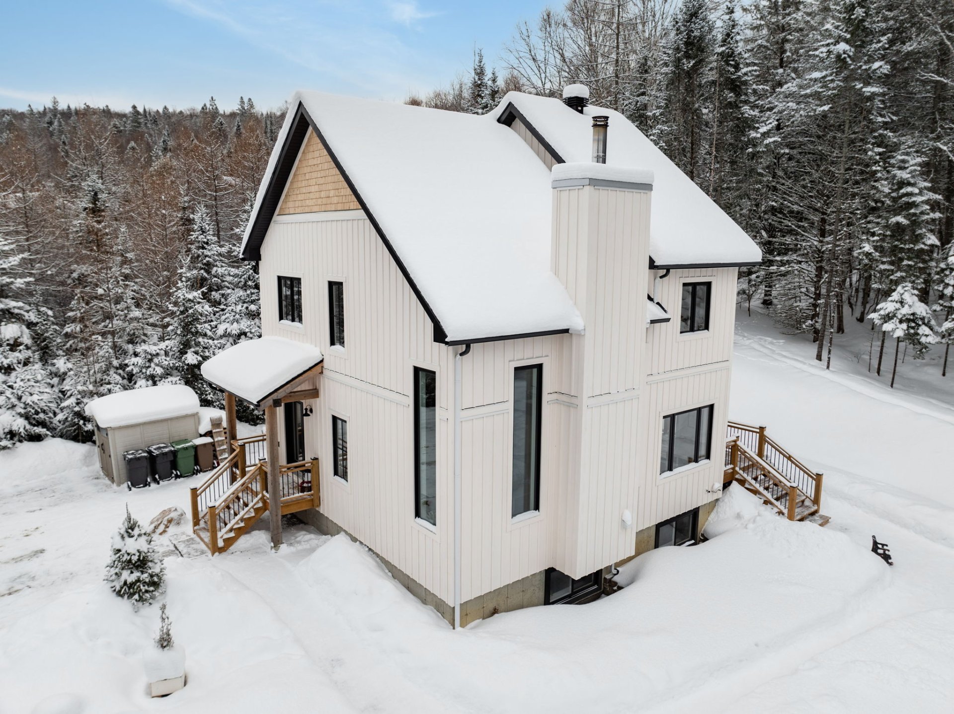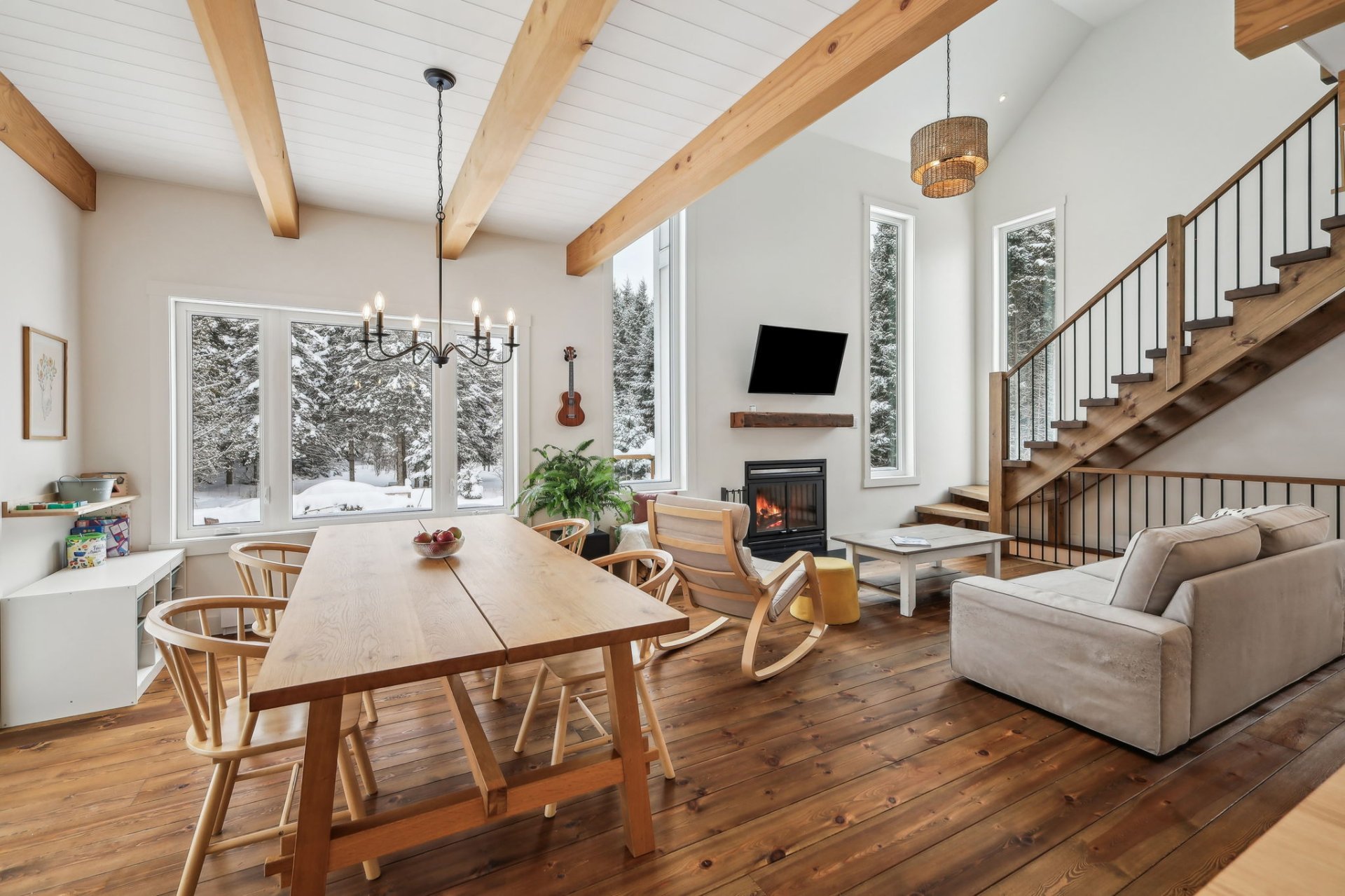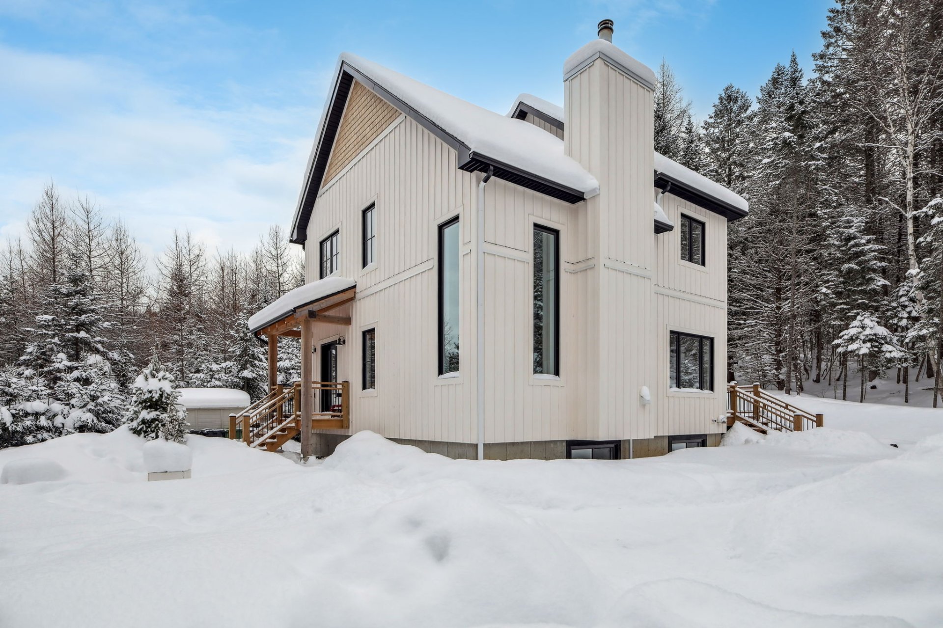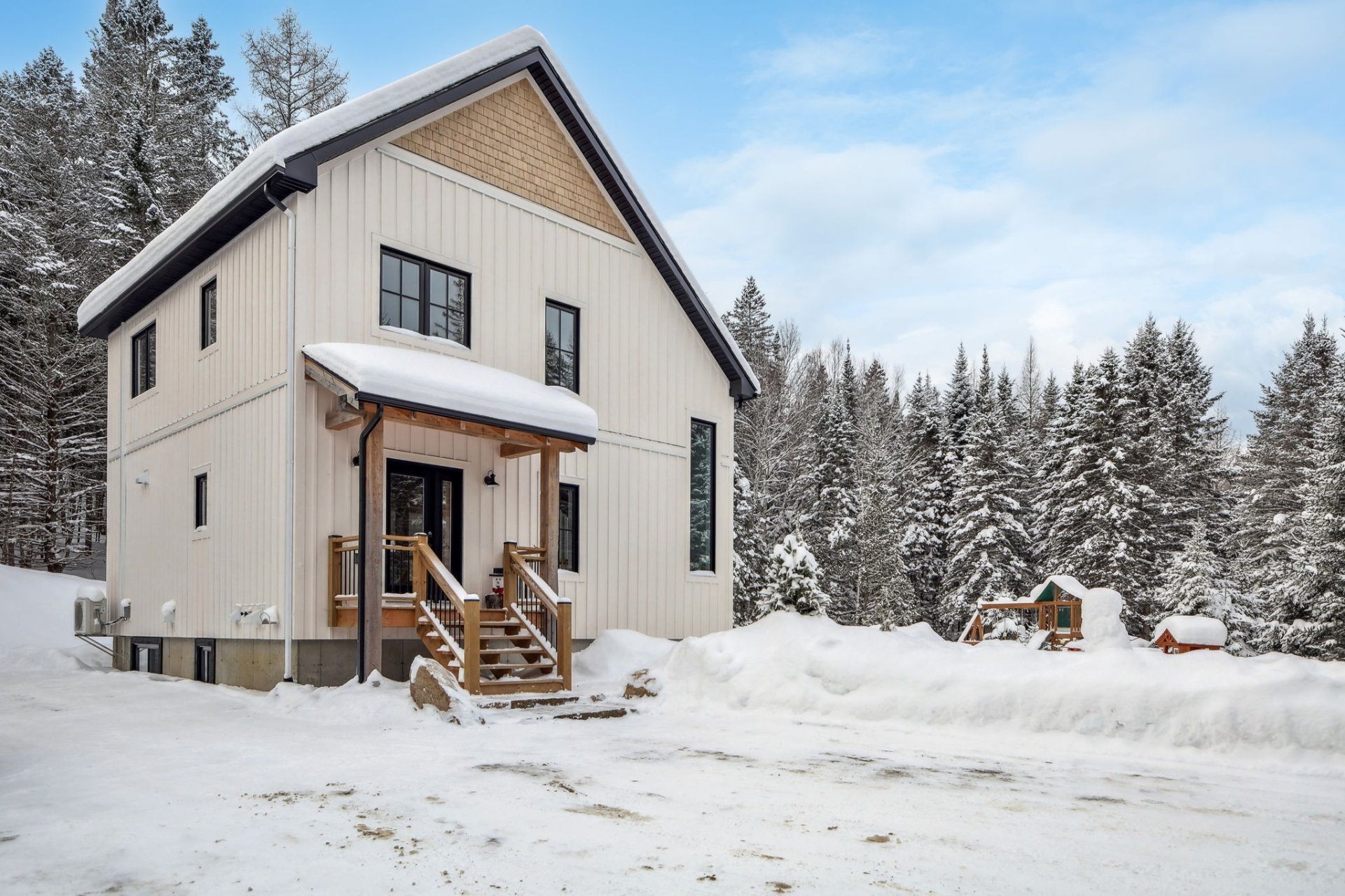 Disponible à partir du 1 Septembre 2025; Charmante et chaleureuse à souhait, cette maison de style scandinave construite en 2022 est idéale pour profiter d'un cadre de vie exceptionnel. Dès votre arrivée, vous serez séduit par les plafonds cathédrale, les poutres en bois apparentes et la généreuse fenestration qui inonde les espaces de lumière naturelle tout au long de la journée. En plus du foyer, la propriété offre un grand hall d'entrée, un garde-manger pratique, une chute à linge ainsi qu'une vaste salle familiale insonorisée, parfaite pour le télétravail ou les moments en famille.