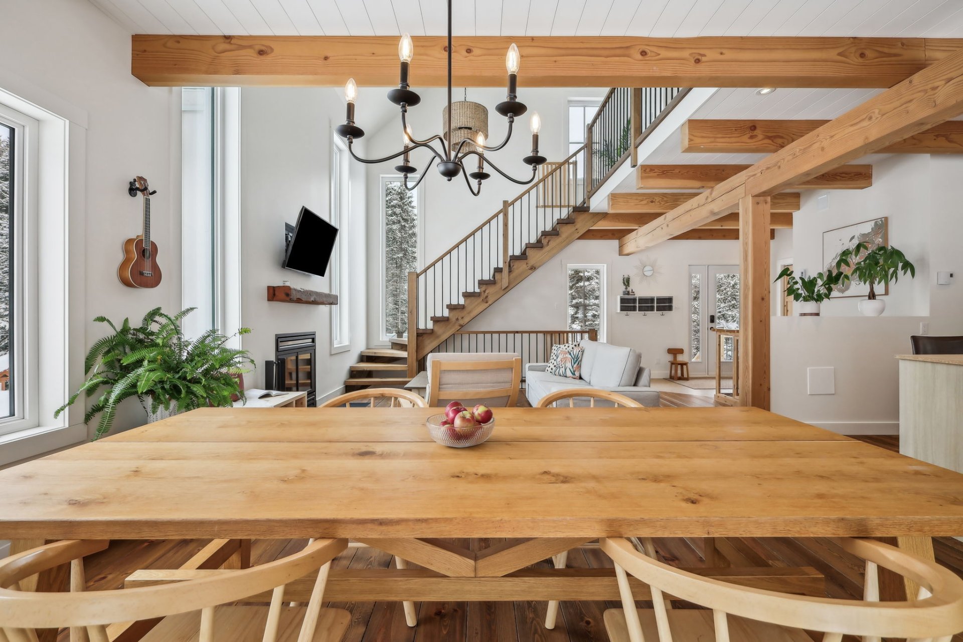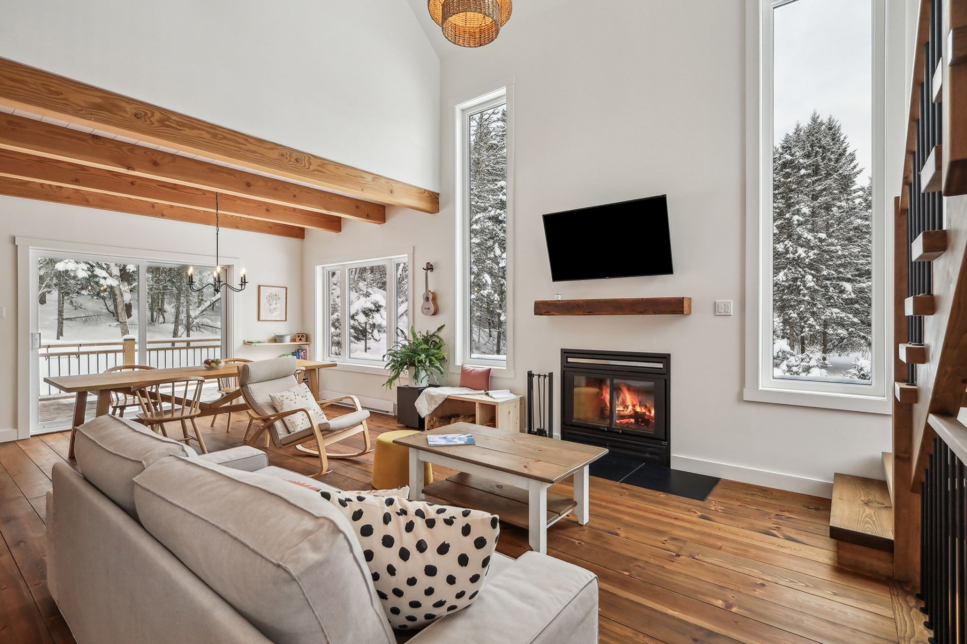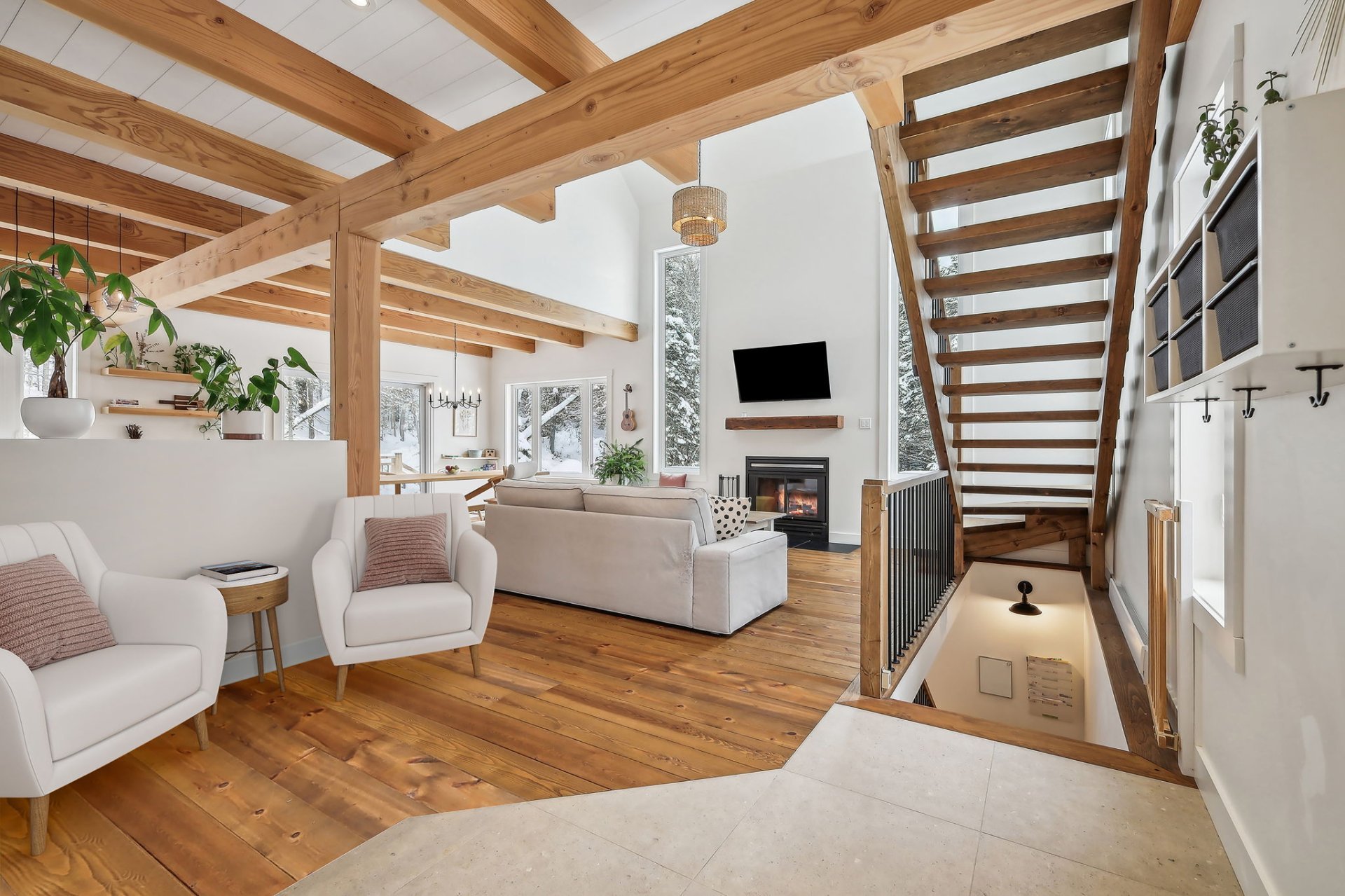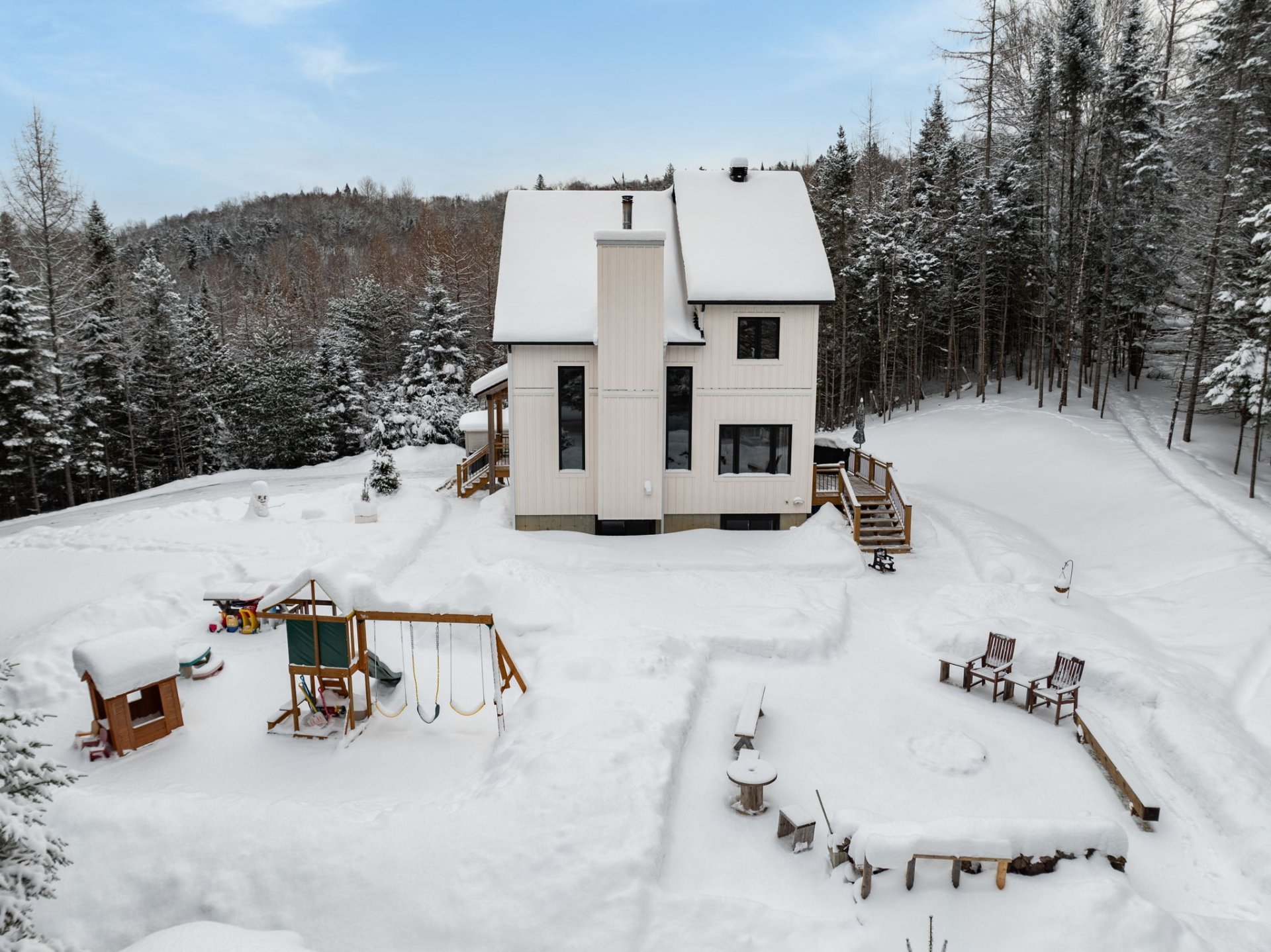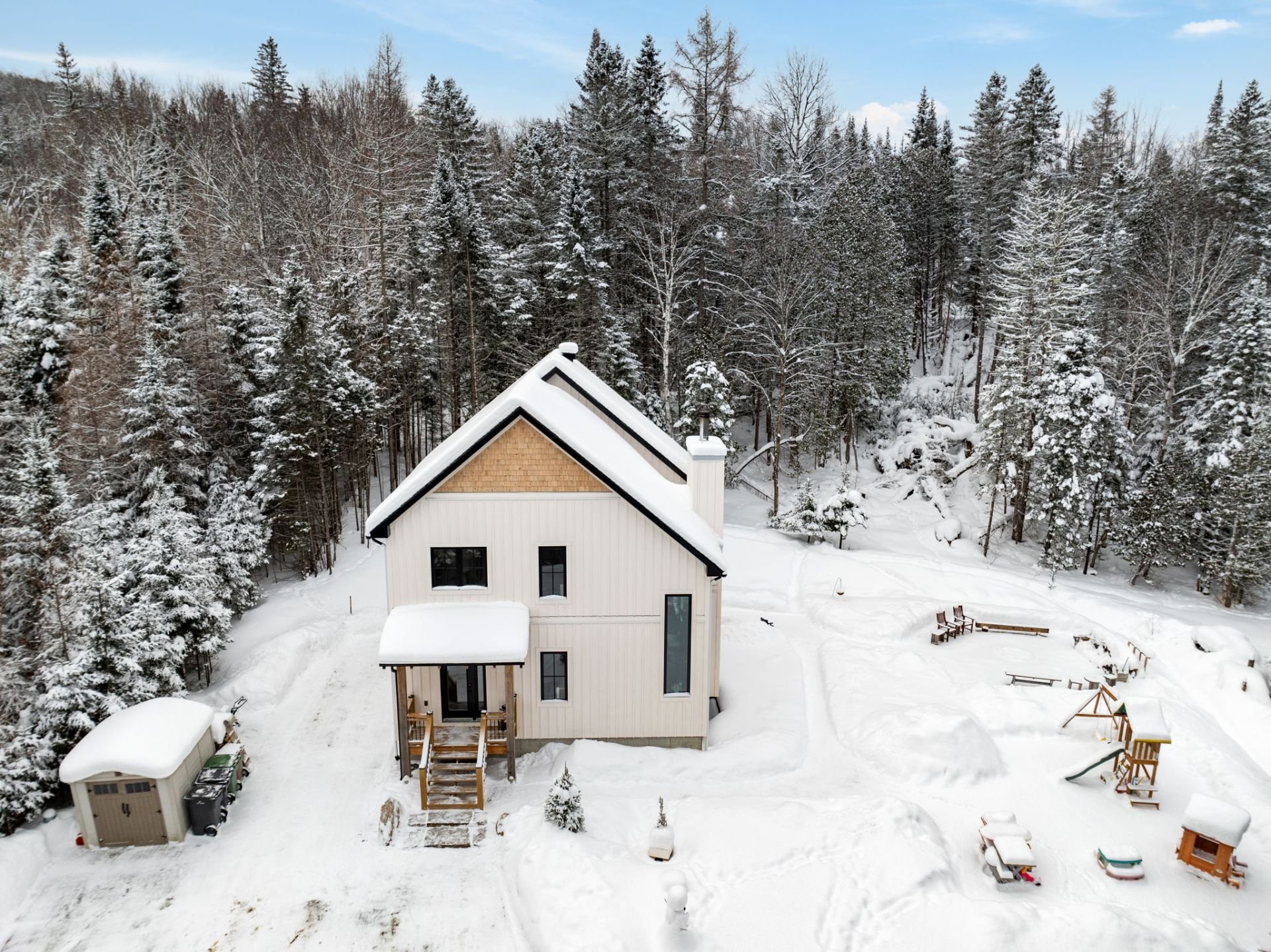 Disponible à partir du 1 Septembre 2025; Charmante et chaleureuse à souhait, cette maison de style scandinave construite en 2022 est idéale pour profiter d'un cadre de vie exceptionnel. Dès votre arrivée, vous serez séduit par les plafonds cathédrale, les poutres en bois apparentes et la généreuse fenestration qui inonde les espaces de lumière naturelle tout au long de la journée. En plus du foyer, la propriété offre un grand hall d'entrée, un garde-manger pratique, une chute à linge ainsi qu'une vaste salle familiale insonorisée, parfaite pour le télétravail ou les moments en famille.