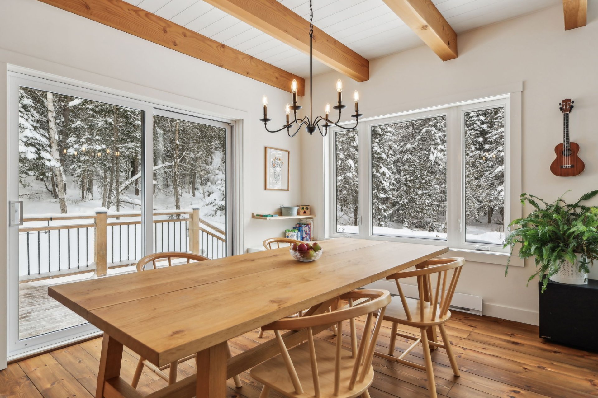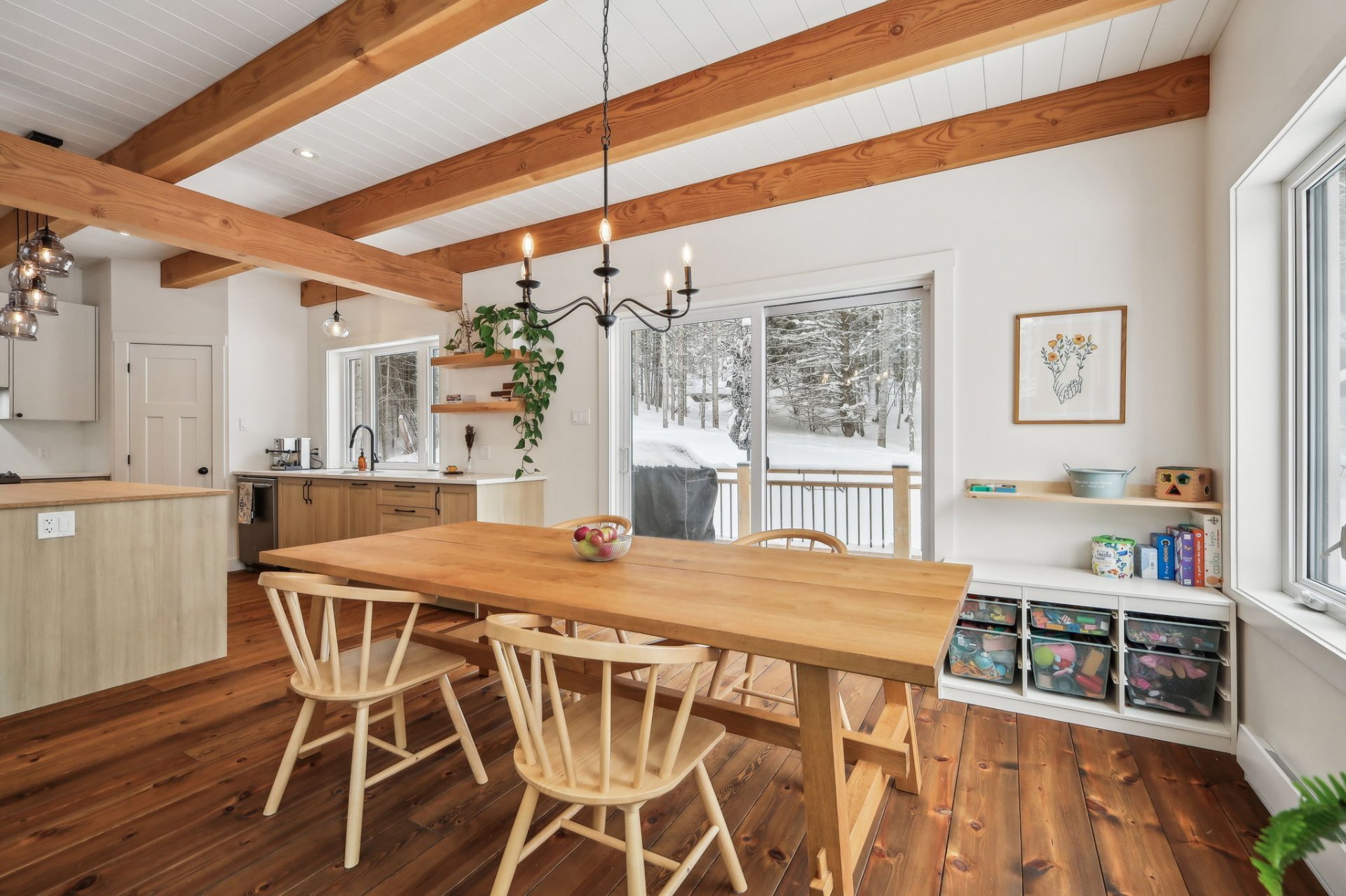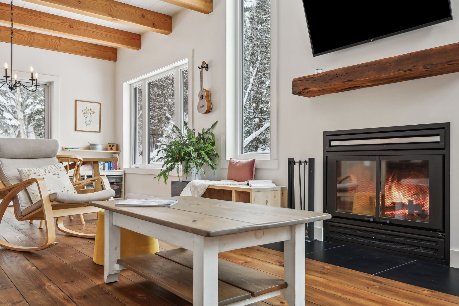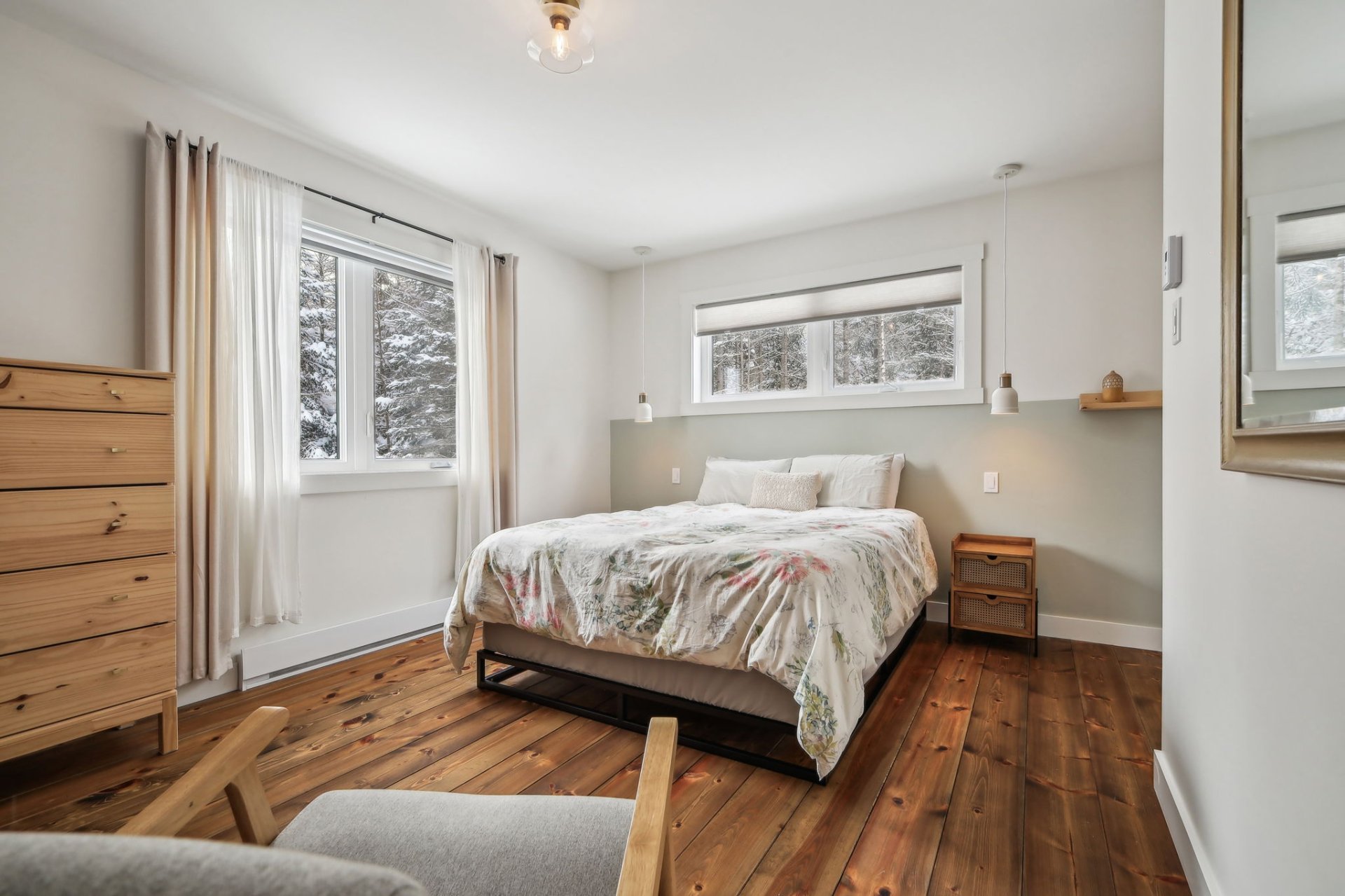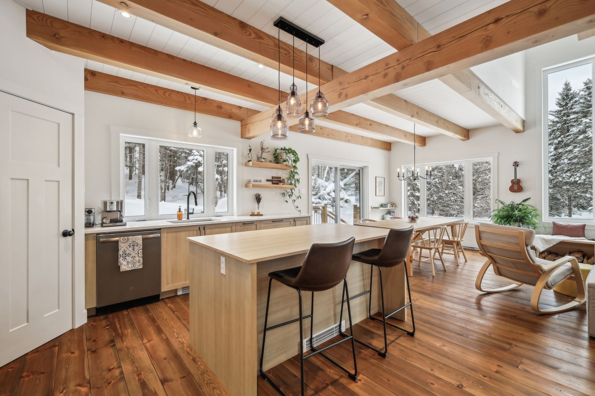 Disponible à partir du 1 Septembre 2025; Charmante et chaleureuse à souhait, cette maison de style scandinave construite en 2022 est idéale pour profiter d'un cadre de vie exceptionnel. Dès votre arrivée, vous serez séduit par les plafonds cathédrale, les poutres en bois apparentes et la généreuse fenestration qui inonde les espaces de lumière naturelle tout au long de la journée. En plus du foyer, la propriété offre un grand hall d'entrée, un garde-manger pratique, une chute à linge ainsi qu'une vaste salle familiale insonorisée, parfaite pour le télétravail ou les moments en famille.