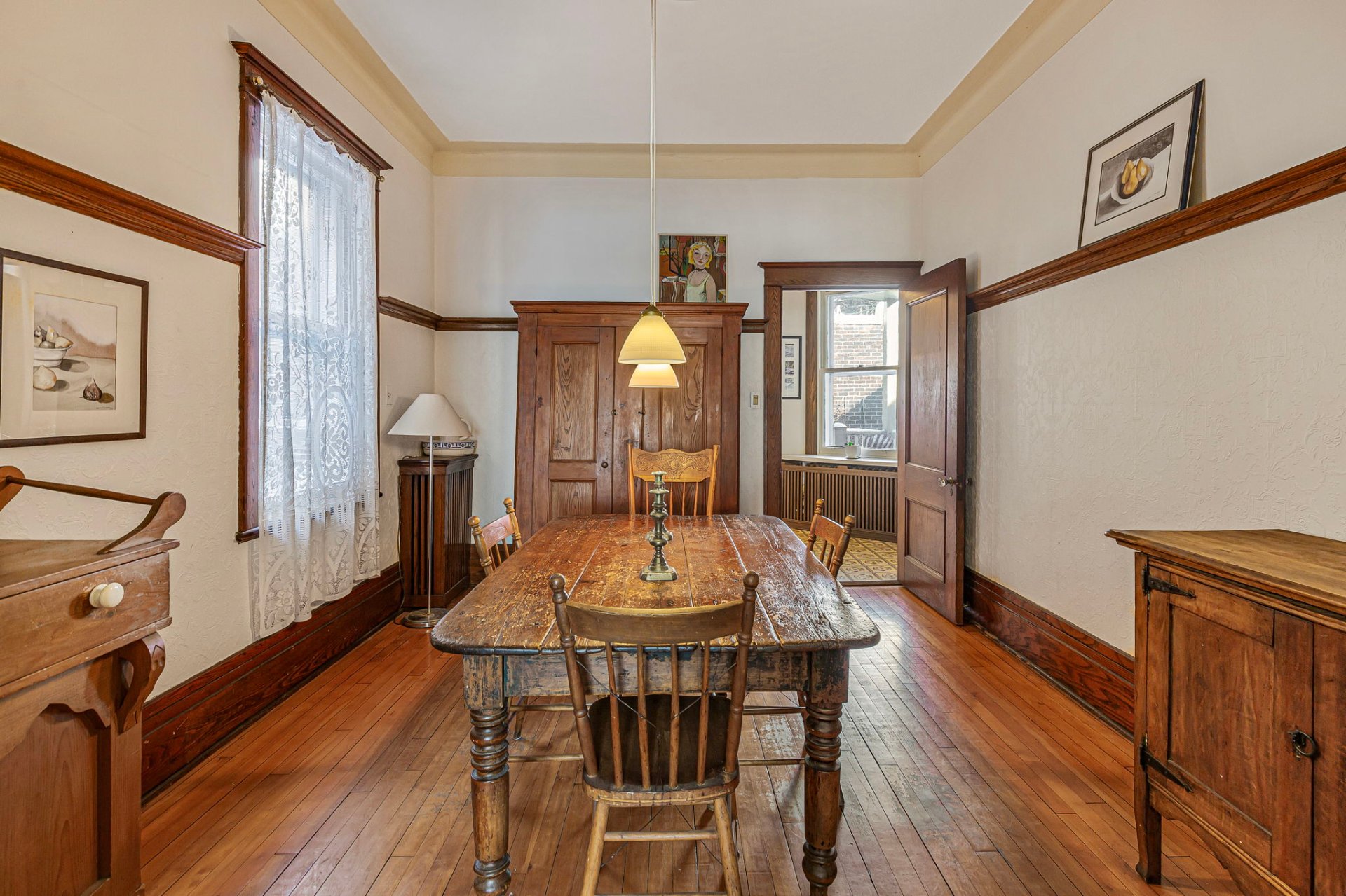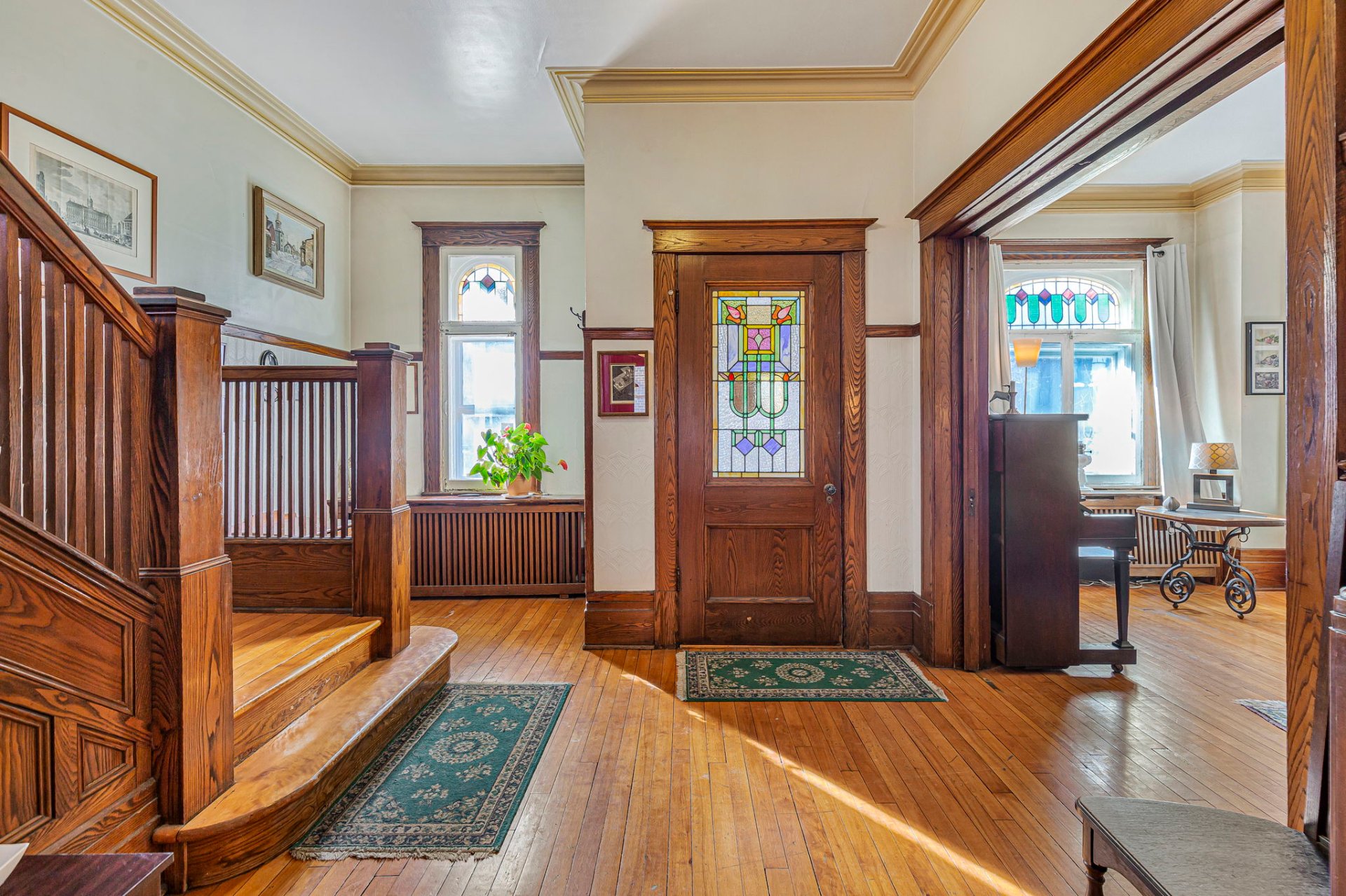 Maison centenaire spacieuse détachée au cachet remarquable, mettant en valeur de magnifiques moulures et portes d'origine, ainsi qu'un élégant escalier en bois massif. Plafonds généreux (RDC 9'9, étage 8'8), un jardin intime et un garage détaché complètent l'ensemble. Emplacement recherché à proximité du CUSM, du métro Villa-Maria, du village Monkland et du parc Girouard. Une propriété alliant charme intemporel et vie de quartier. Les visites débuteront à la visite libre de dim. le 1er fév.