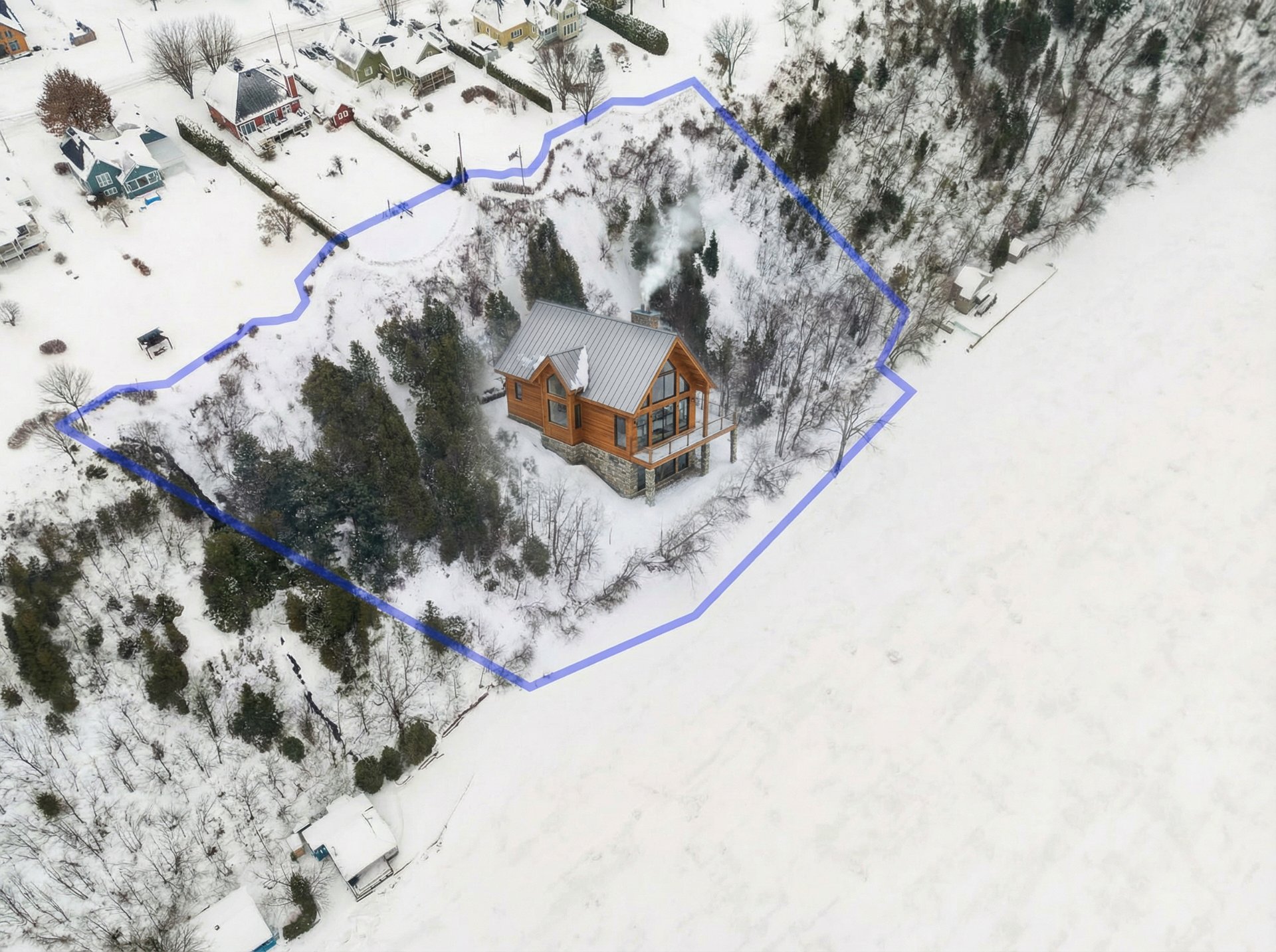 Terrain d'environ 65 770 pi² offrant une vue saisissante et dégagée sur le fleuve, véritable signature naturelle de ce site exceptionnel. Le fleuve s'impose comme l'élément central du paysage, offrant des perspectives ouvertes, un horizon profond et un décor en constante évolution au fil des saisons et des heures de la journée.