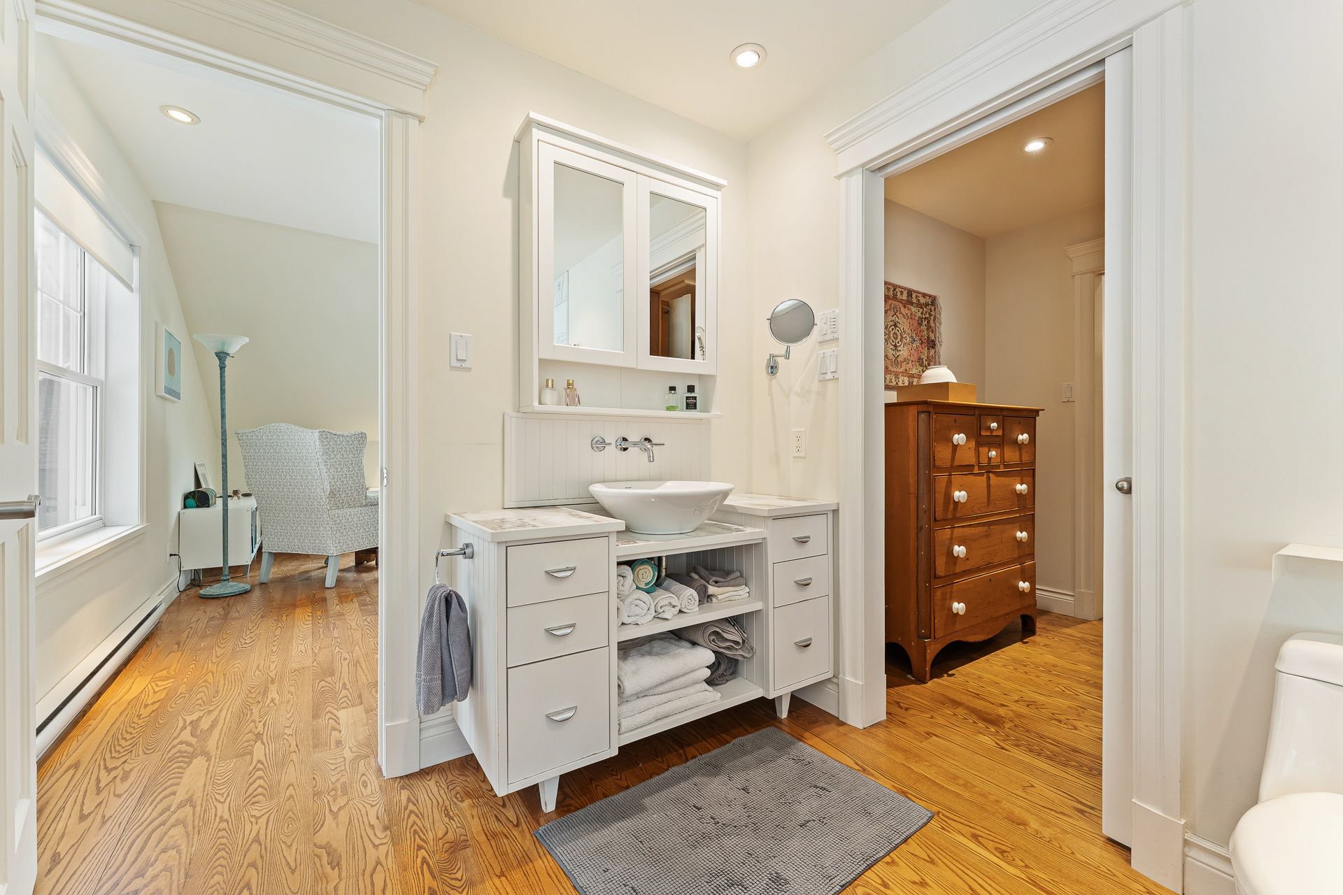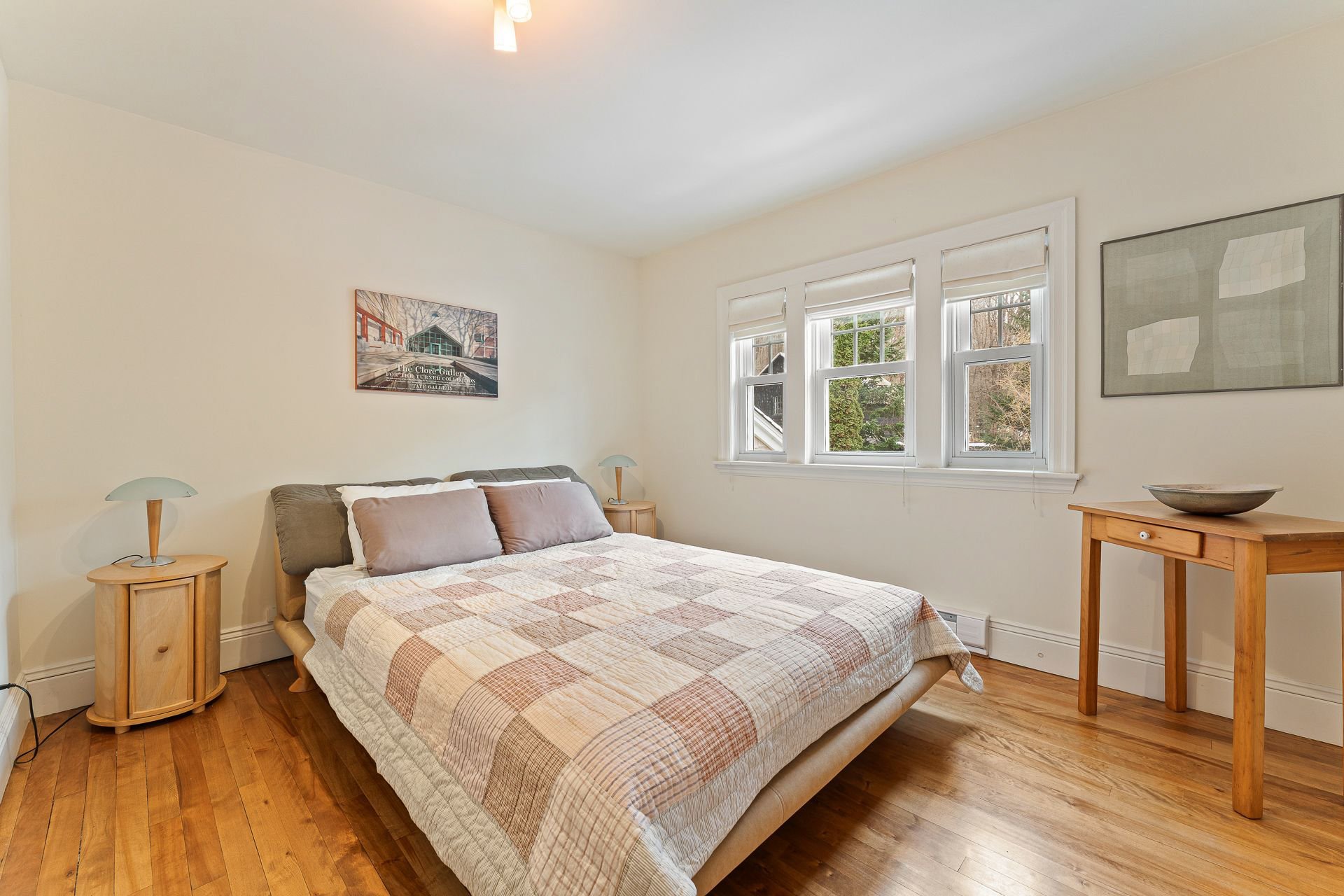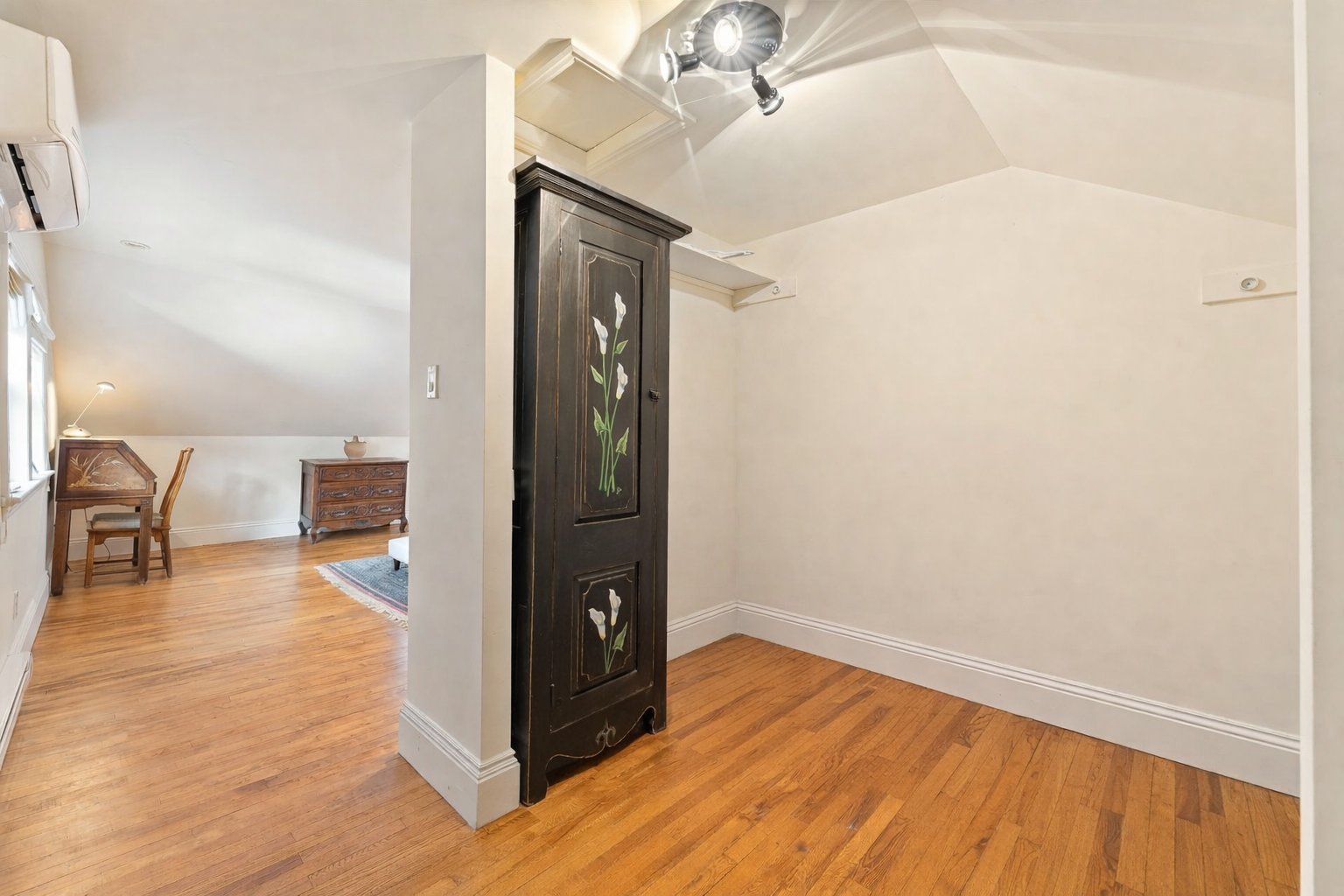 Le grand escalier du hall d'entrée mène également aux trois autres chambres à l'étage, toutes munies de plafonds mansardés, dont l'une dispose d'un walk-in. Une seconde salle de bain complète avec baignoire et douche y est également aménagée.