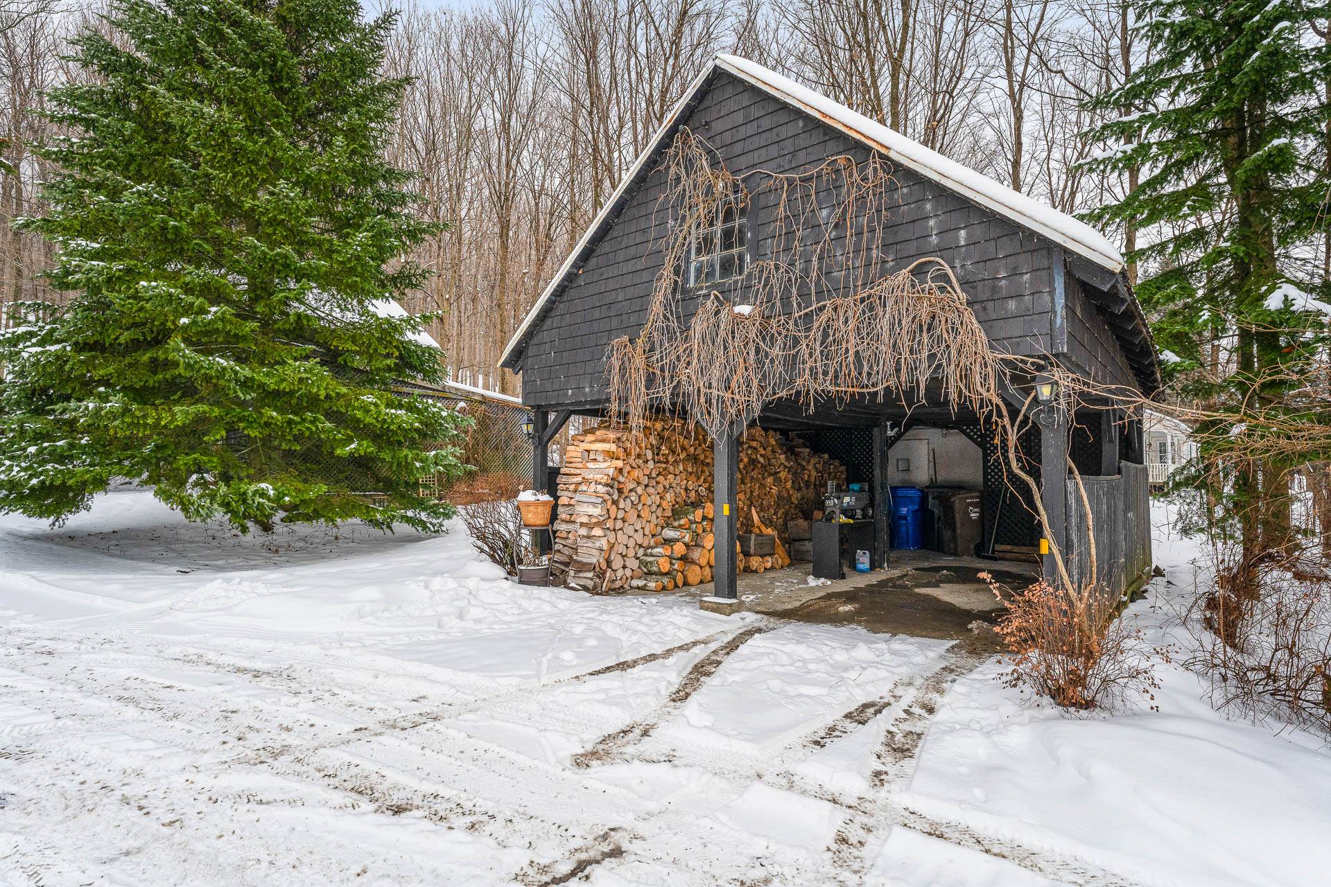 À l'extérieur, une grande allée non pavée permet de stationner plusieurs véhicules. Le terrain boisé, intime et sans voisin à l'avant ni à l'arrière, fait face à une grande pépinière et est idéalement situé entre deux vignobles et deux vergers. À seulement 10 minutes de Granby, 25 minutes de Bromont et à moins d'une heure de Montréal et Sherbrooke, cette propriété unique allie charme, espace et qualité de vie dans un cadre tout simplement exceptionnel.