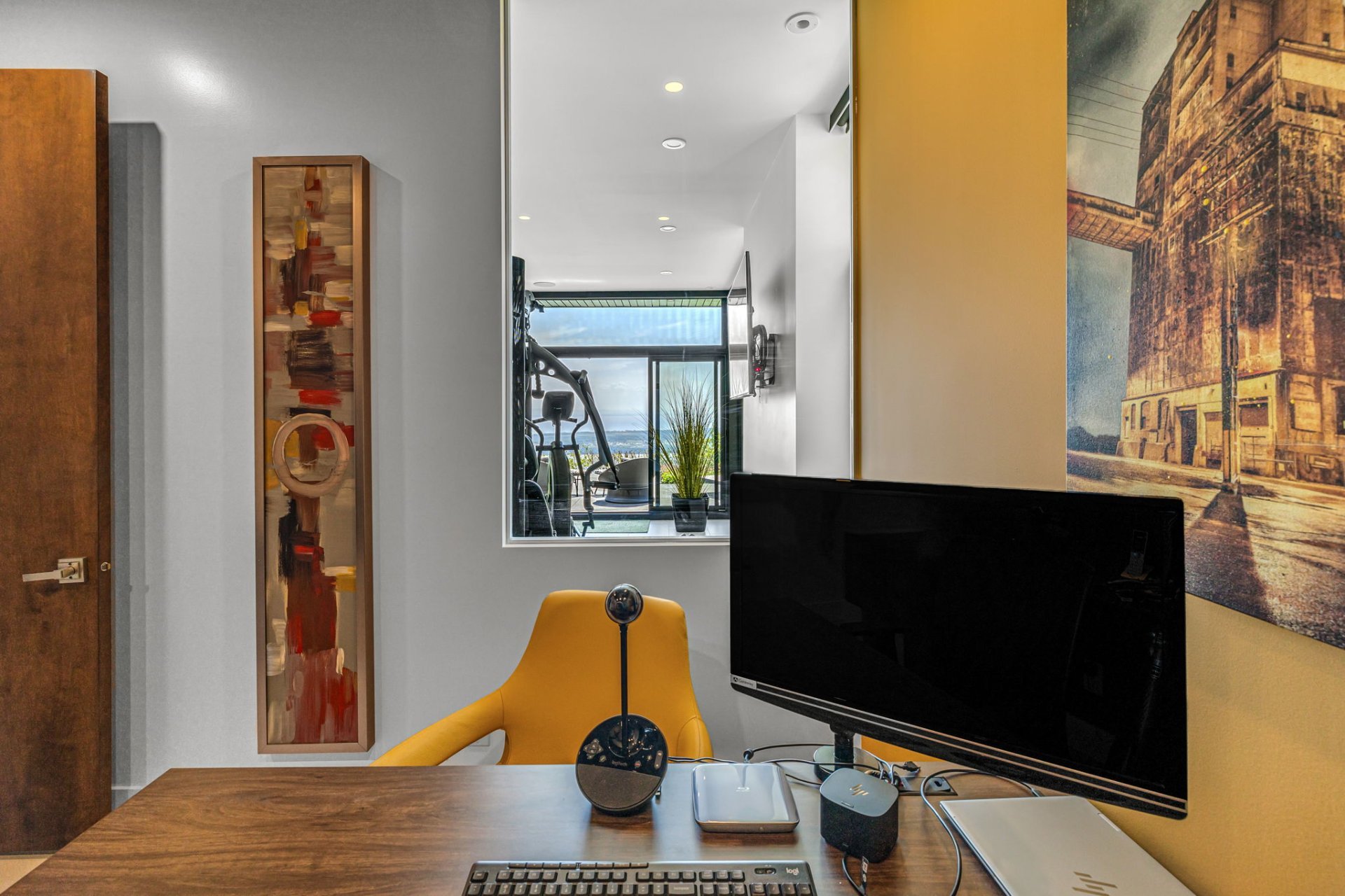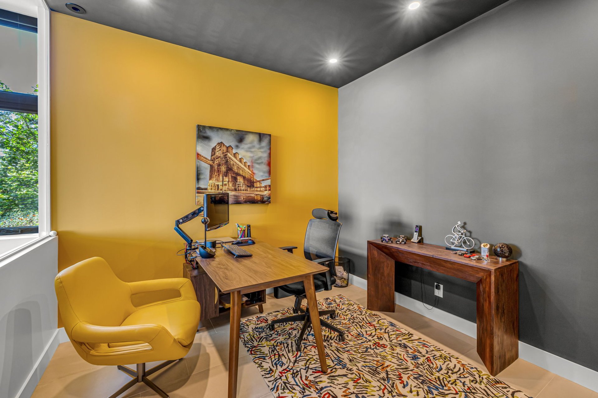 Le rez-de-chaussée majestueux comprend un salon détente, une salle d'exercice, un bureau fermé, une salle de lavage et un espace de rangement.