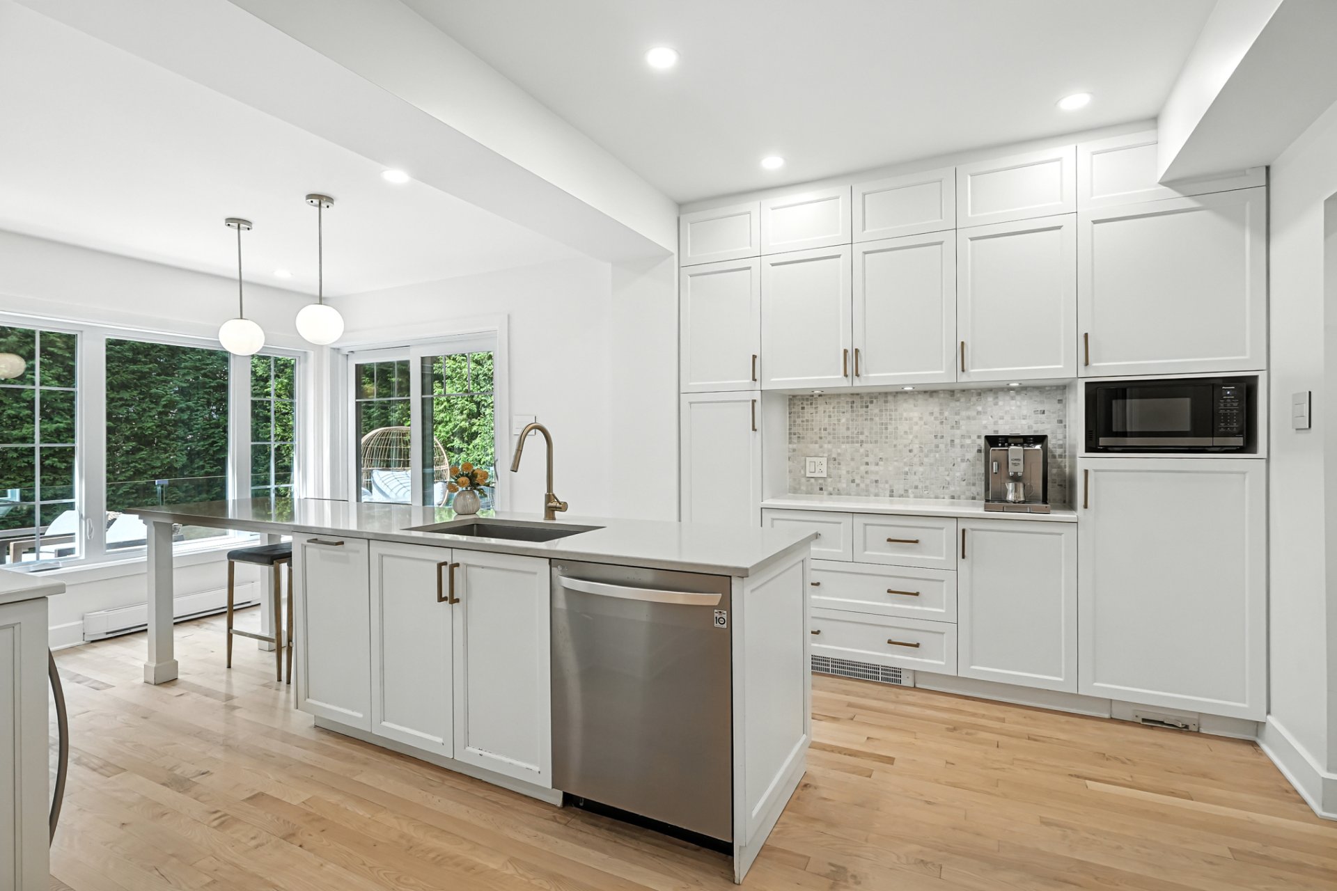 - cuisine qui a été agrandie et rénovée, avec comptoirs en Quartz, Îlot central et accès au jardin.