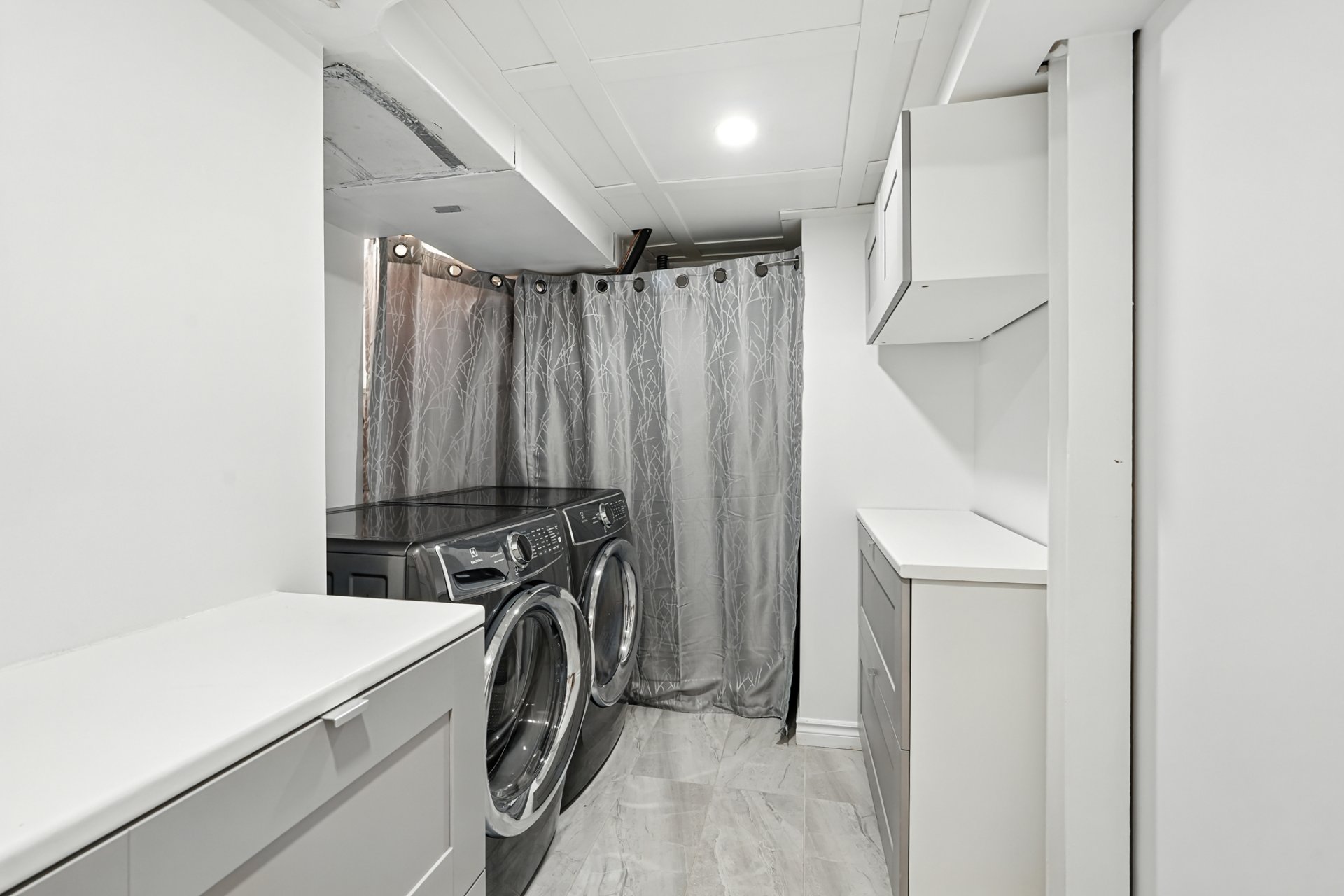 - Luminaires, réfrigérateur, cuisinière, lave-vaisselle, laveuse, sécheuse, petit cellier de la cuisine.