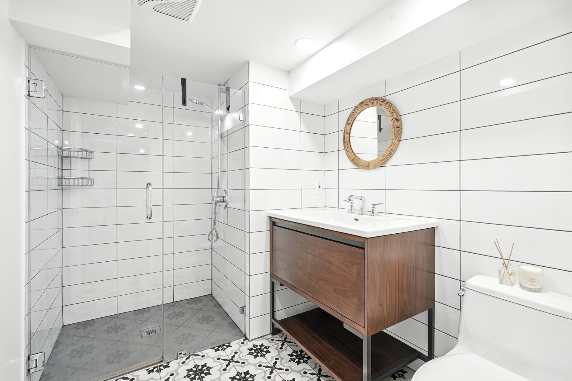 - immense sous-sol avec salle de jeux, un bureau séparé, salle de lavage, ainsi qu'une luxueuse salle de bain avec grande douche vitrée.